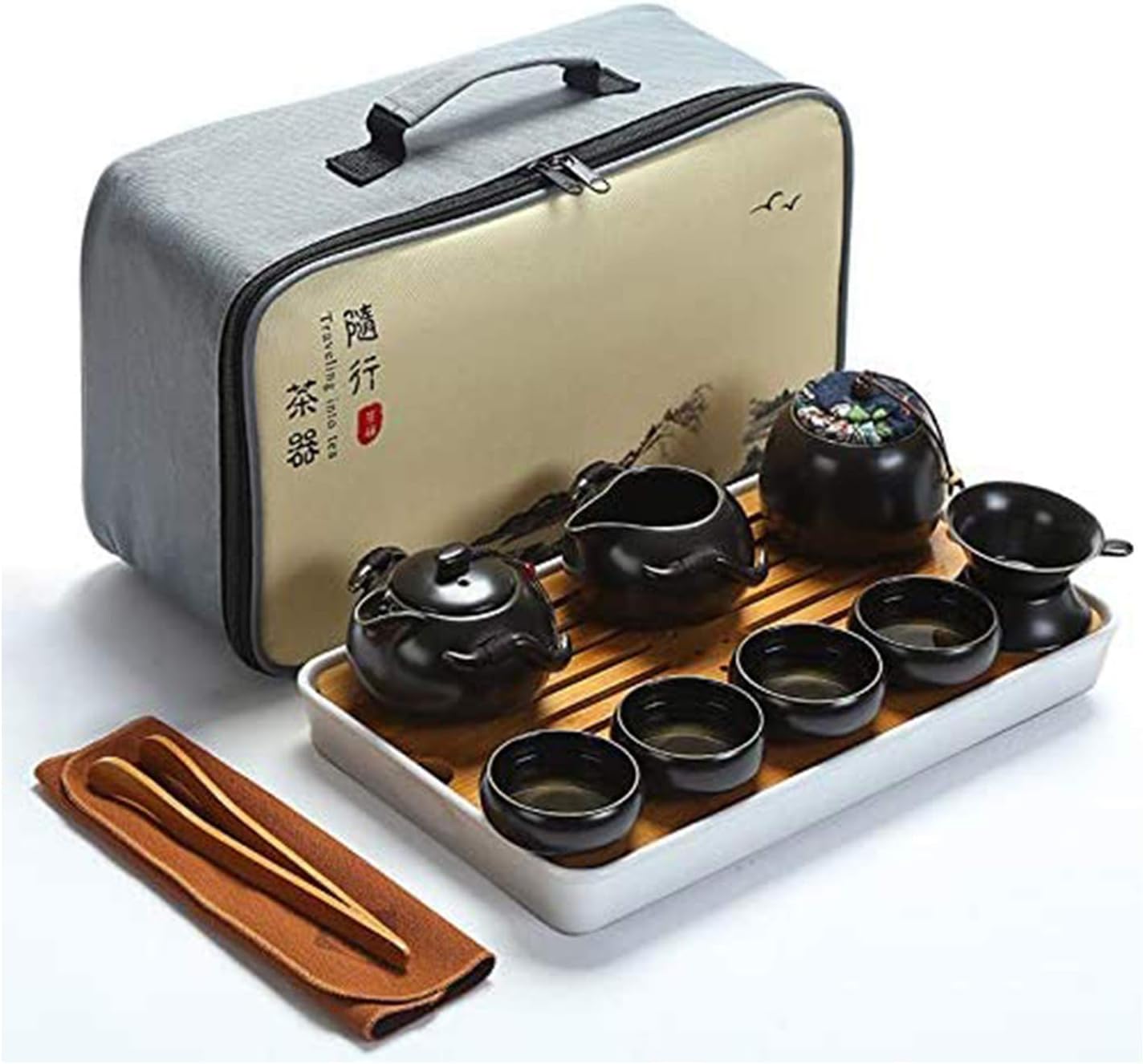Note: 1. The travel tea set is a normal size for traditional kung fu tea ceremony, not a toy. All Chinese kung fu tea sets are all made in this small size. This size is different from the coffee cup to fill hunger, Chinese kung fu tea cultural is for tasting, relaxing and relieving stress. 2. The kung fu tea set is meant for white tea, oolong tea, herbal tea, scented tea, green tea, pu-erh tea, black tea, etc., but the water must be allowed to cool to around 85℃ (185℉) before