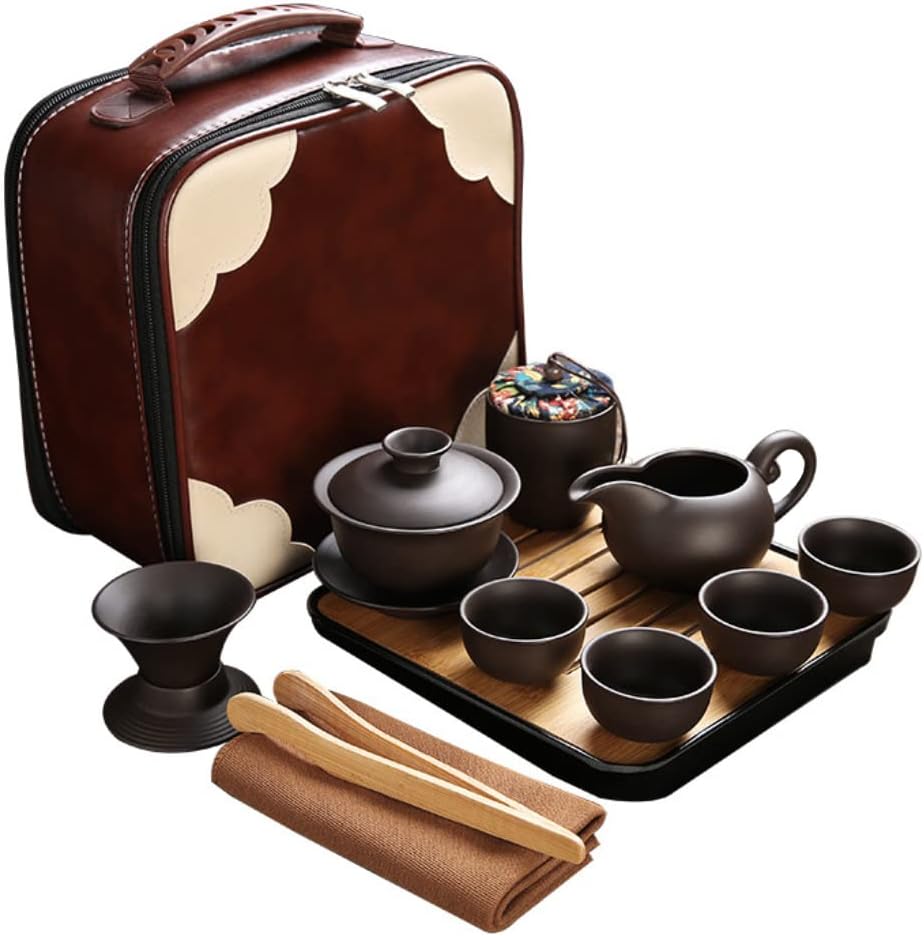 1.Portable Bowl tea pot set: complete of porcelain tea set with a portable travel leather bag be carry easily while outdoor or travel. Travel tea pot sets great for drinking tea alone or sharing with a friend.