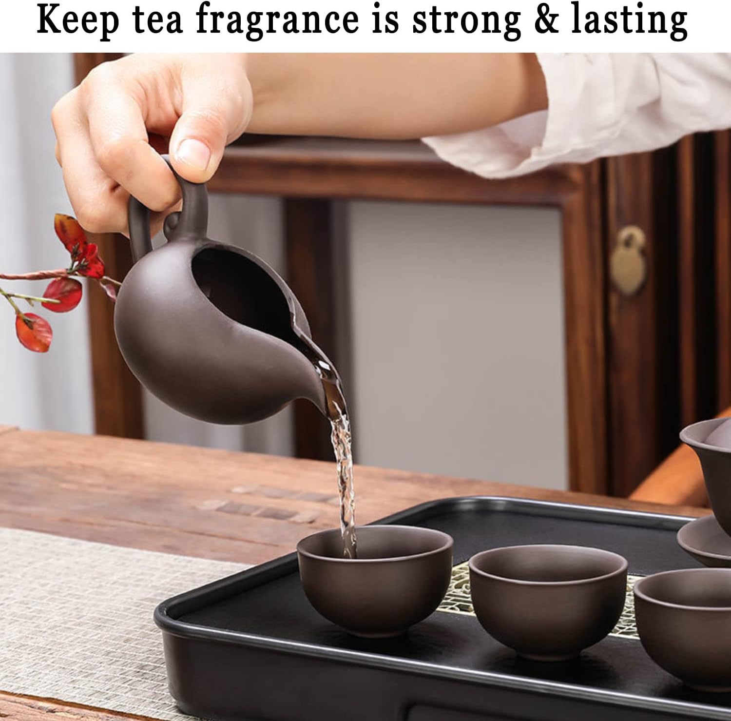 3.The tea fragrance is strong and lasting: Long-term use of purple clay teapot, even if no tea in zisha tea set, only boiled water is poured, the tea fragrance is still attractive.