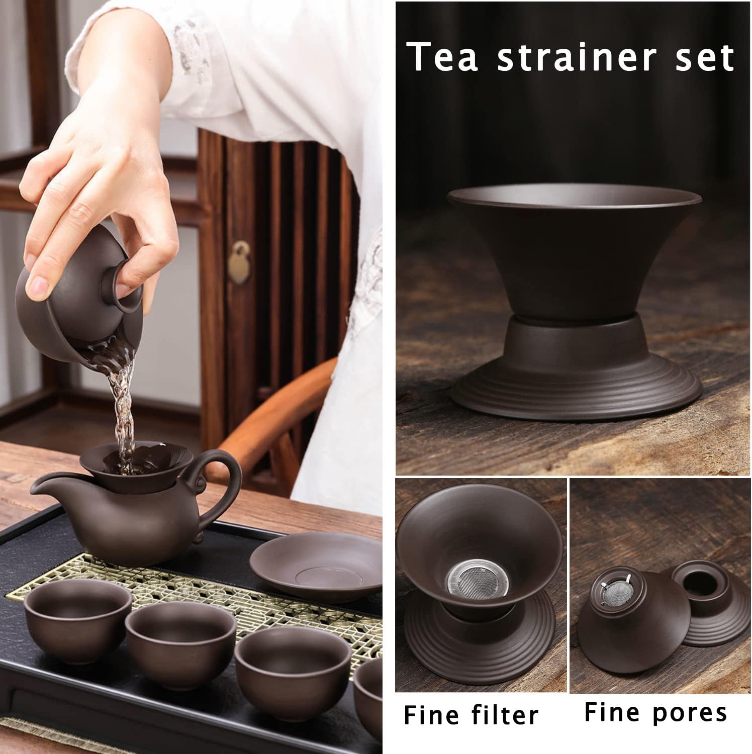 1*Purple Clay Tea strainer sets: 8*7cm