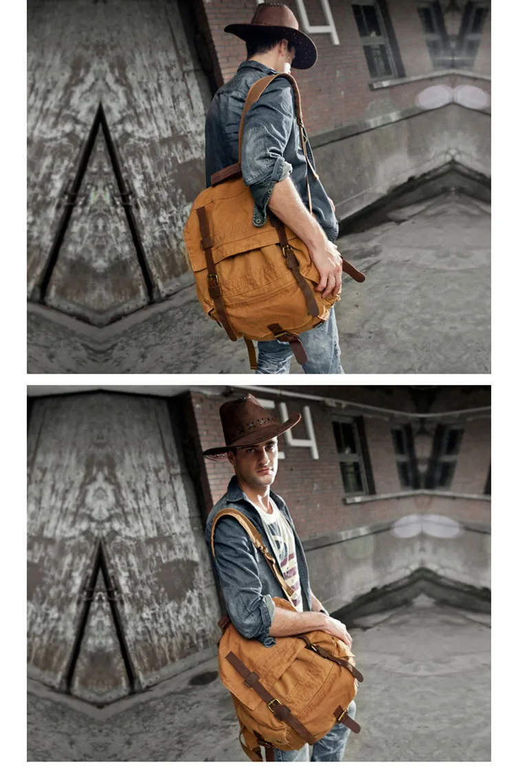 Trendy Big Rucksack Vintage Leather Canvas Travel Hiking Camping Backpacks Men Women School bag Backpack