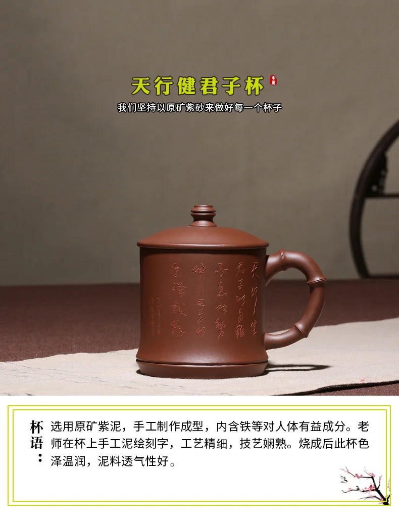 "True art" Yixing Zisha Cup pure handmade tea cup tea set engraving custom Tianxingjian gentleman cup