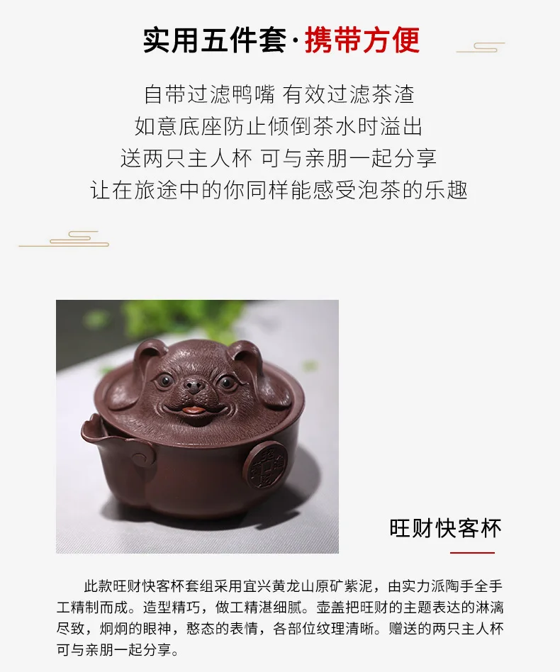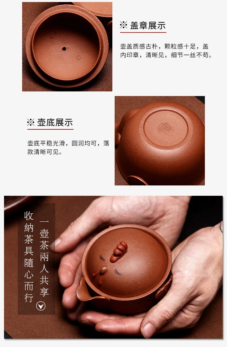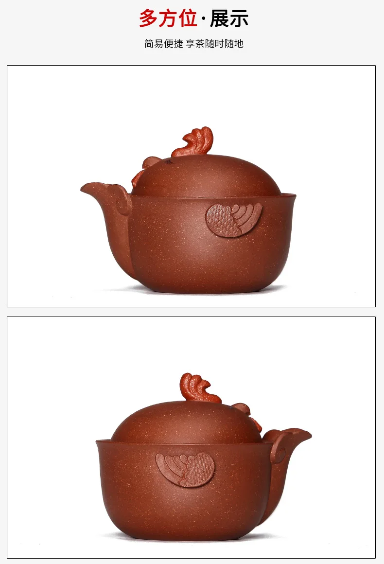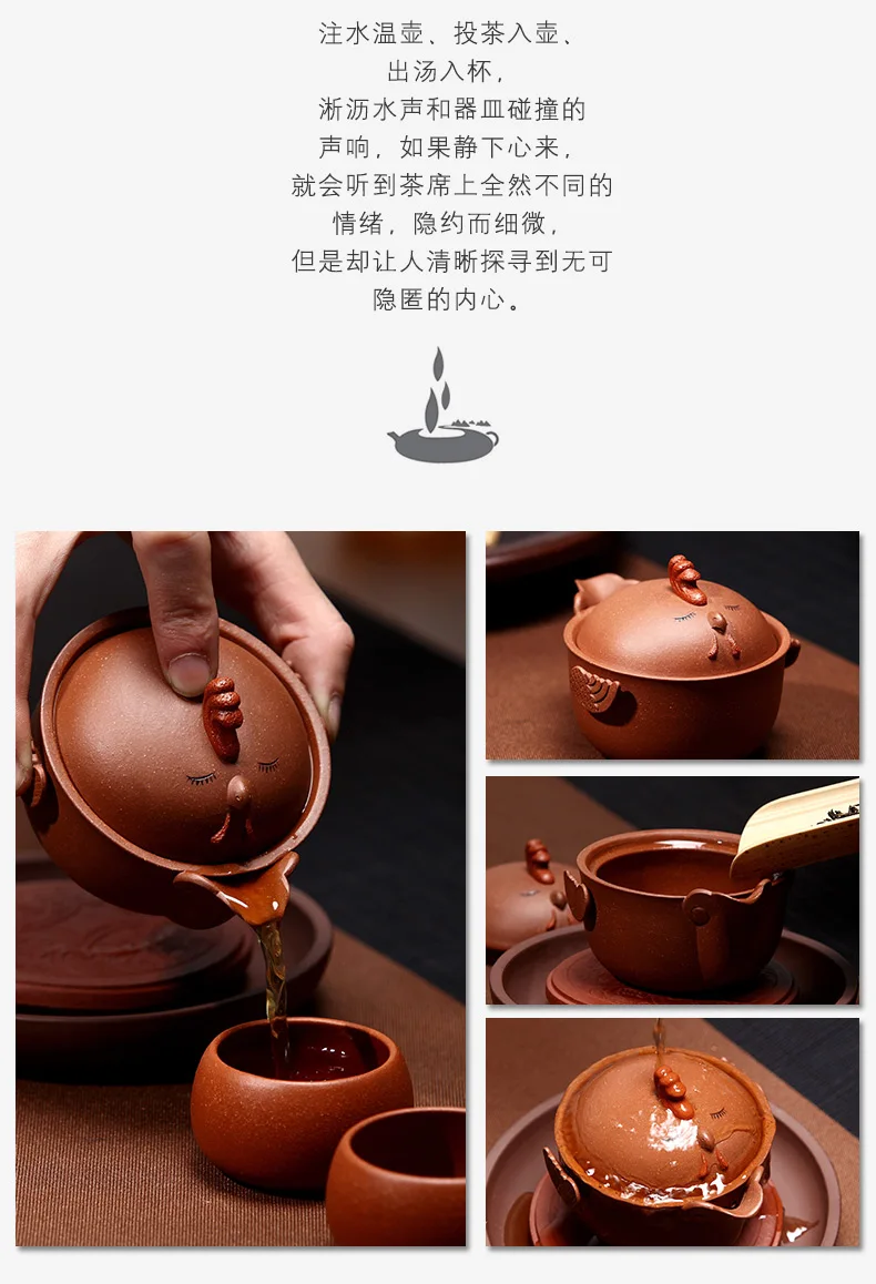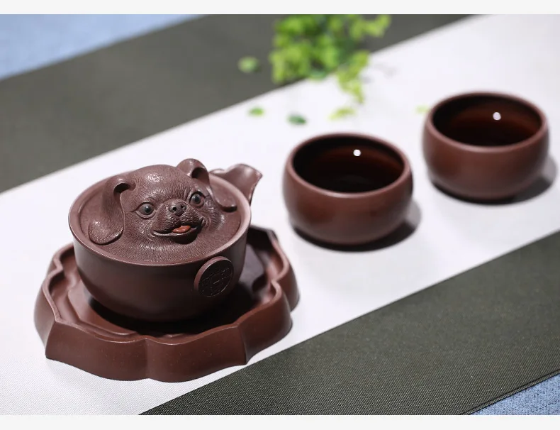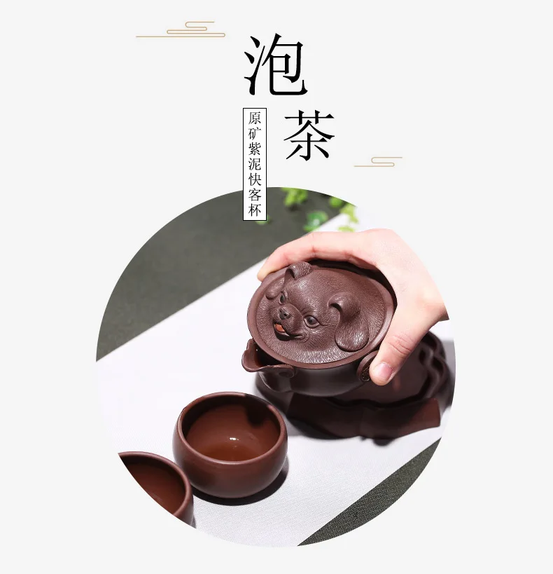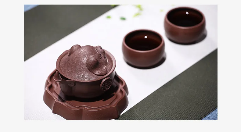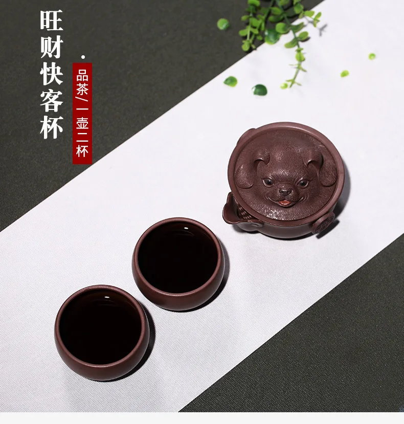 True yixing purple sand crack cup office prosperous wealth dog tureen suit portable kung fu travel tea set the teapot