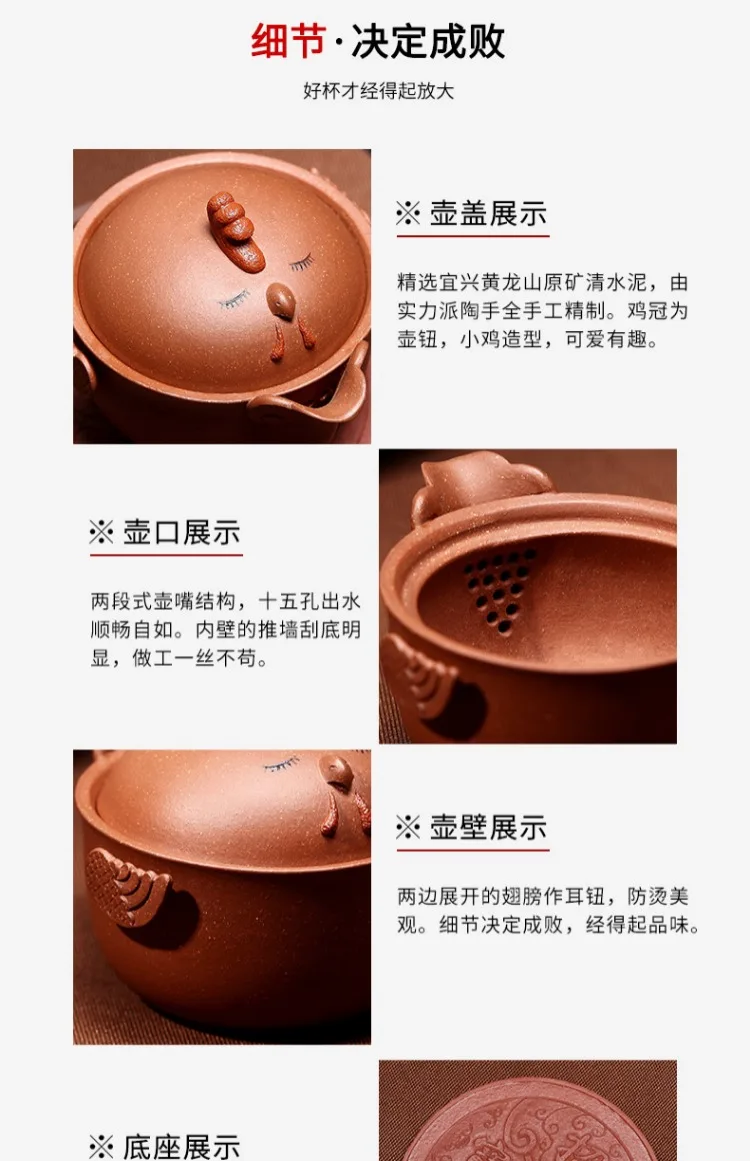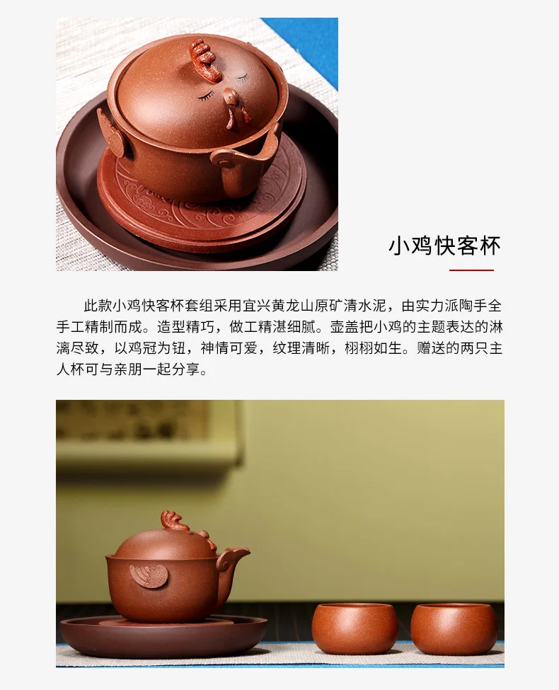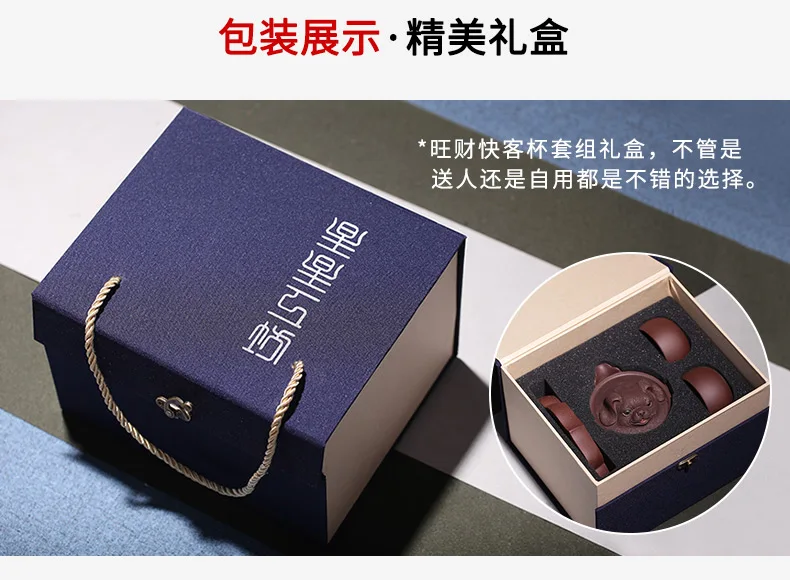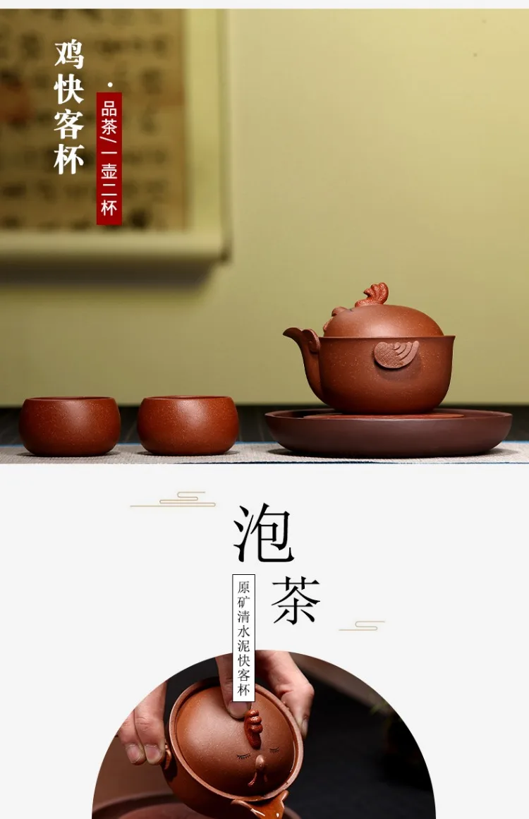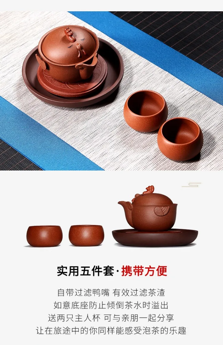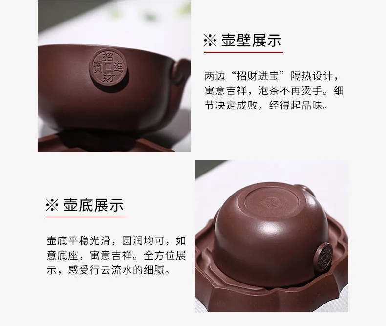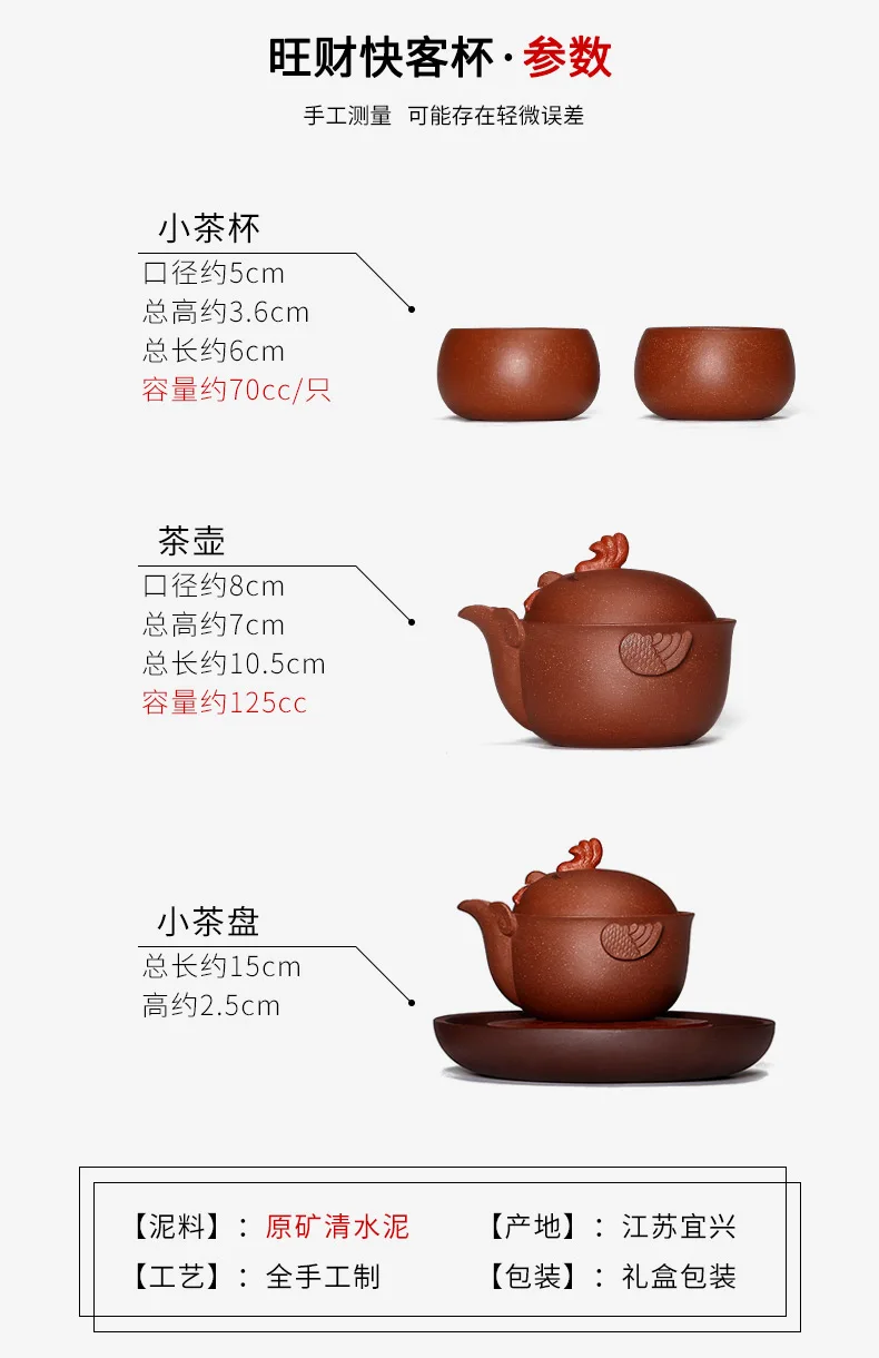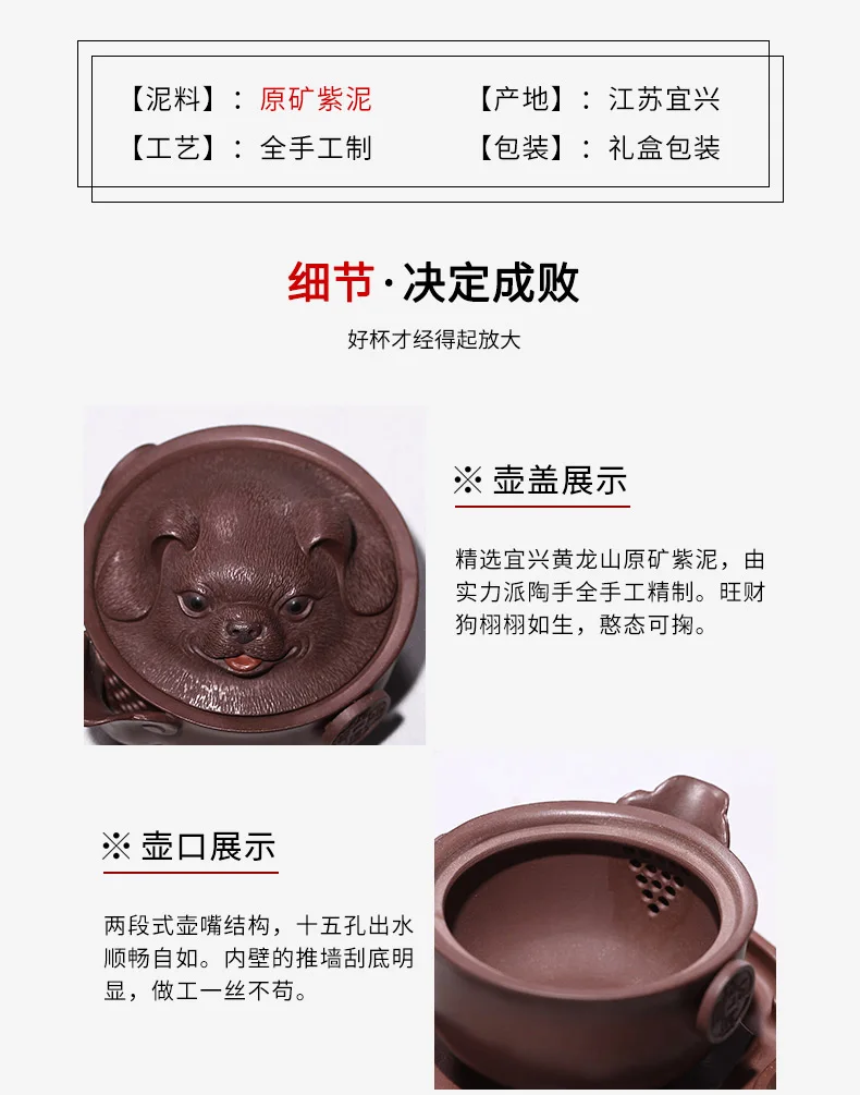True yixing purple sand crack cup office prosperous wealth dog tureen suit portable kung fu travel tea set the teapot