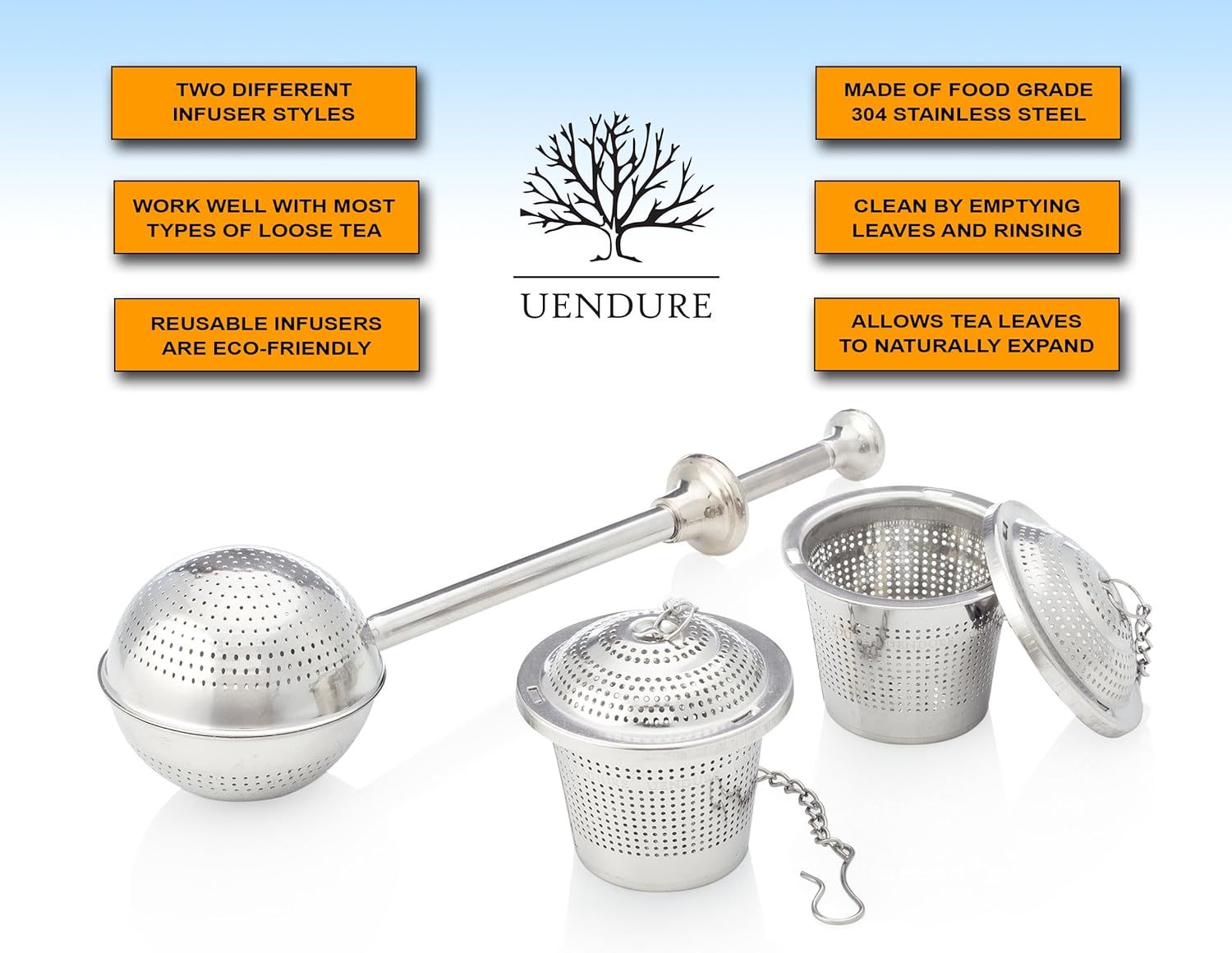 The UEndure Tea Infusers are designed with a modern appeal and created specifically for the tea connoisseur. Our infusers are extremely well-crafted and a must have for any loose leaf tea drinker.