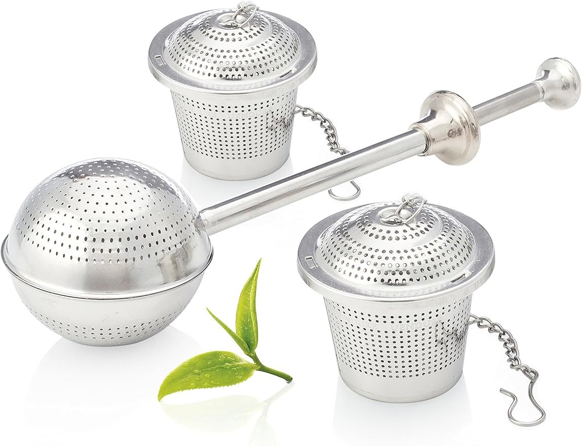 Product Features: Two Different Infuser Styles – One Long Handle Tea Ball & Two Tea Baskets Simple To Use - Fill the stainless steel infusers with your favorite loose tea, close the lids and place into hot water. Built To Last – Our 304 stainless steel is durable and resistant to rust. Easy To Clean – Simply empty the leaves and rinse with water