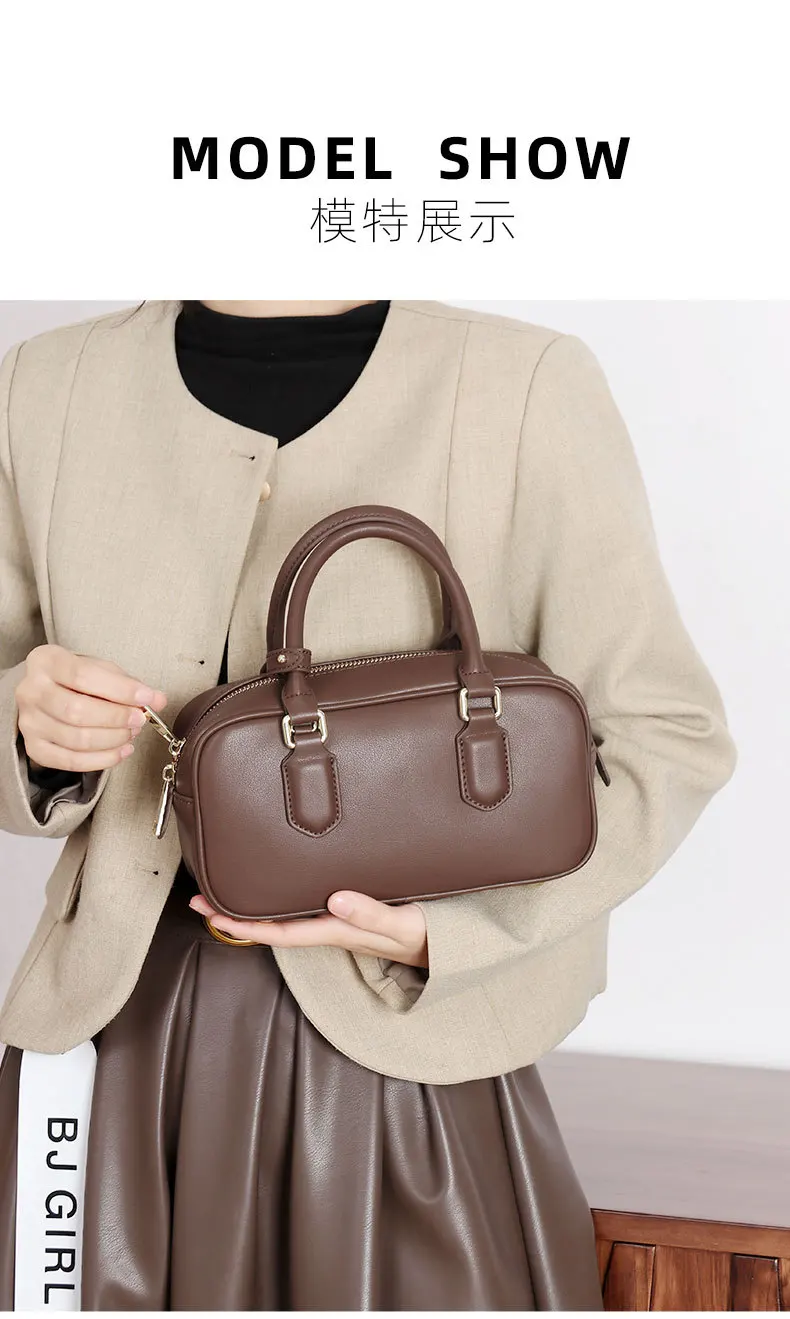 Underarm bag for women 2023 new single shoulder bag versatile large capacity commuting handbag genuine leather bowling bag