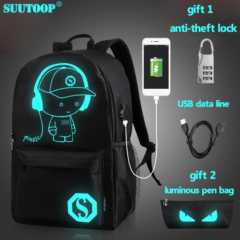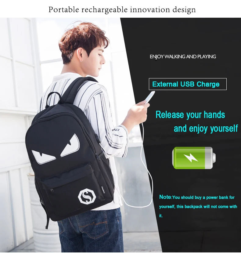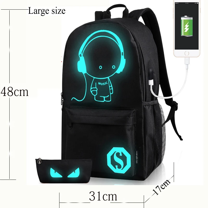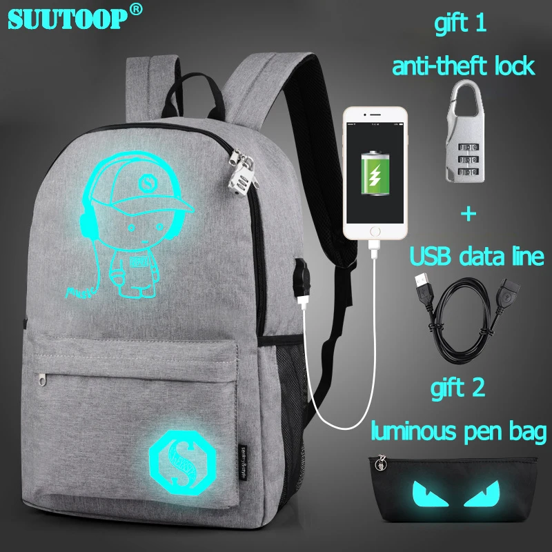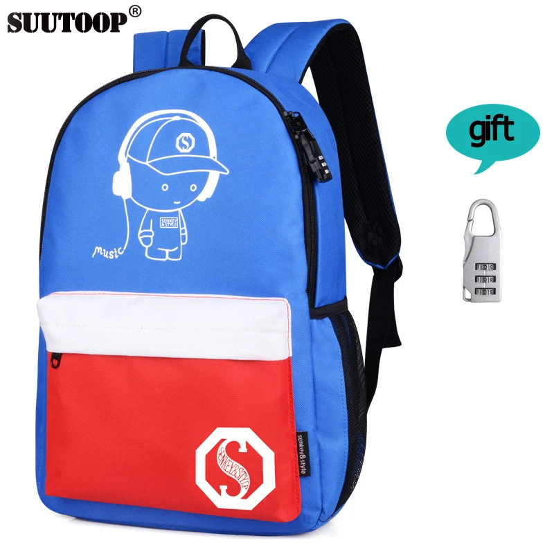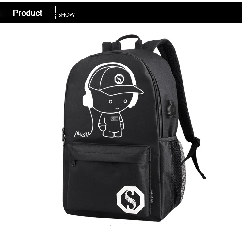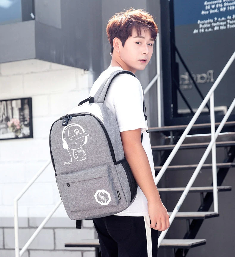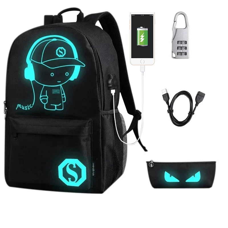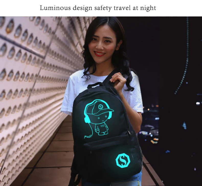 USB Charge Music Luminous Schoolbag Teenagers Backpack To School Bag Book Bag