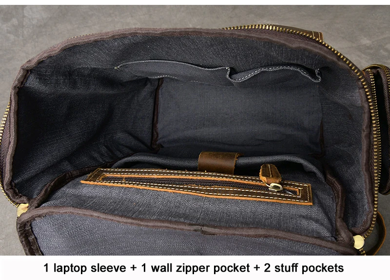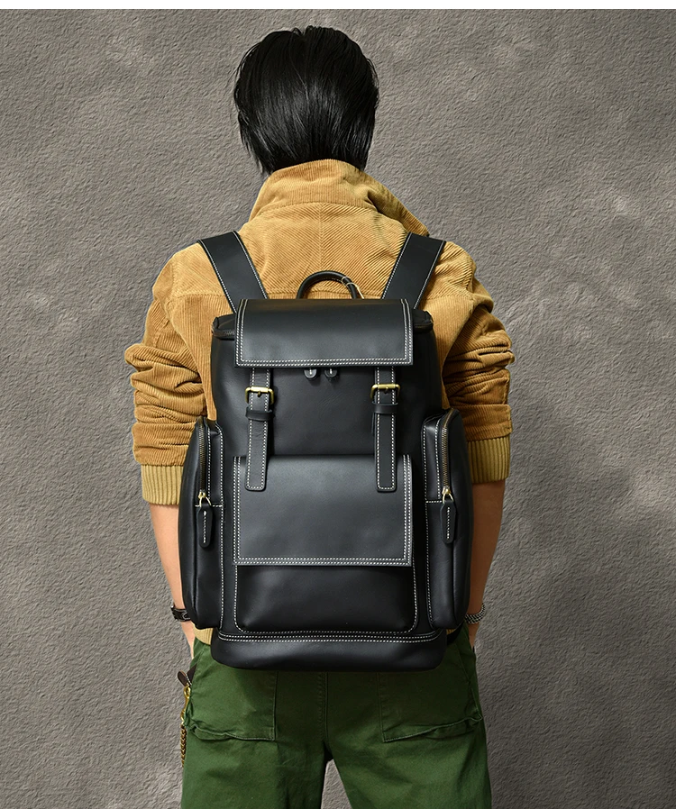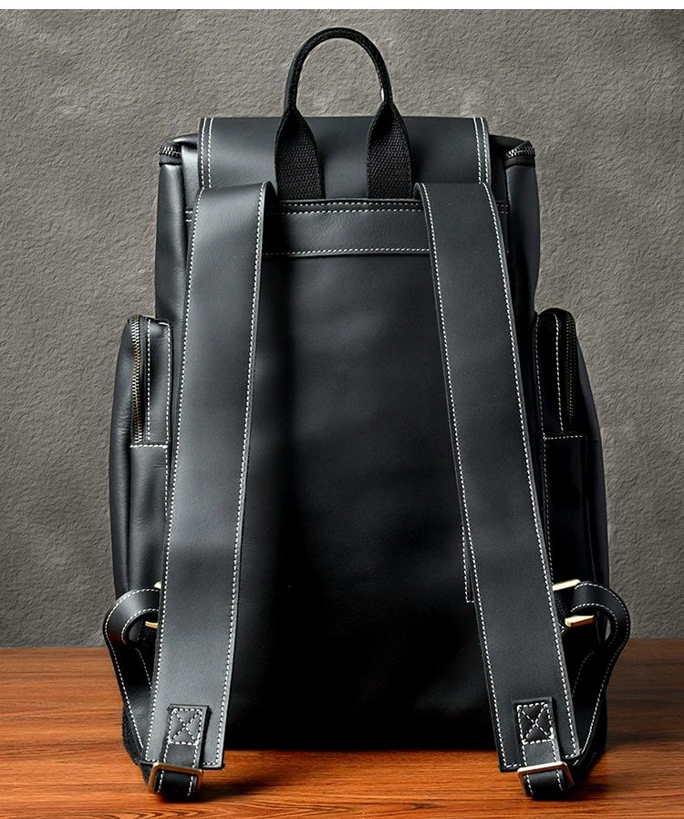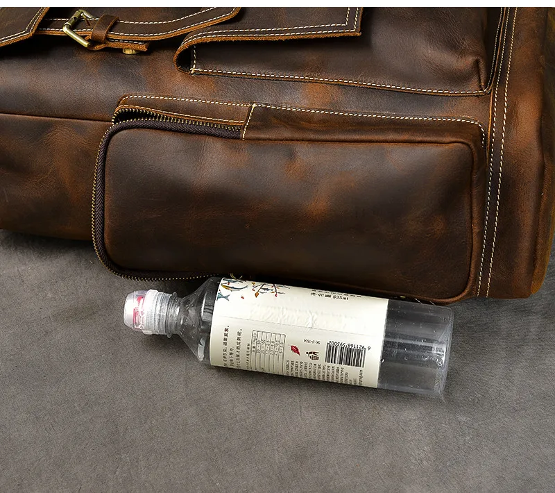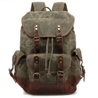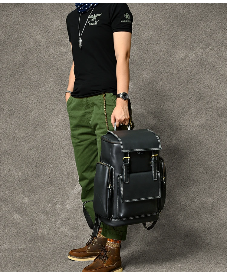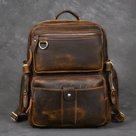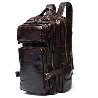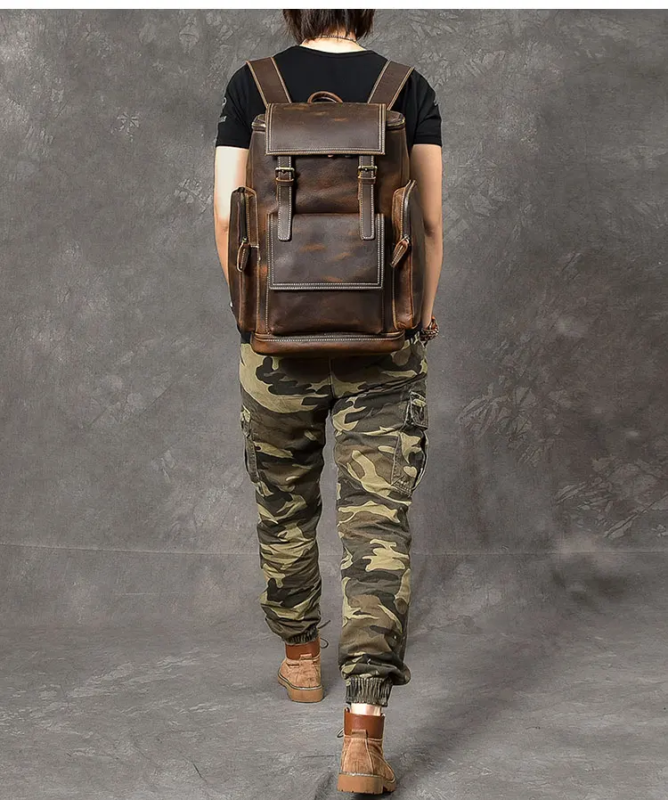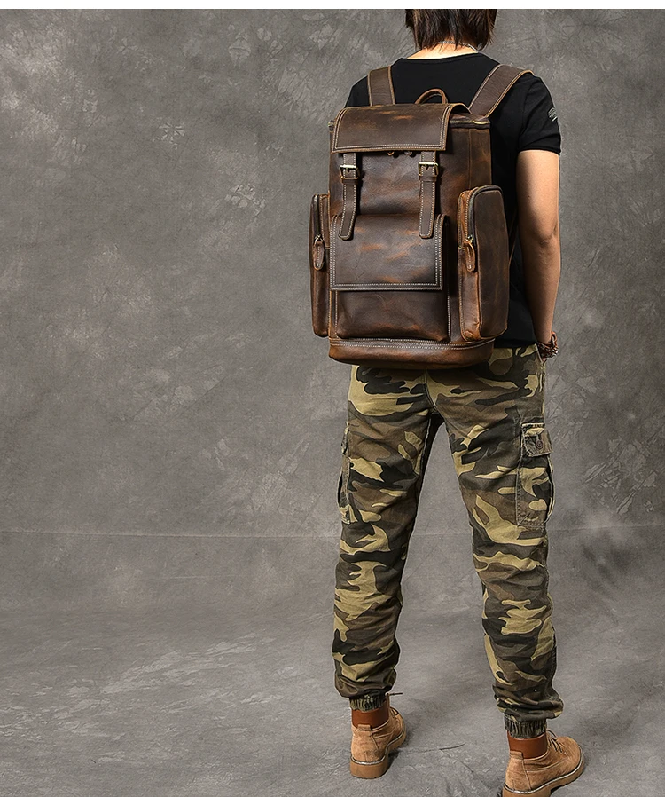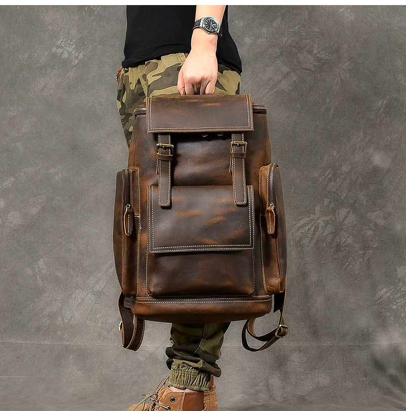 Vintage Crazy Horse Genuine Leather Men's Backpack Climbing Rucksack Large Hiking Bagpack