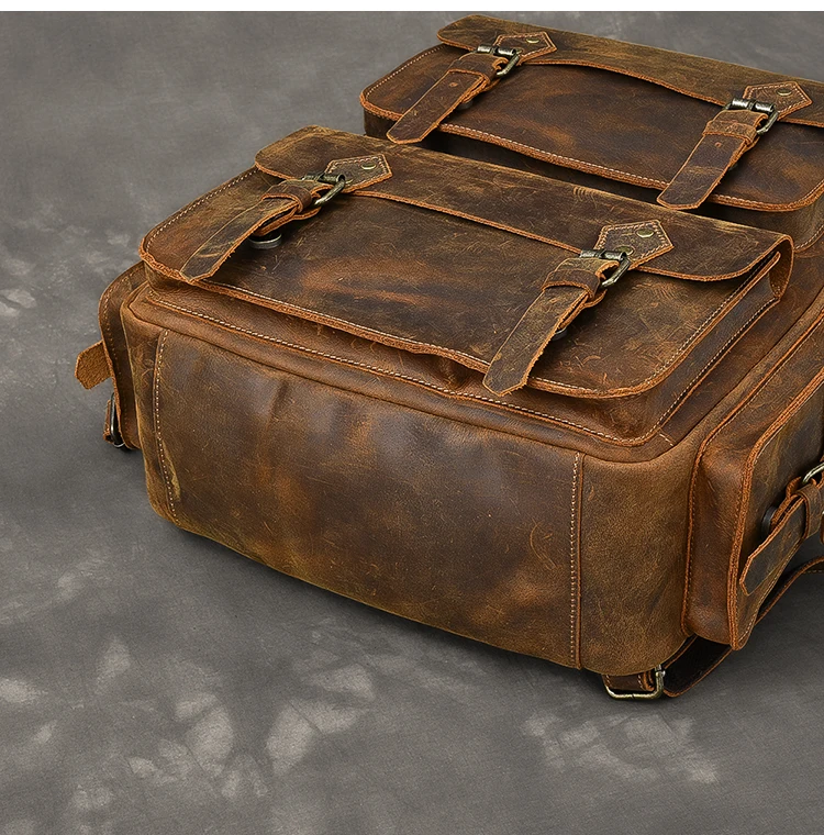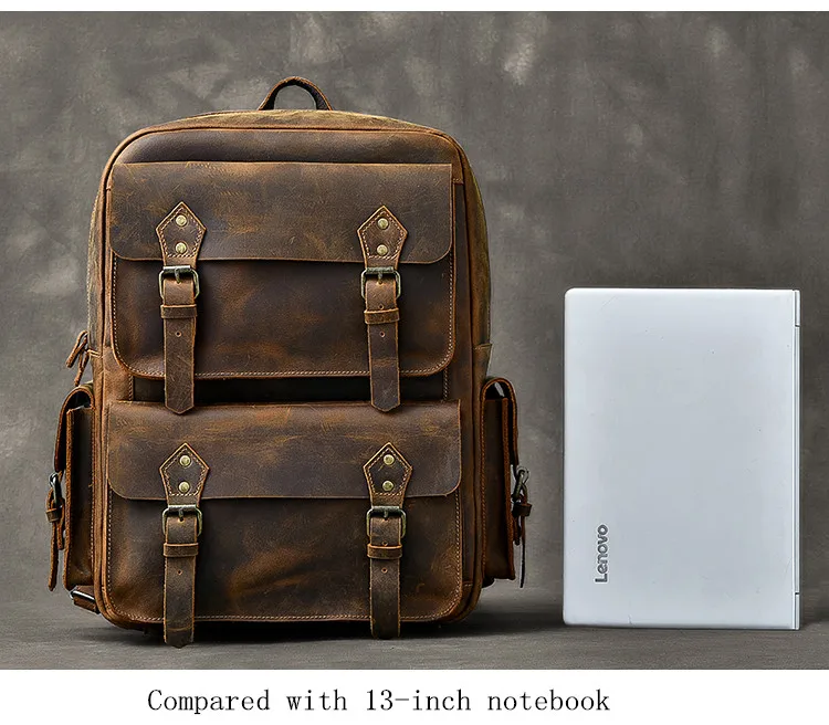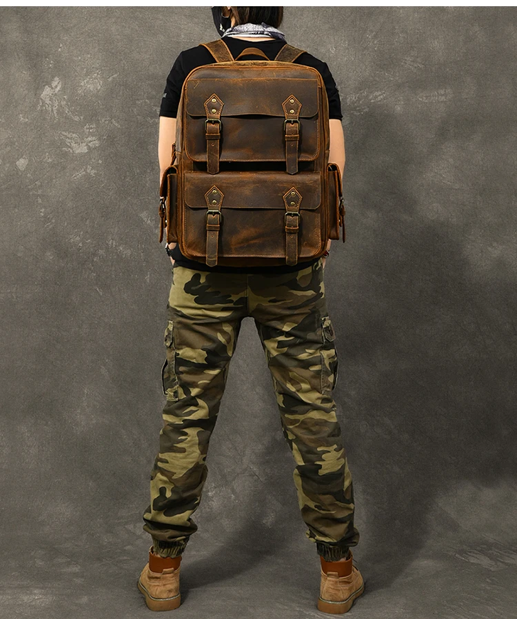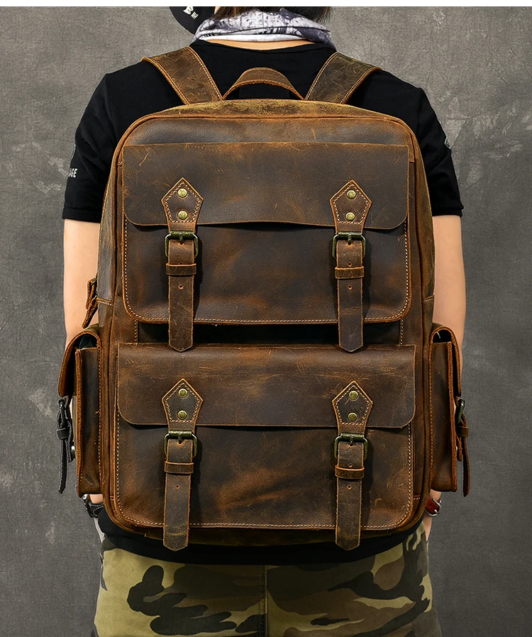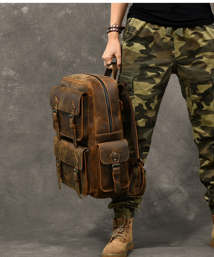 Vintage Crazy Horse Genuine Leather Men's BackpackHiking Backpack Travel Rucksack Large M815
