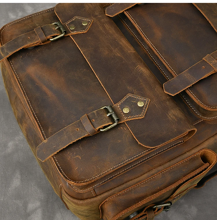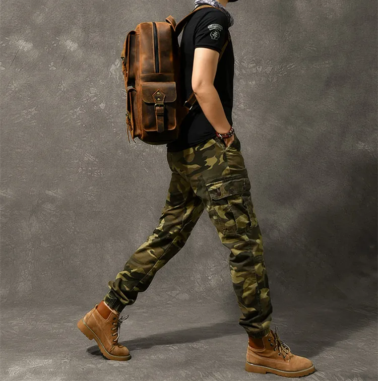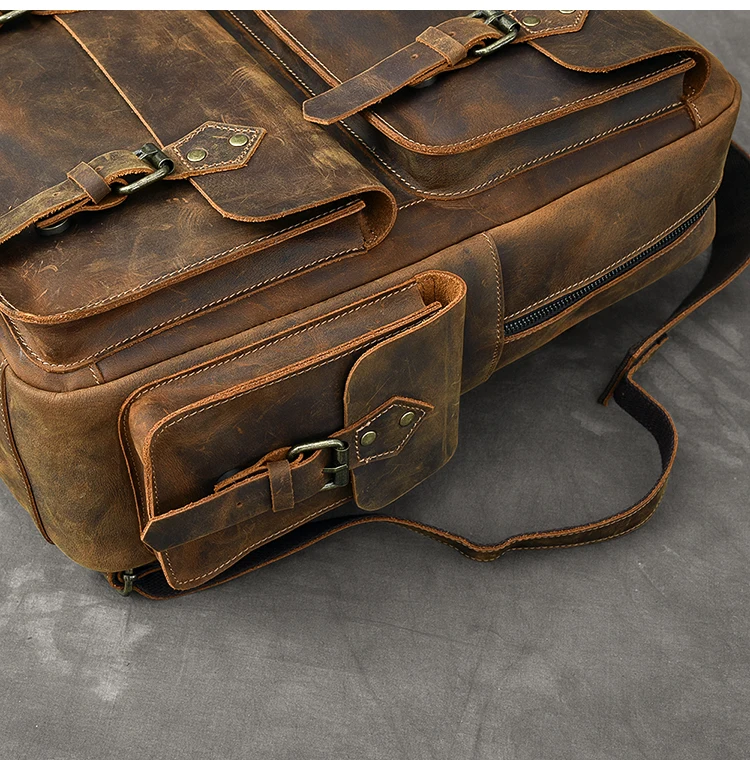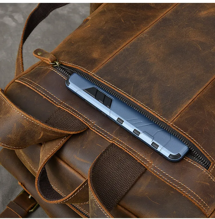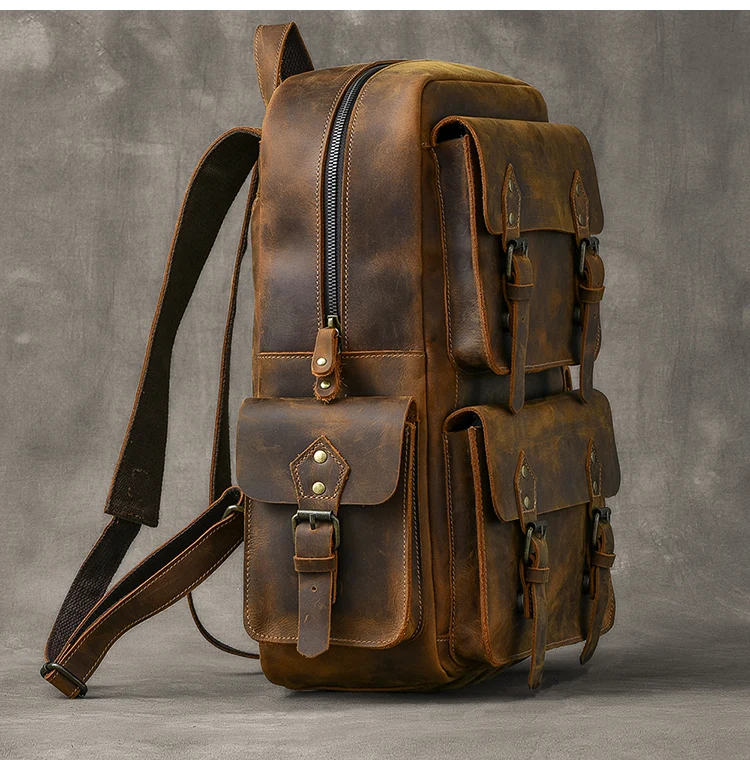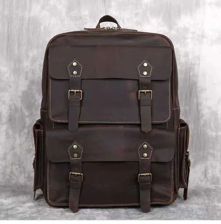 Vintage Crazy Horse Genuine Leather Men's BackpackHiking Backpack Travel Rucksack Large M815