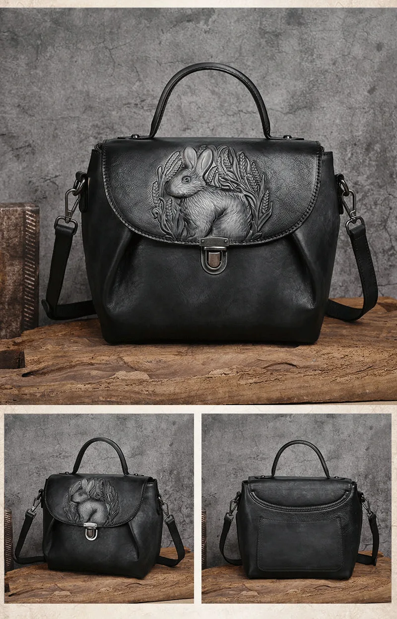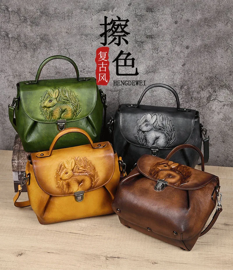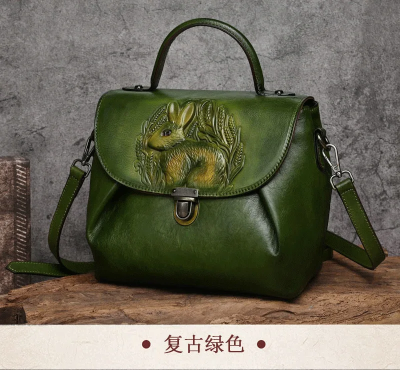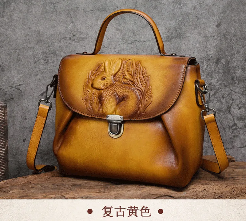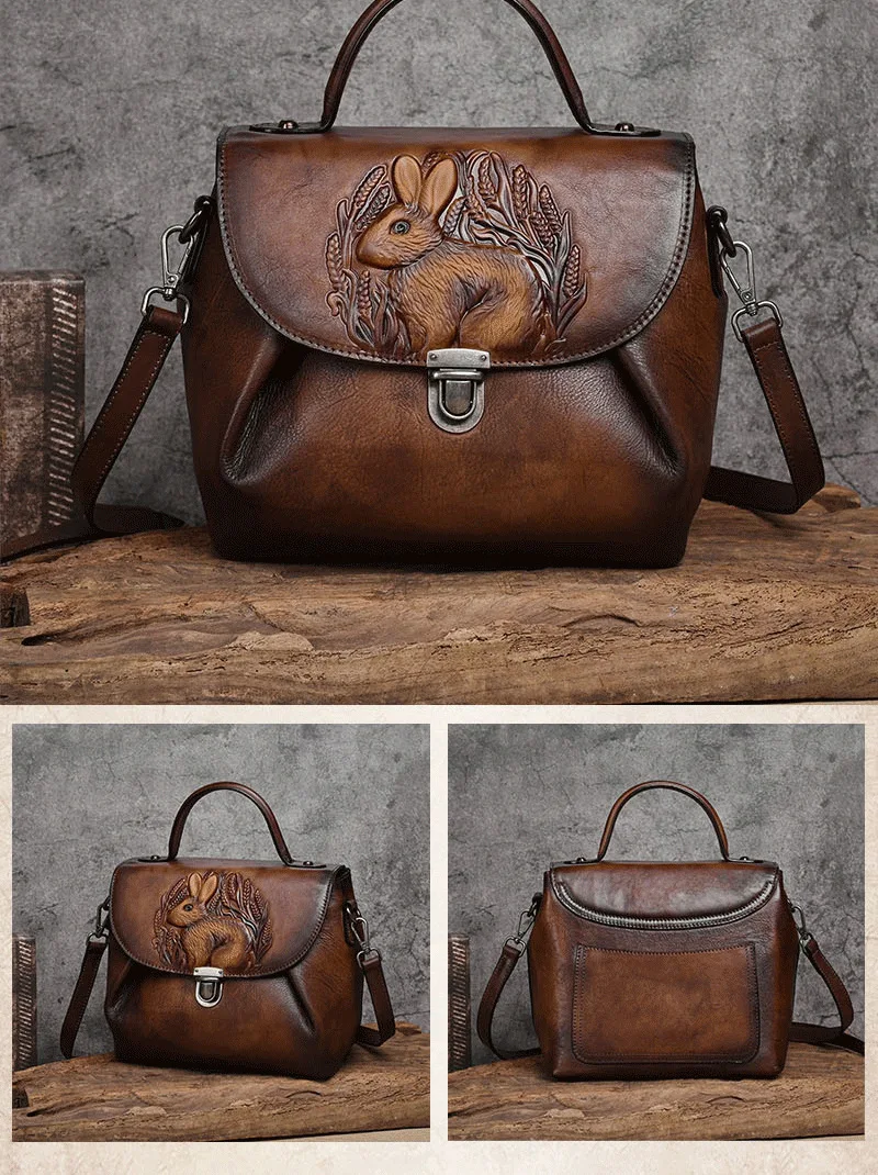 Vintage Handbags For Women Genuine Leather Shoulder Bags 2024 Woman Bag Rabbit Embossed Handmade Luxury Designer Handbag