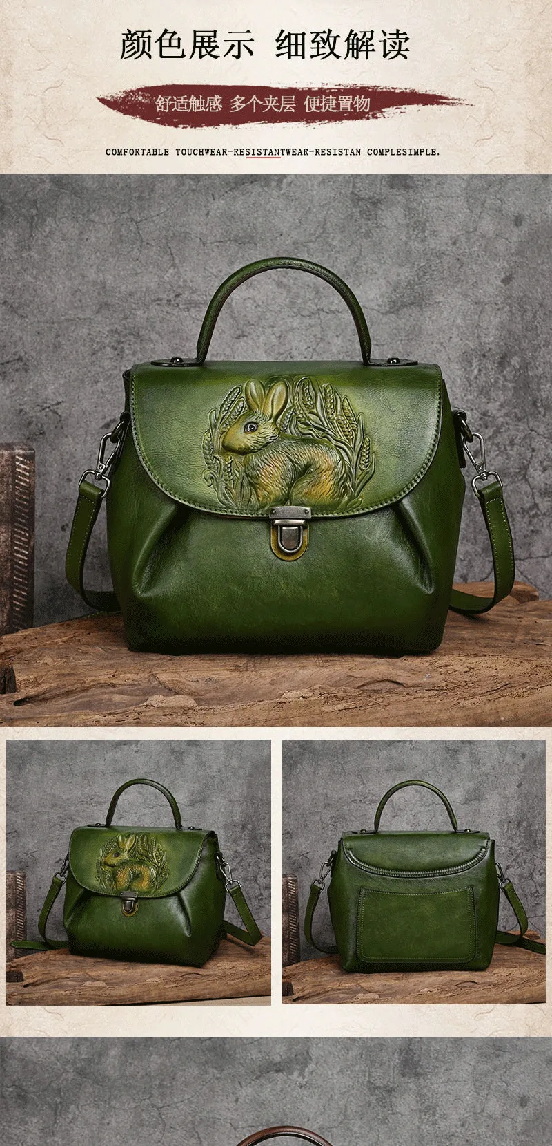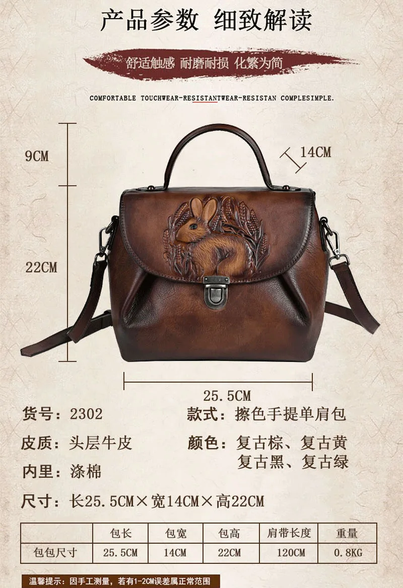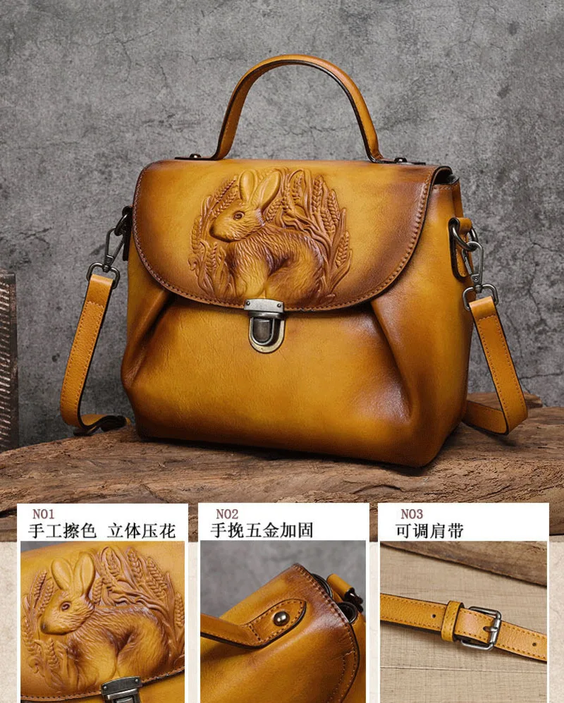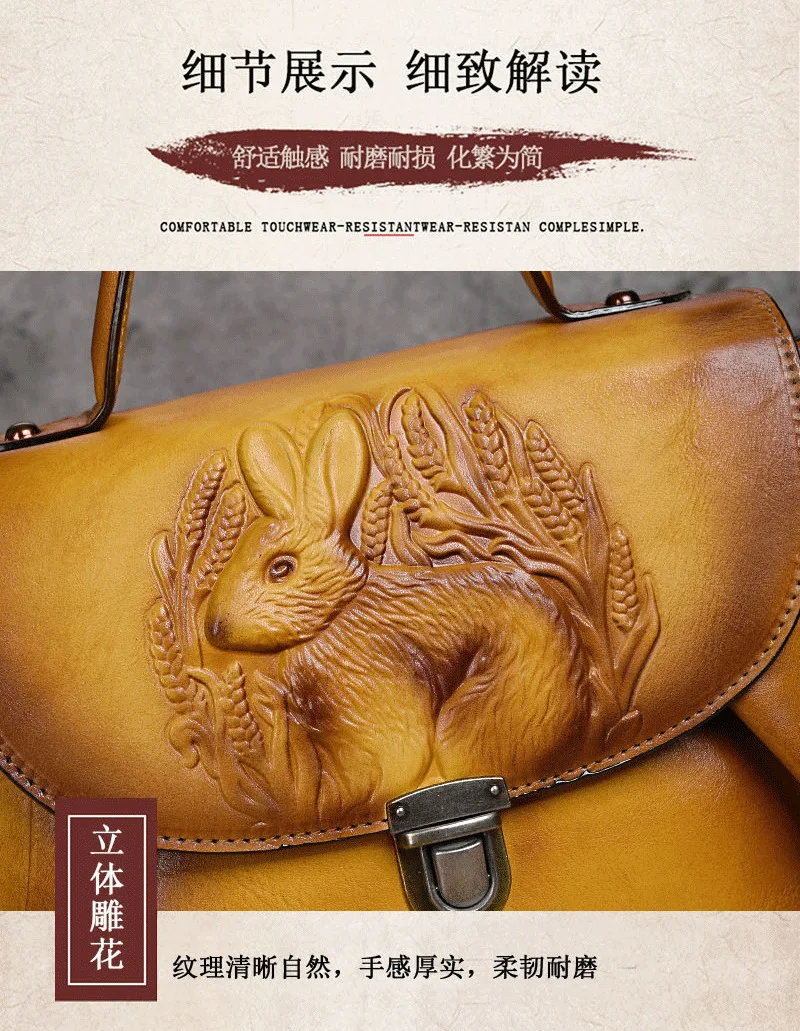 Vintage Handbags For Women Genuine Leather Shoulder Bags 2024 Woman Bag Rabbit Embossed Handmade Luxury Designer Handbag