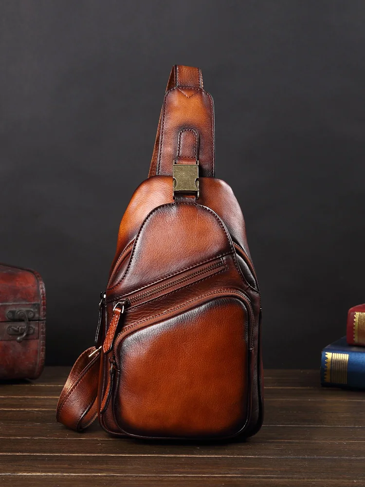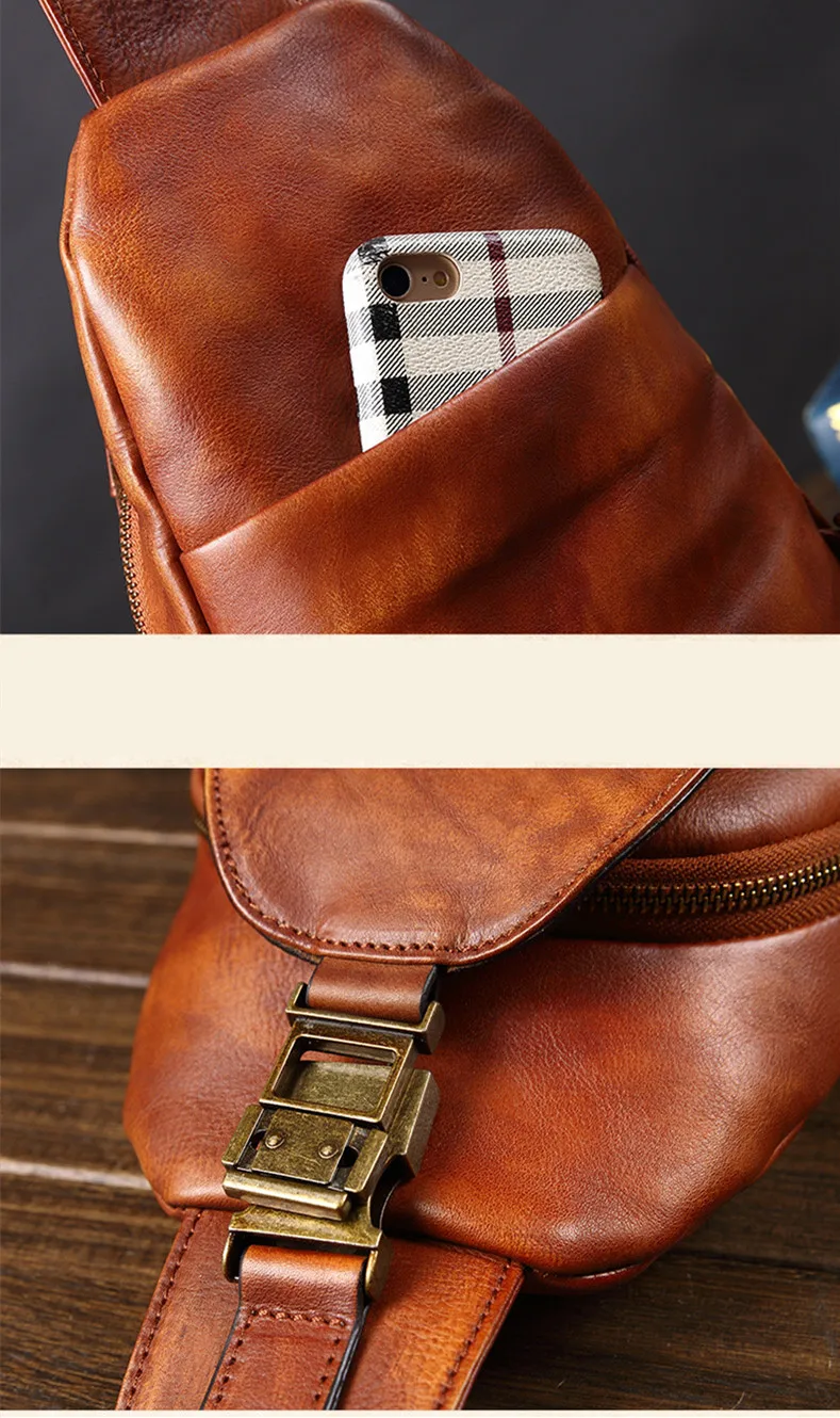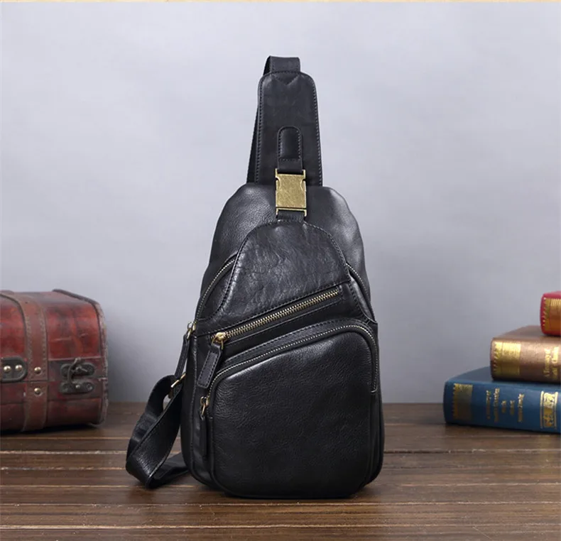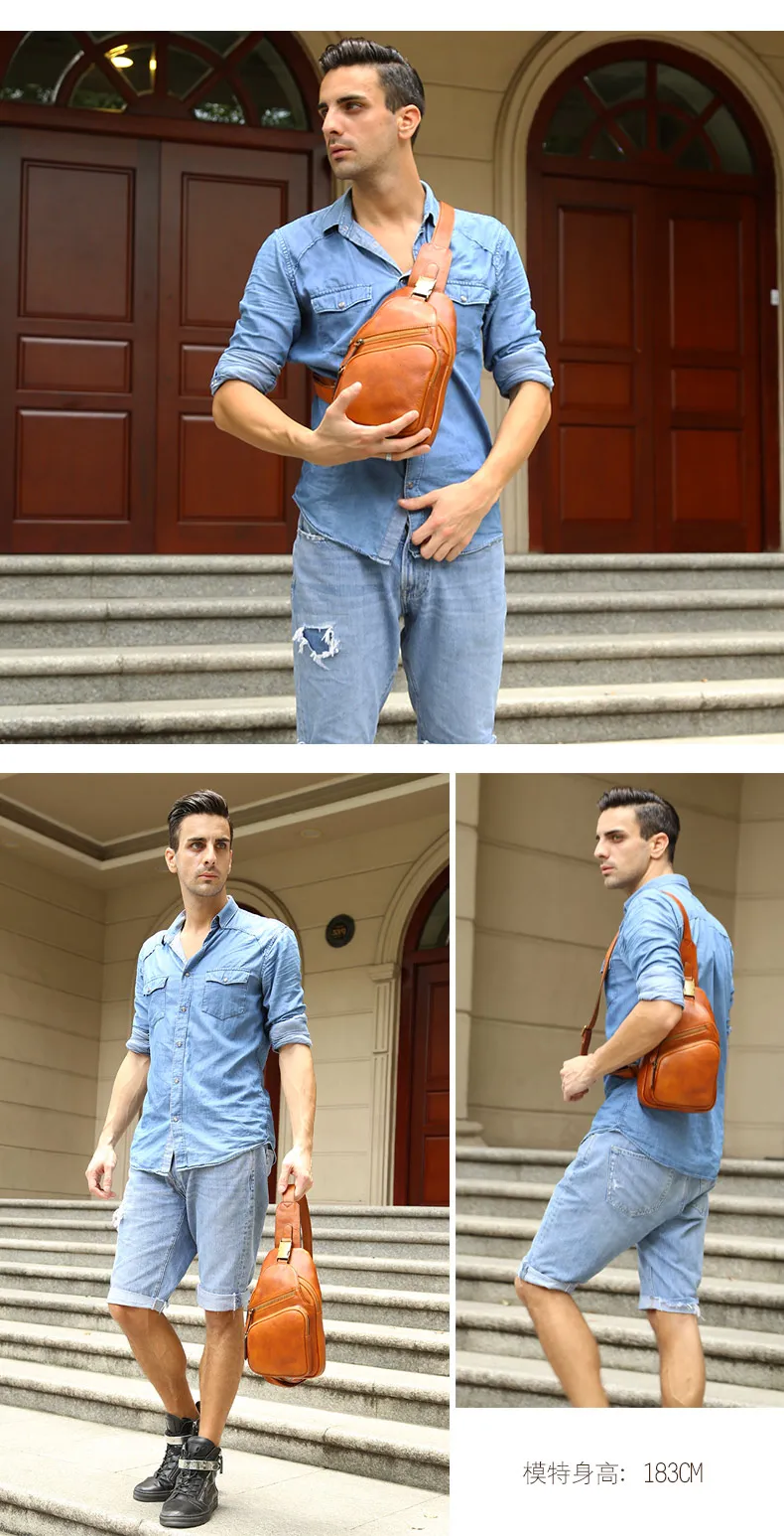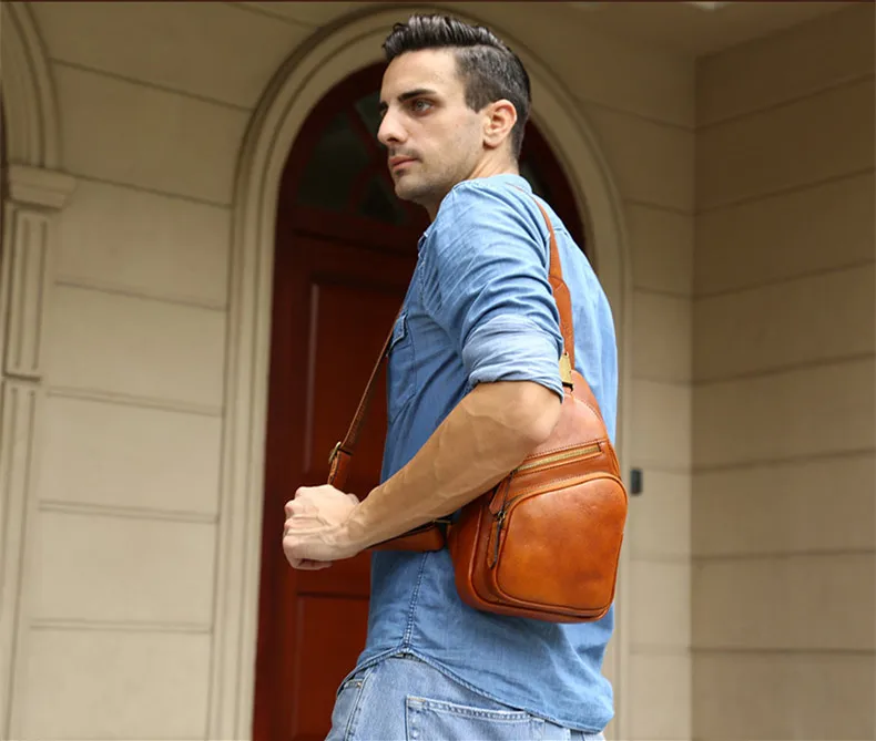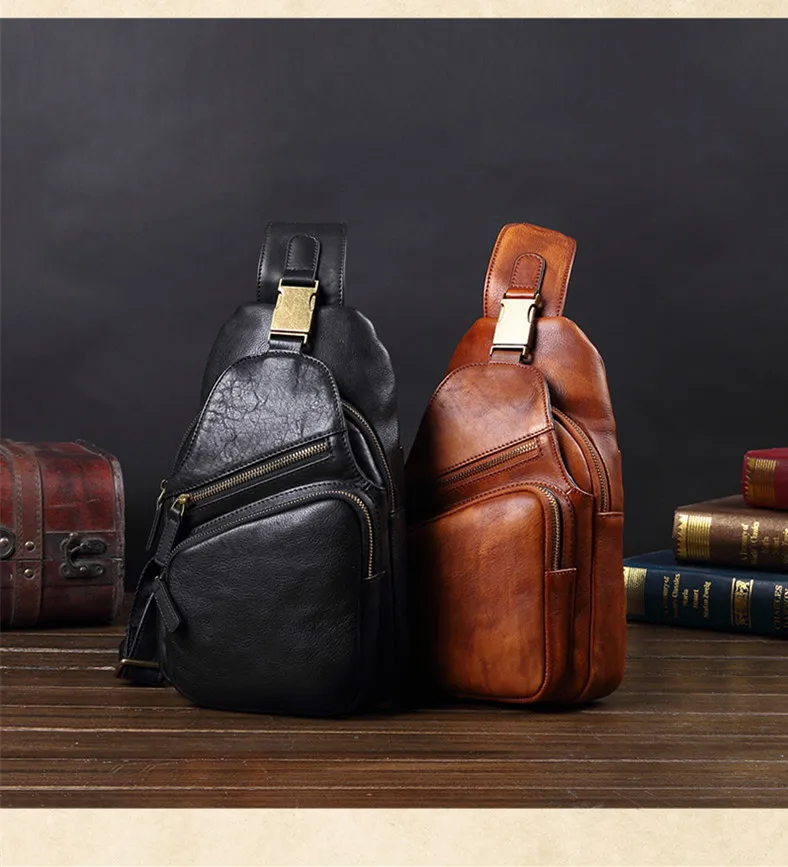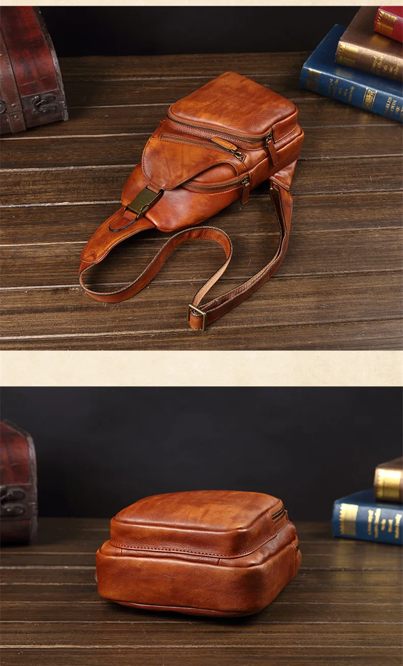 Vintage Leather Men's Bag Men Chest Bag Casual Shoulder Messenger Bag Cowhide Outdoor Chest Small Back Pack Fashion 2020 New 8\