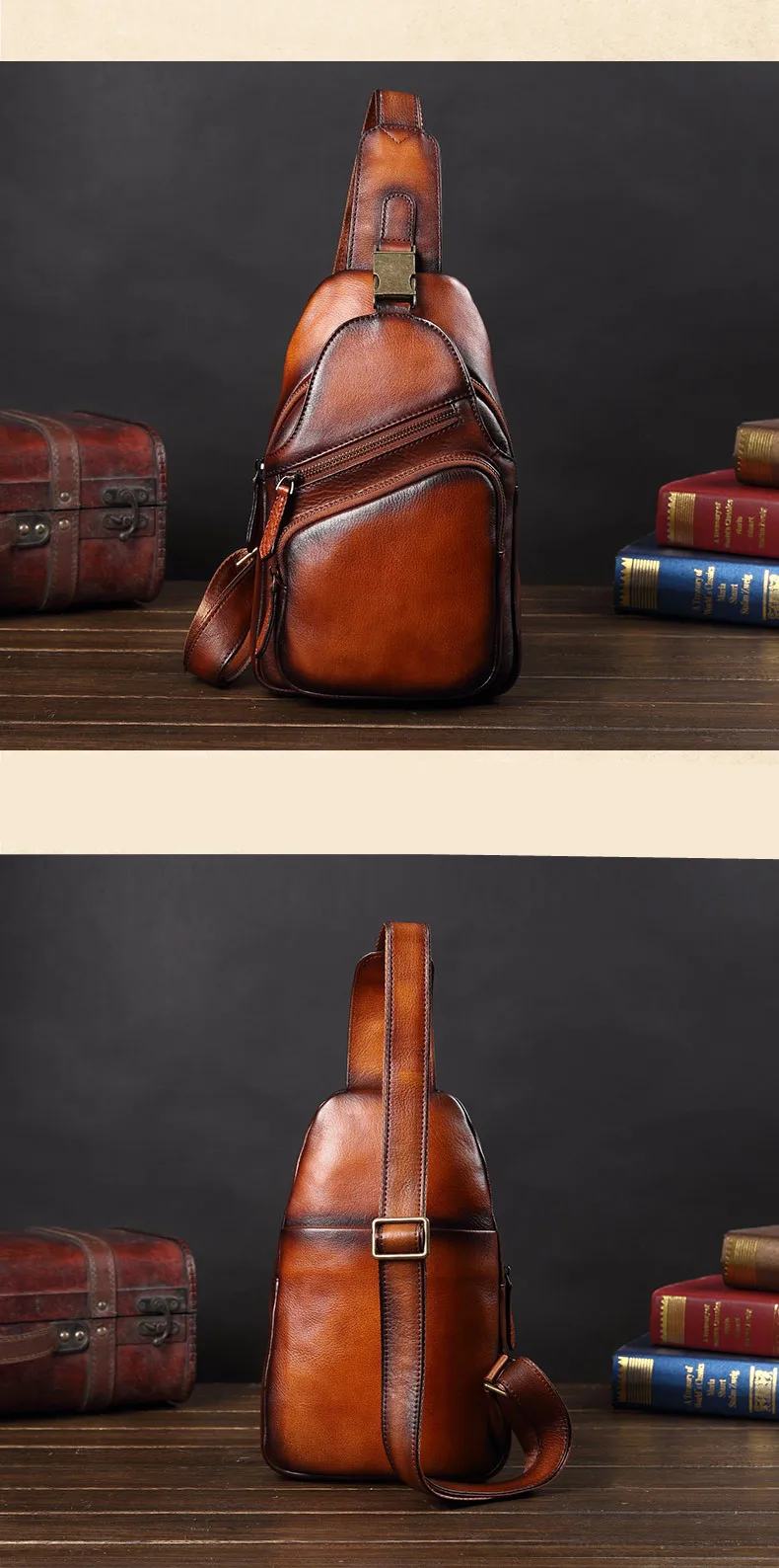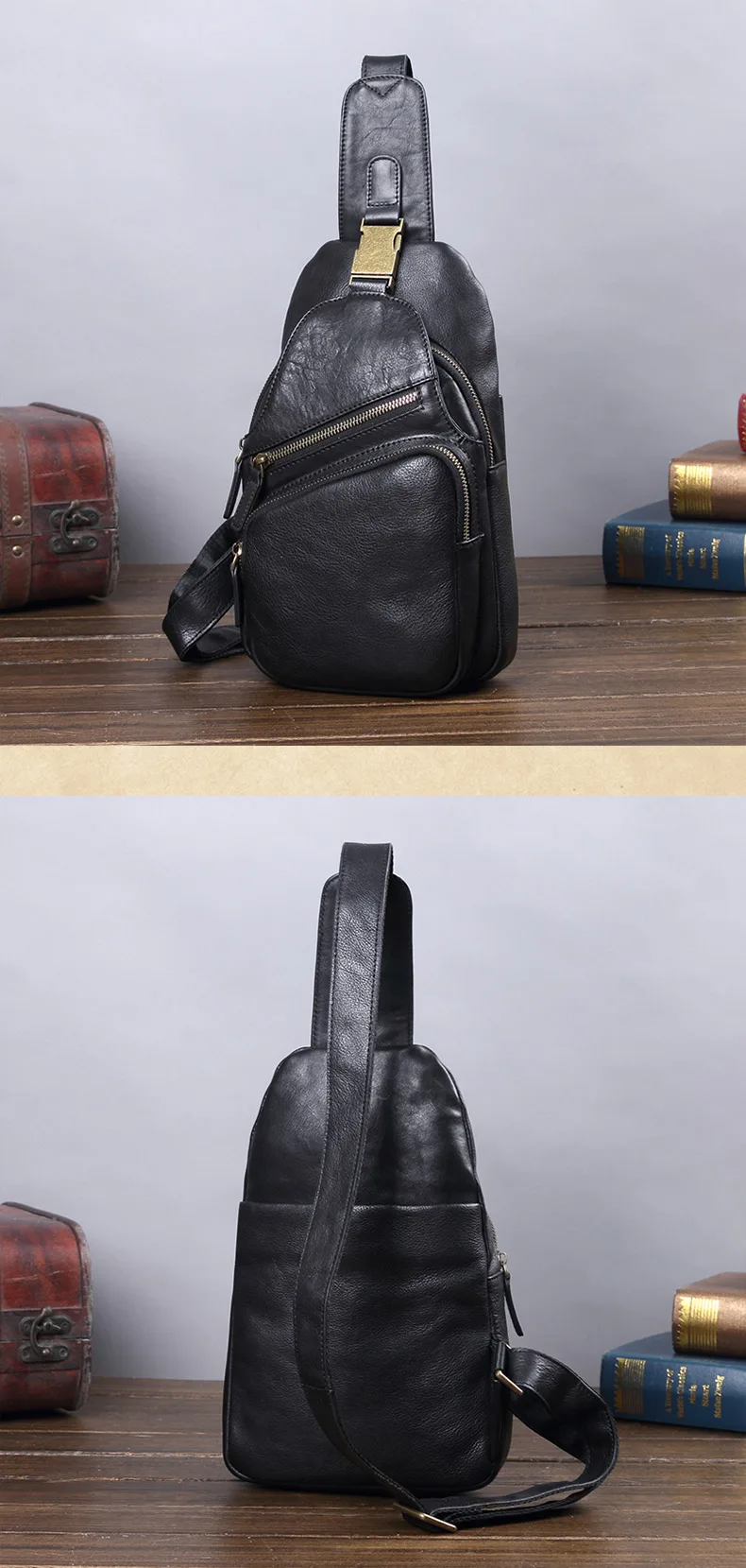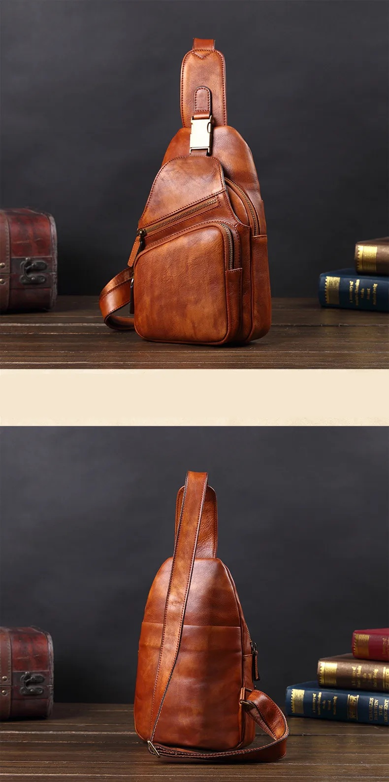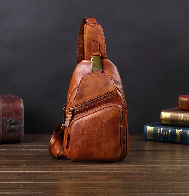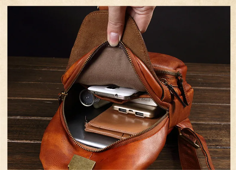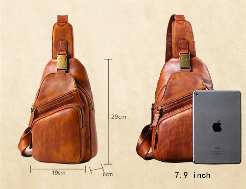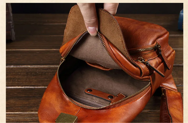 Vintage Leather Men's Bag Men Chest Bag Casual Shoulder Messenger Bag Cowhide Outdoor Chest Small Back Pack Fashion 2020 New 8\