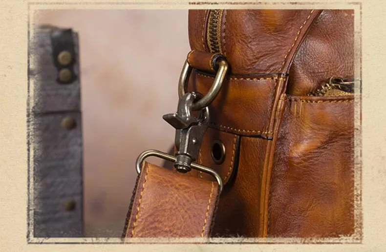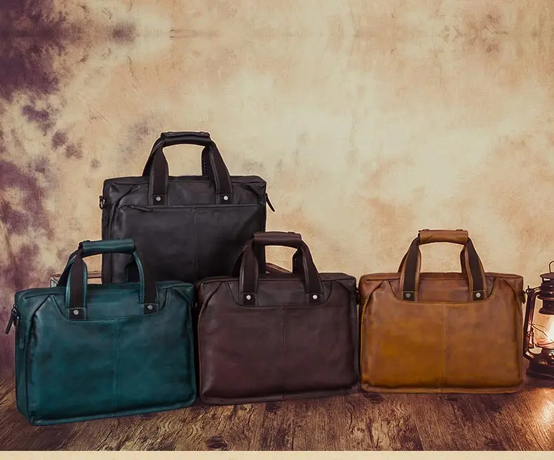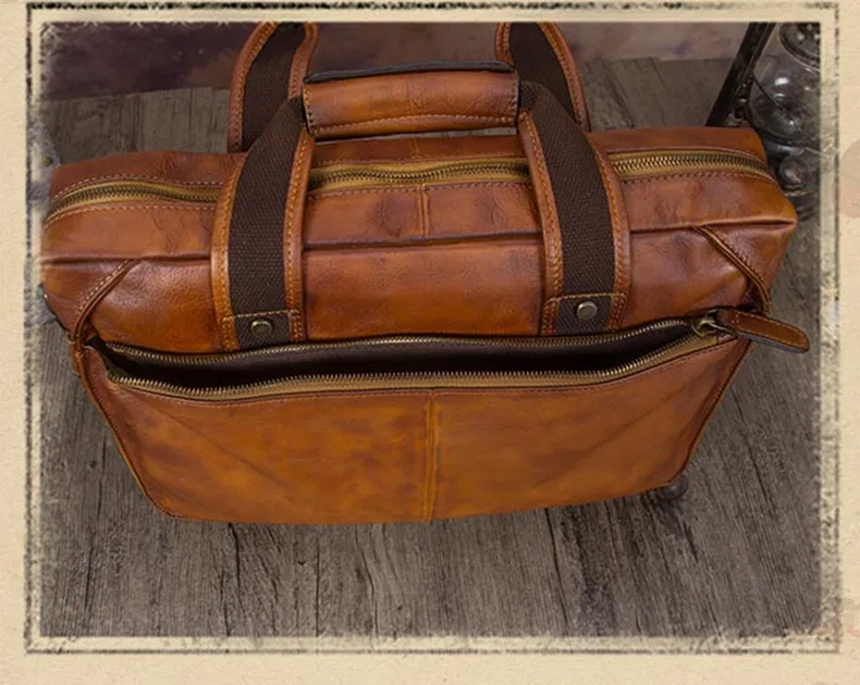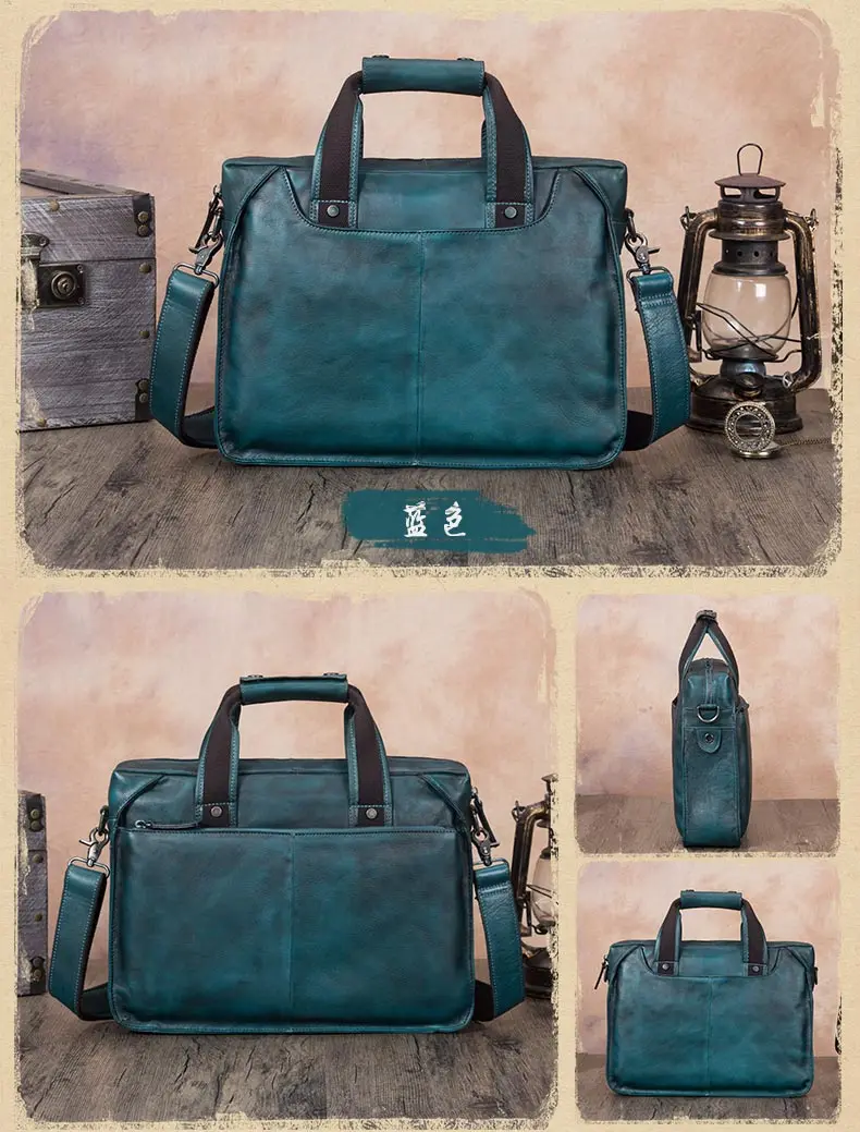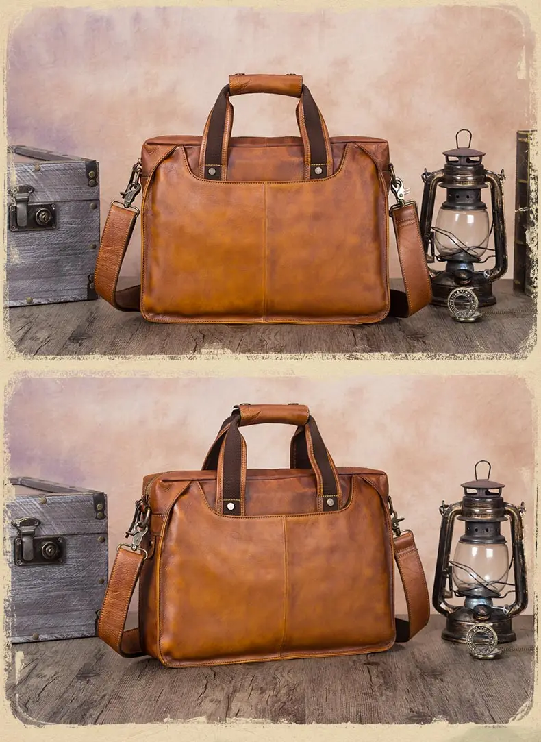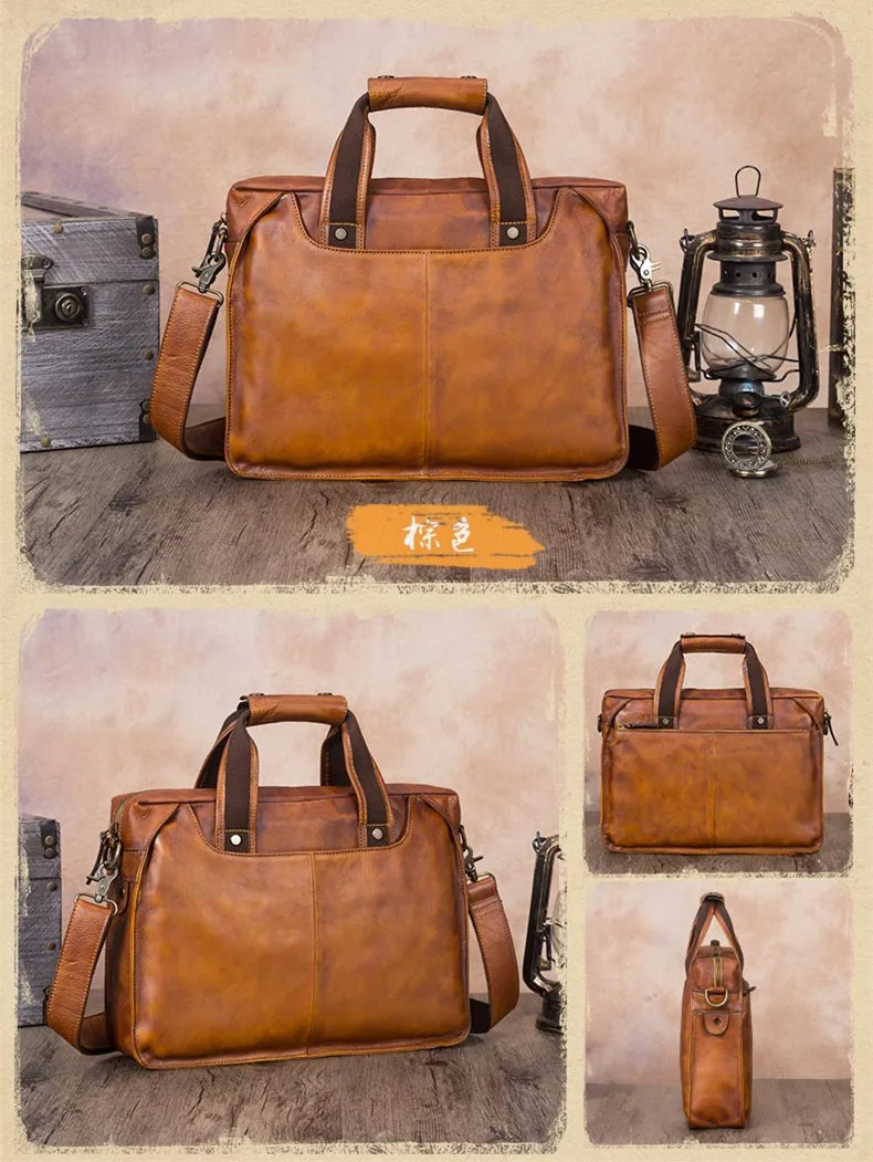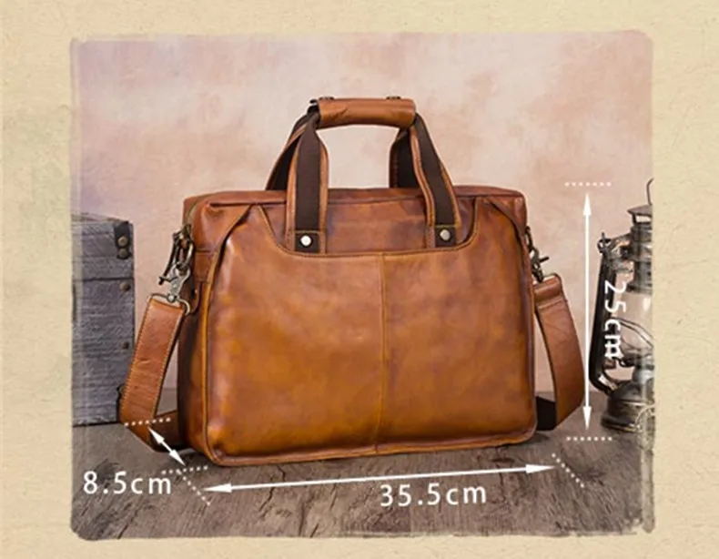 Vintage Leather Men's Briefcase Handmade Laptop Bag Men Cowhide Genuine Leather Handbag Real-leather Shoulder Messenger Bags