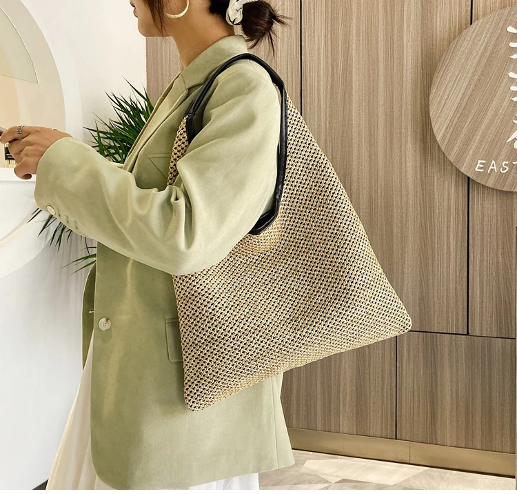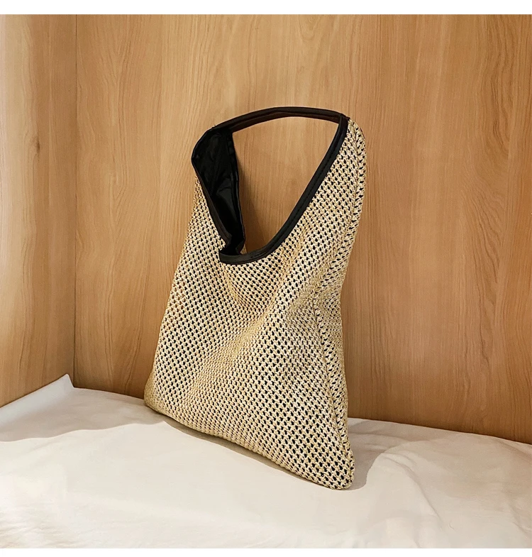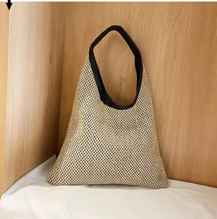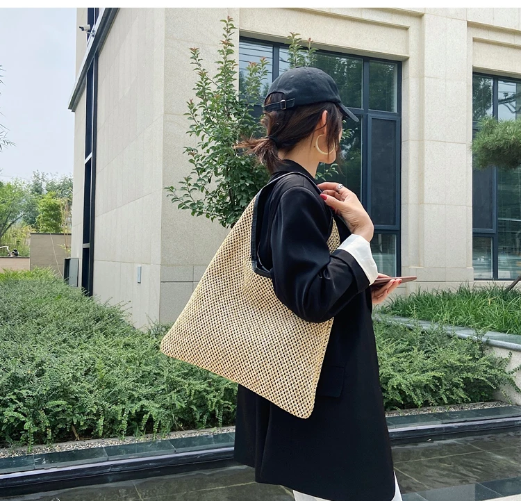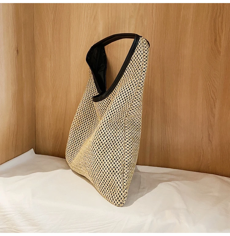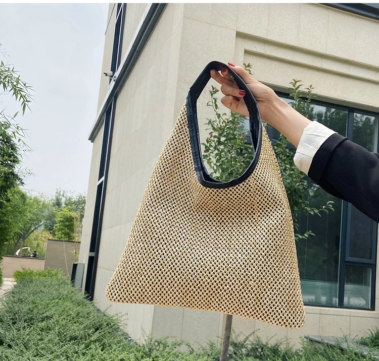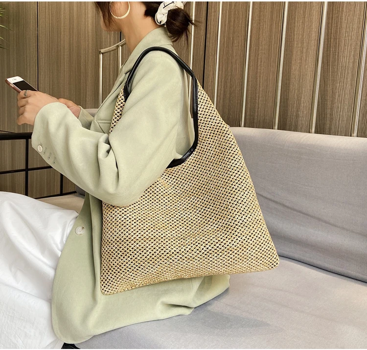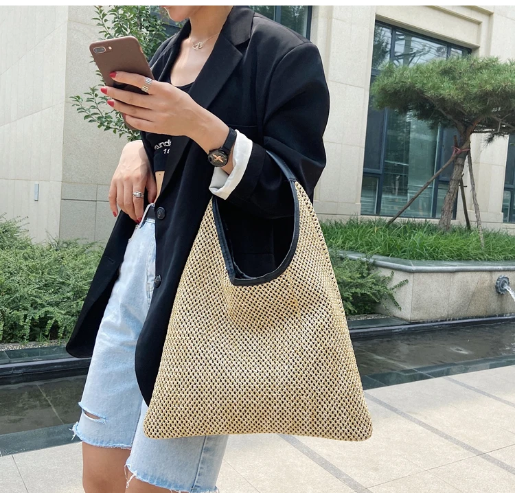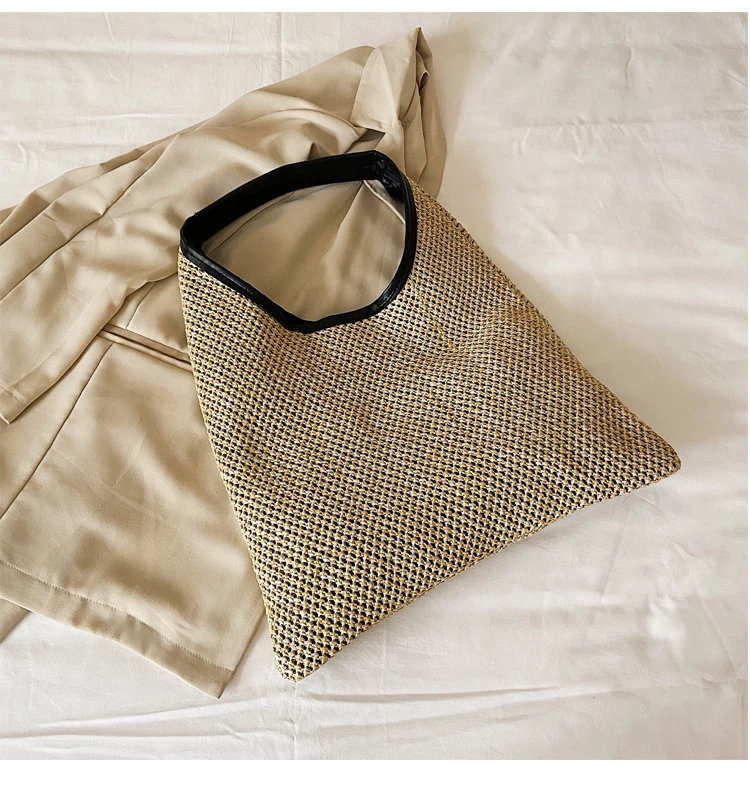 Vintage Summer Women Durable Weave Straw Beach Bags Linen Woven Bucket Bag Grass Casual Tote Handbags Knitting Rattan Bags