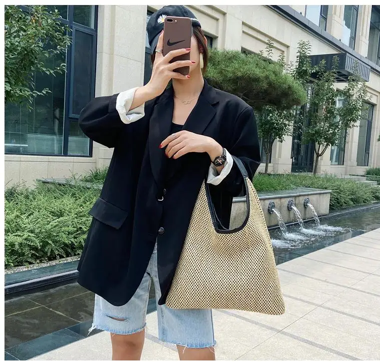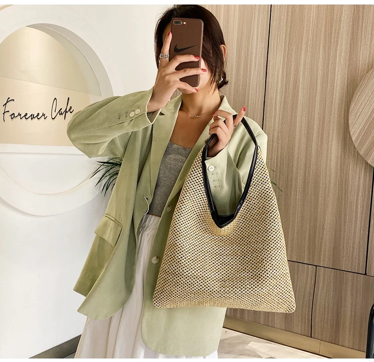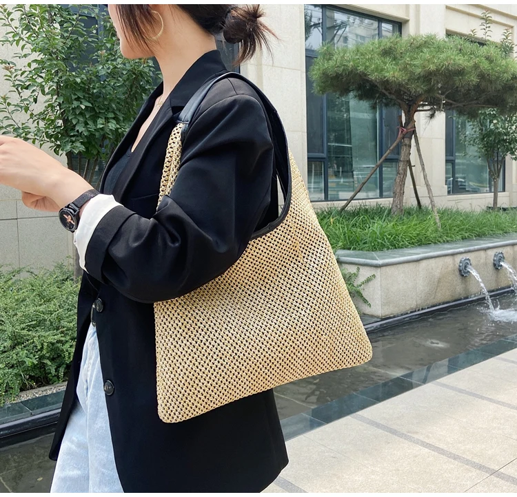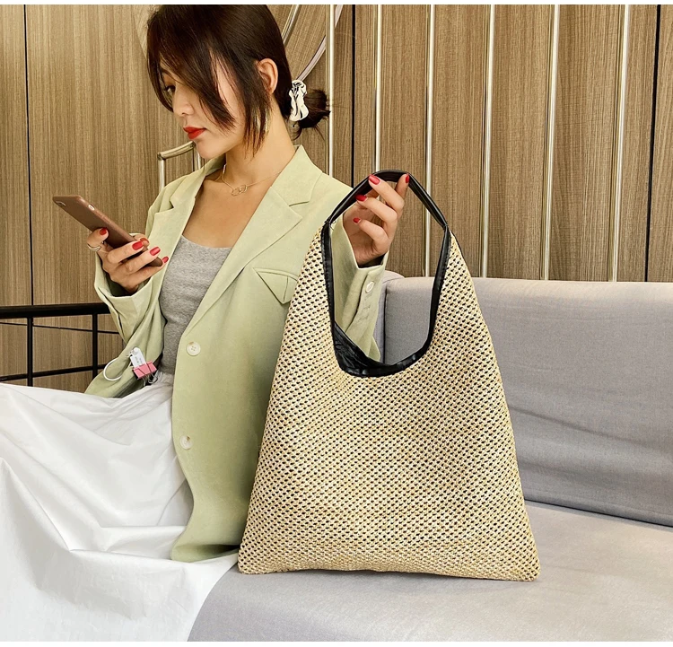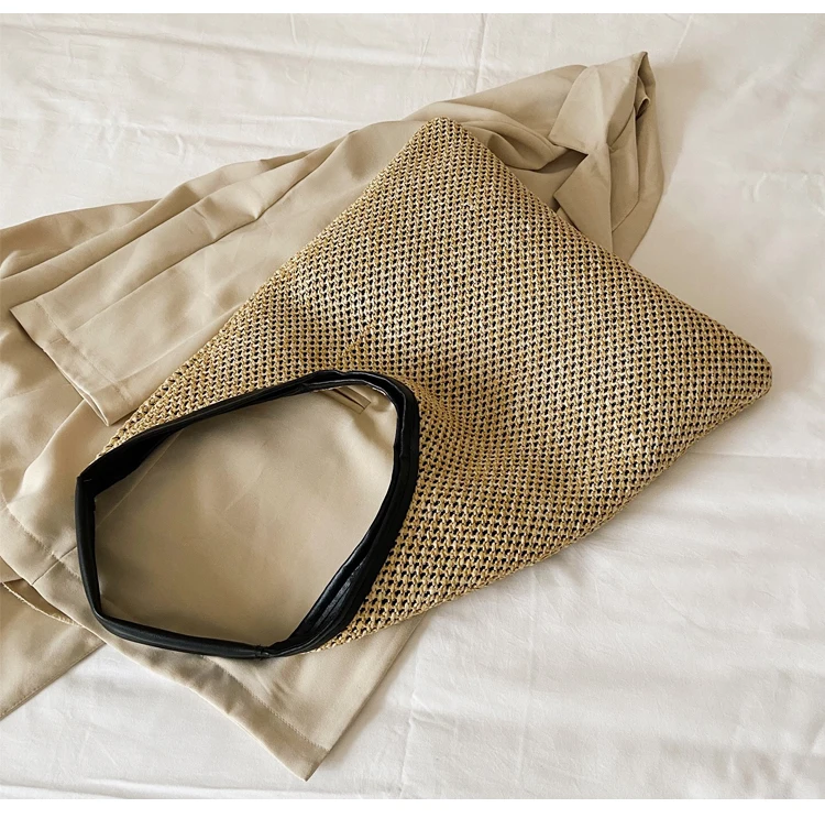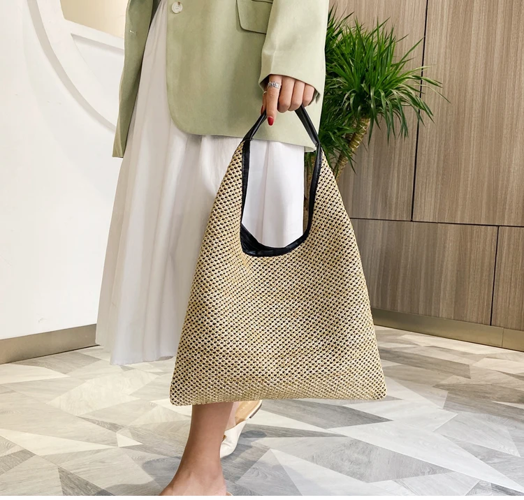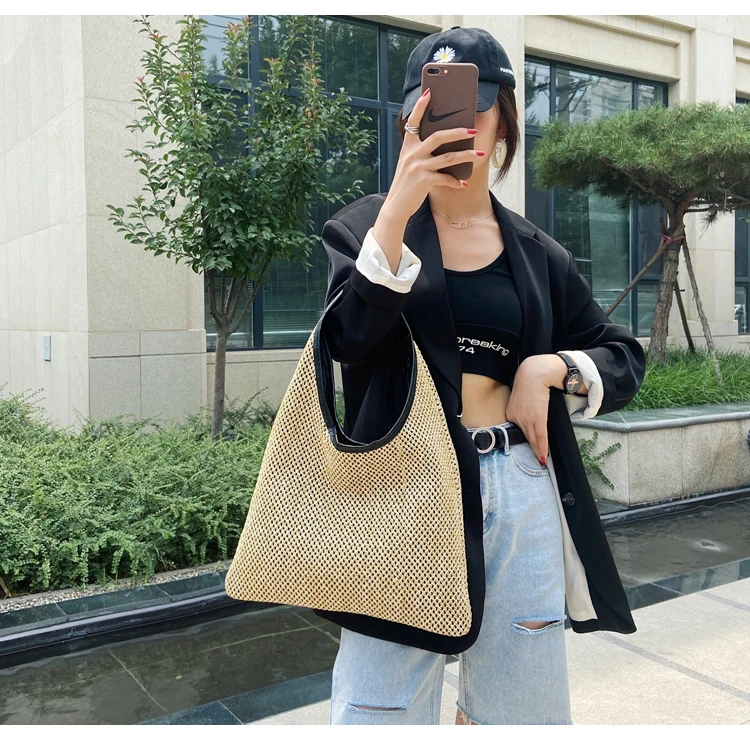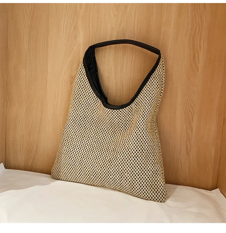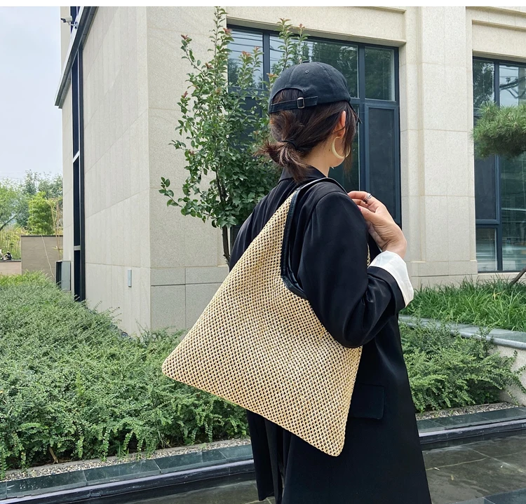 Vintage Summer Women Durable Weave Straw Beach Bags Linen Woven Bucket Bag Grass Casual Tote Handbags Knitting Rattan Bags