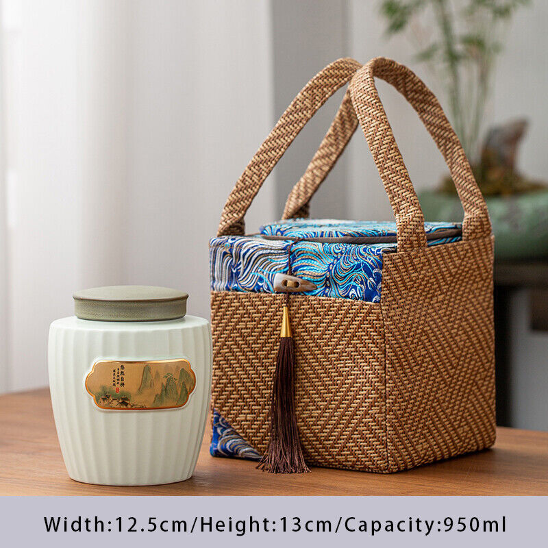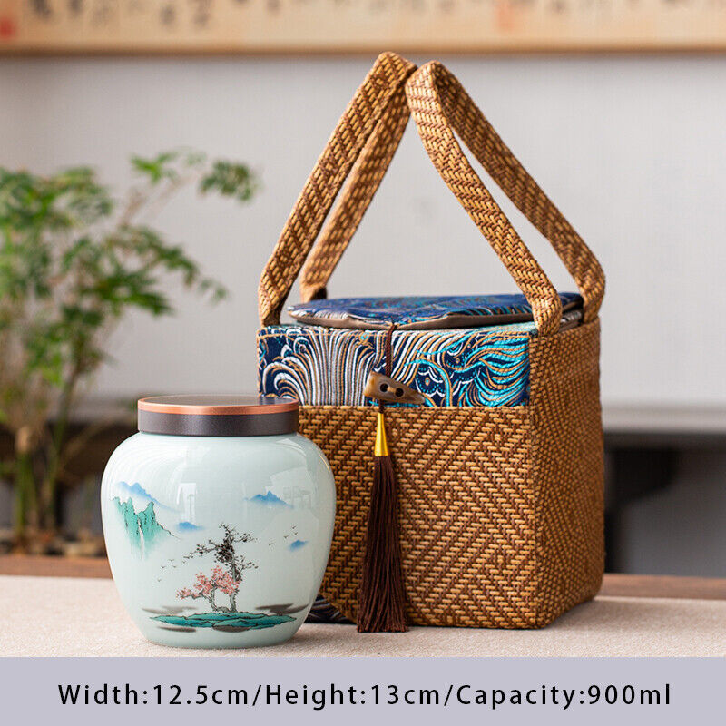 Vintage Tea Packing Boxes Ceramic Tea Jar Package Black Tea Green Tea Gift Box Material: ceramic + fabric Size: The size of the jars can be found in the attribute chart of each product, the size of the packaging can be seen in the size chart Use: Can be used for tea, coffee beans and other supplies, and is excellent for gifts.