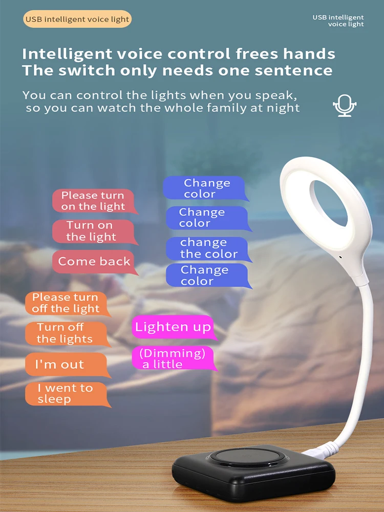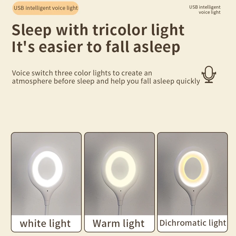 USB Smart Voice Control Night Light, 24LED 3 Colors-cool white,warm white, dichromatic light, Bedroom Lamp for Living Read Work,Plug and Play