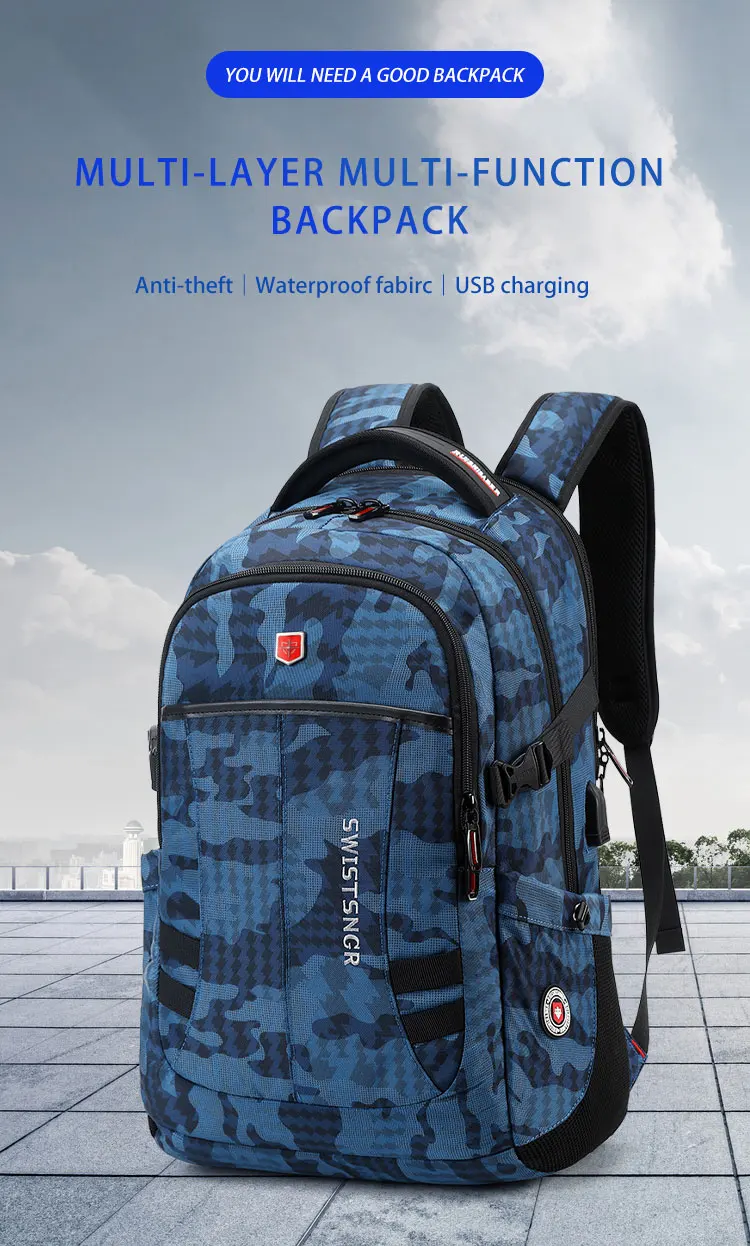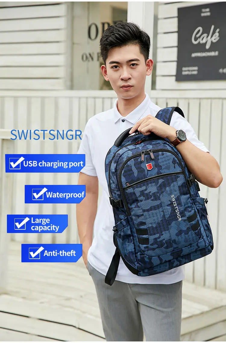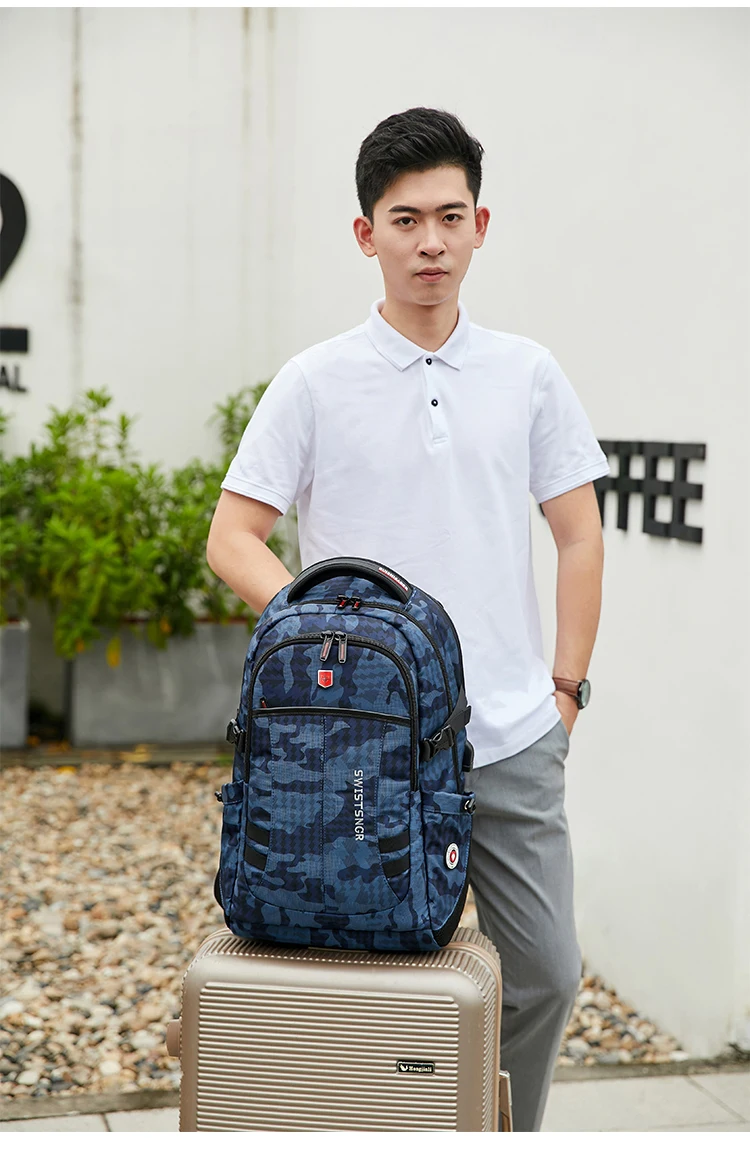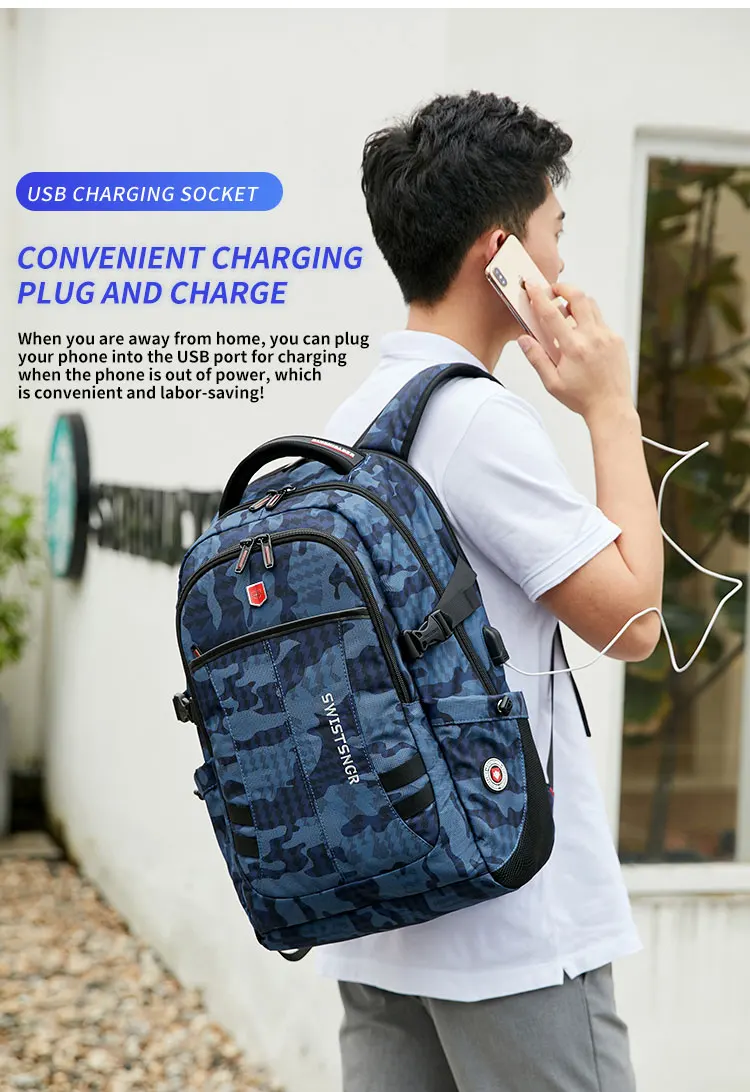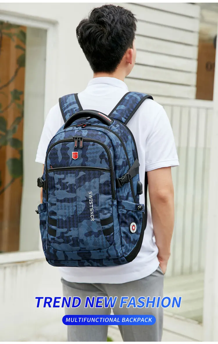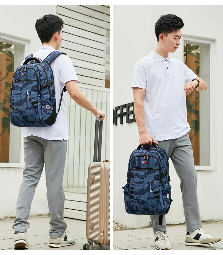 Waterproof 15.6 Inch Laptop Backpack Men USB Charging Anti-theft Swiss Backpack Travel Women Rucksack Male School Bag Mochila