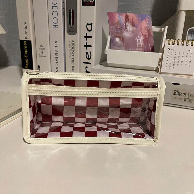 Waterproof Large Capacity Pencil Case Simple Transparent Checkerboard Pencil Bag