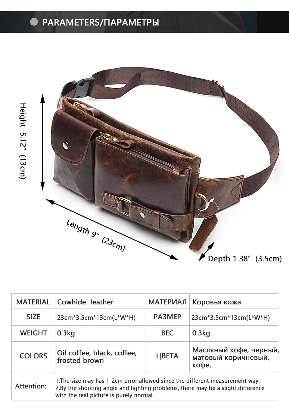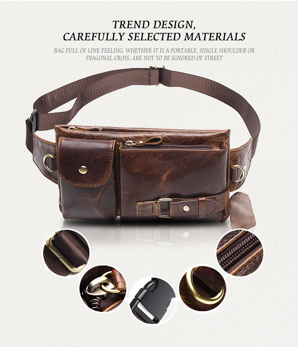 WESTAL Men's Chest Bags for Phone Men's Shoulder Bags Genuine Leather Sling Bag Travel Chest Pack Male Money Belt Bag Bolsa 9080