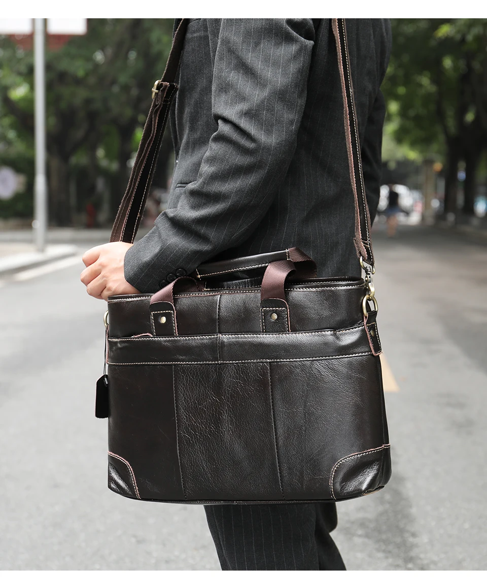 WESTAL Men's Leather Bag for Men Briefcases Bags Man Genuine Leather Laptop Bag Shoulder Messenger Bags a4 Document Briefcases