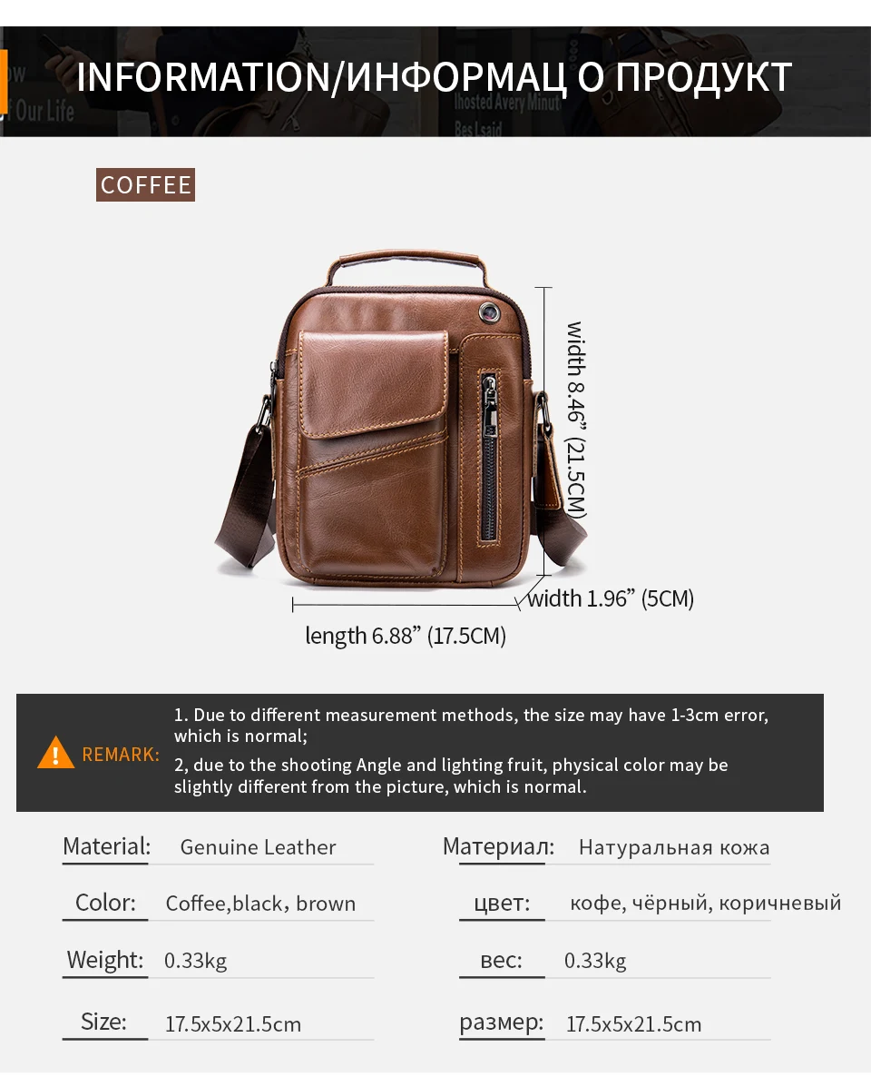 Men's Bags Genuine Leather Bag Male Messenger Crossbody Bags Casual Cowhide Flap Leather Men Shoulder Bag Man