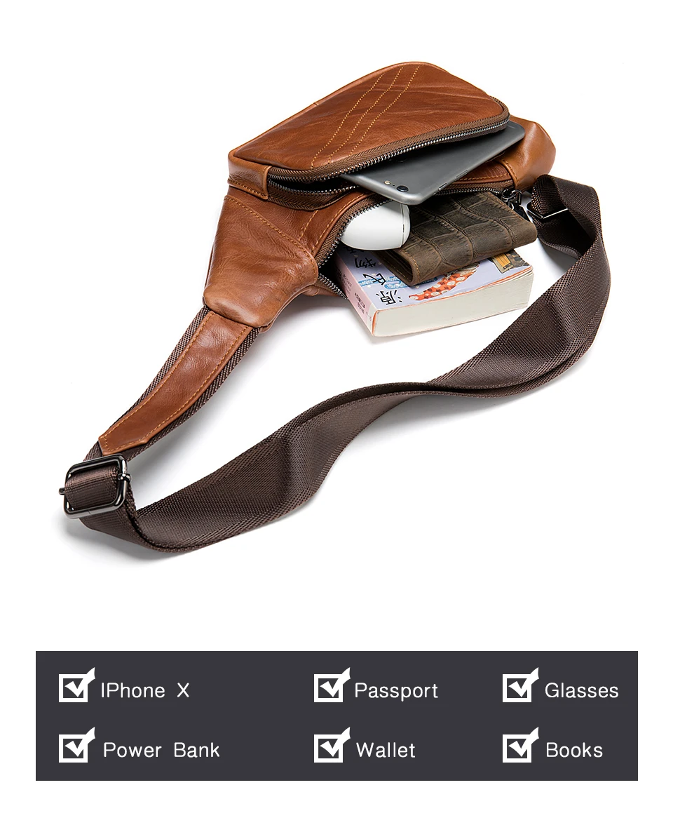 WESTAL Men's Shoulder Bag Men's Genuine Leather Chest Pack Man Sling Messenger Bags Belt Small Crossbody Bags Side Bags for Men