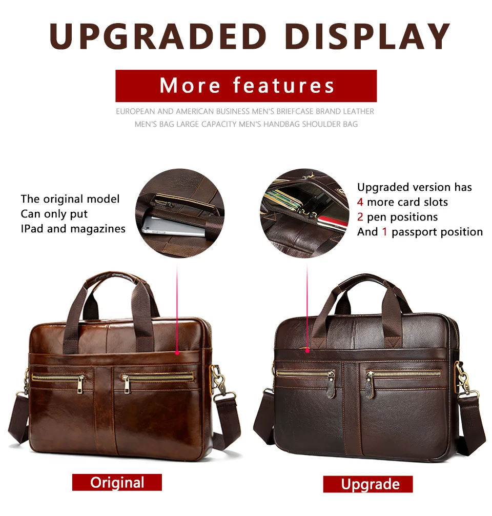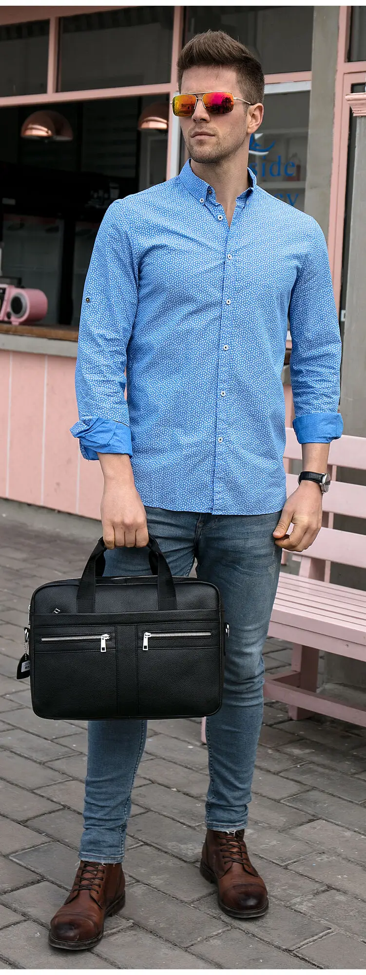 • Business Briefcases Man for lawyer Genuine Leather Messenger Bag Men Shoulder Bags leather laptop men's briefcases computer bag handbags for documen