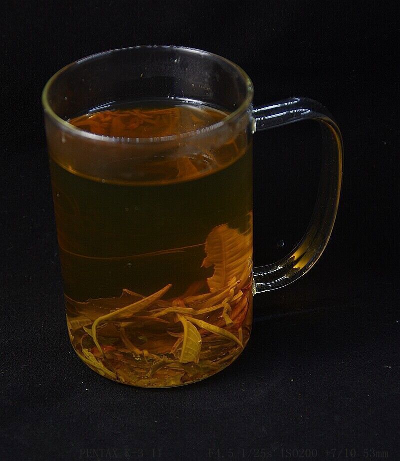The water used to steep this tea should be about 160-180°F or 70-80°C. Use about 2 teaspoons (3 grams) of tea leaves for about every 5 ounces (150 milliliters) of water. A steeping time of about 3-5 minutes with more or less time is recommended depending on the desired concentration. As a rough guide, the hotter the water or the greater the amount of leaves used, the shorter the steeping time should be. The use of a covered glass or ceramic cup is recommended for steeping in order to appreciate the tea leaves.