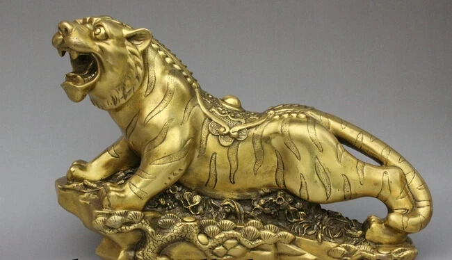 wholesale factory 14" Folk Chinese Bronze Decoration Brass Zodiac Year Tiger Statue Running Hill pine tree 25% off