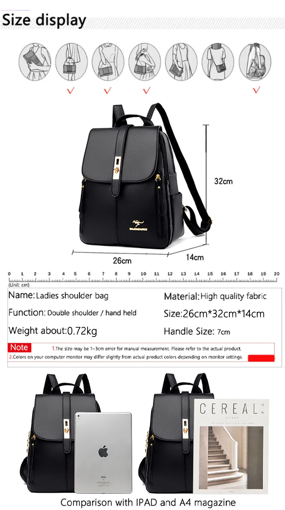 1.All products' sizes are mearsured by hand, 1-3cm error is in a reasonable range.