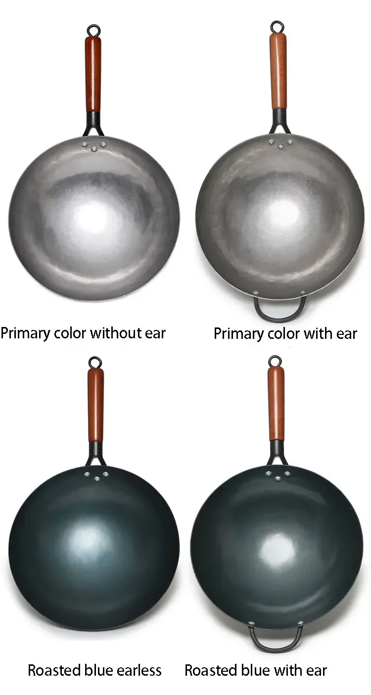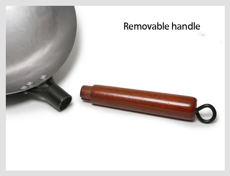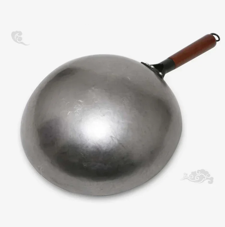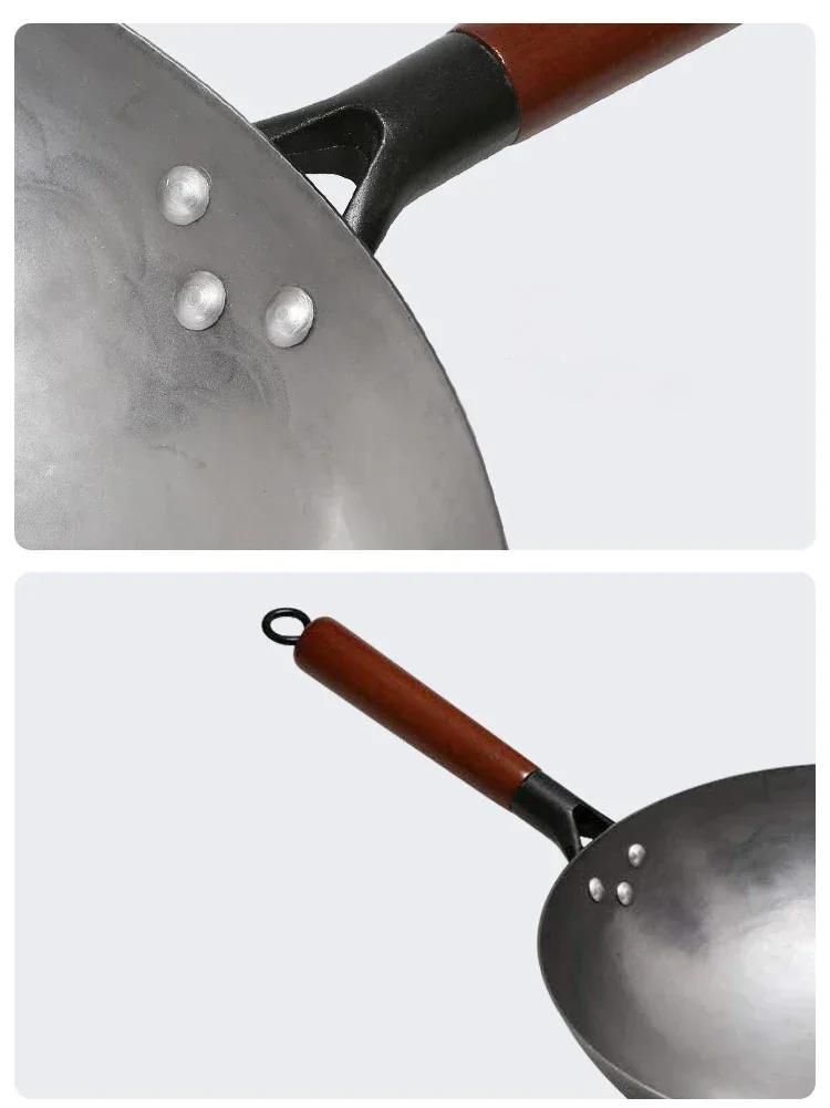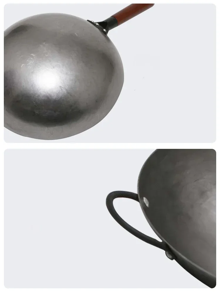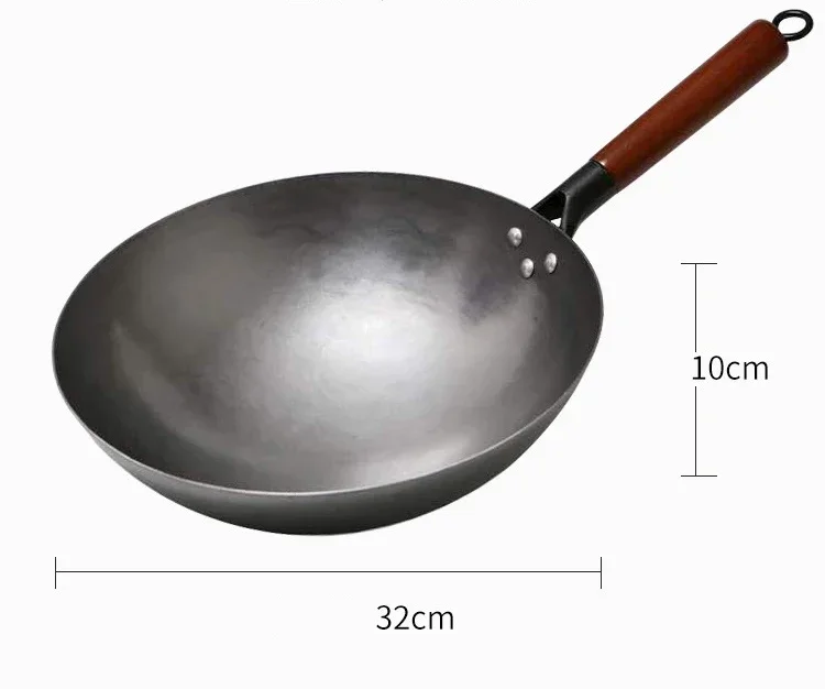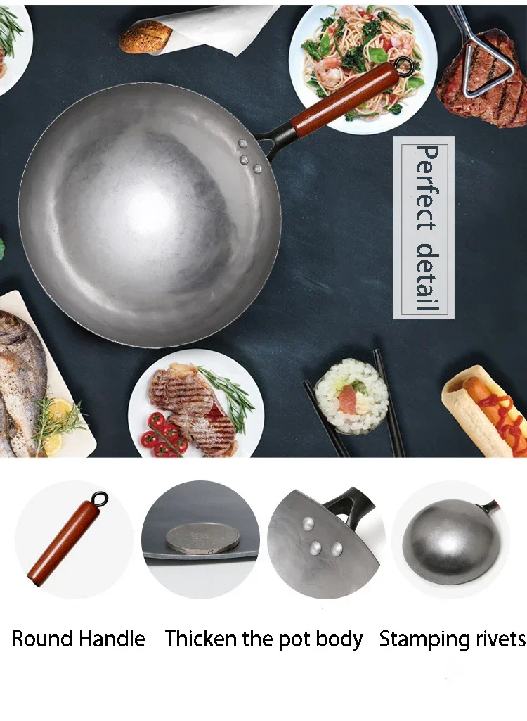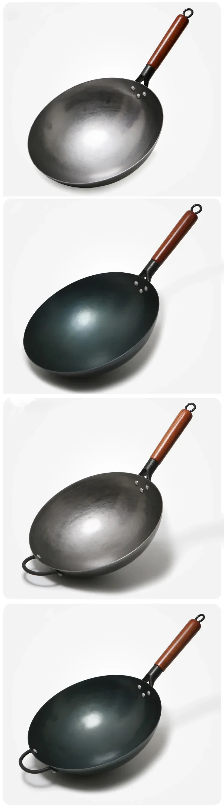 Wok Burner Traditional Authentic Hand Hammered Carbon Steel Round Bottom Stir Fry Pans Birch Handle Wok Pan