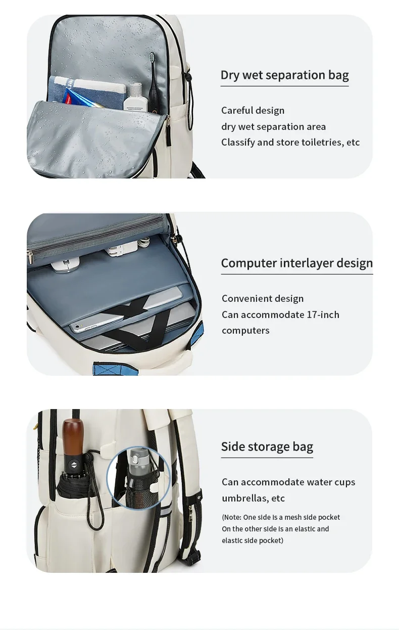 Woman Travel outdoor Backpack Business 16 Inch Laptop Backpack Fashion Waterproof School Backpack With Dry wet separation bag
