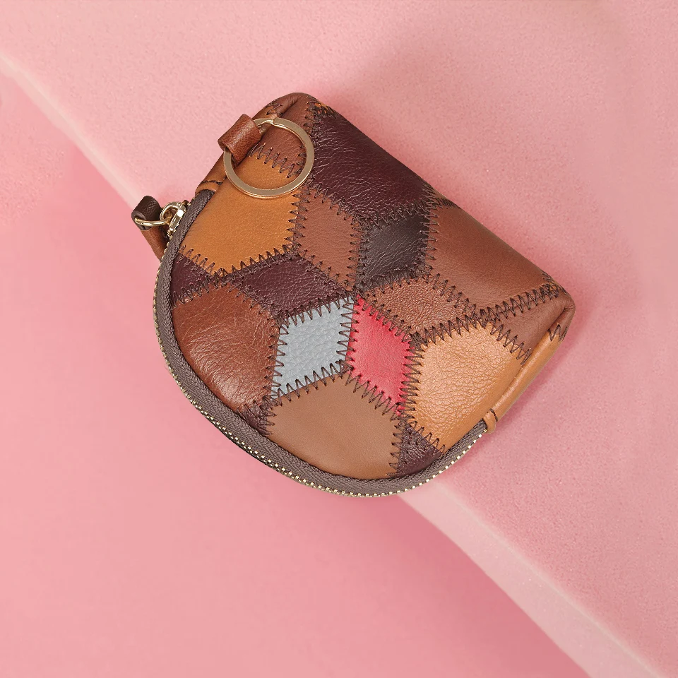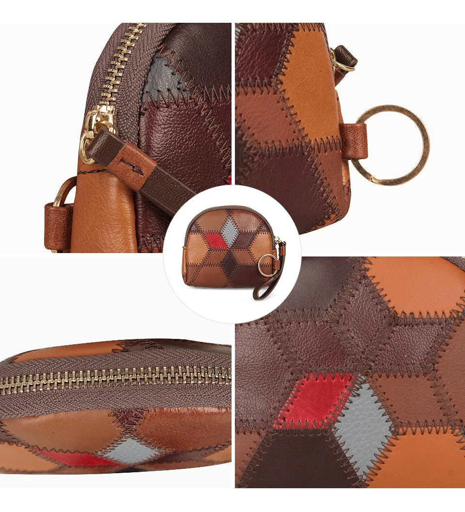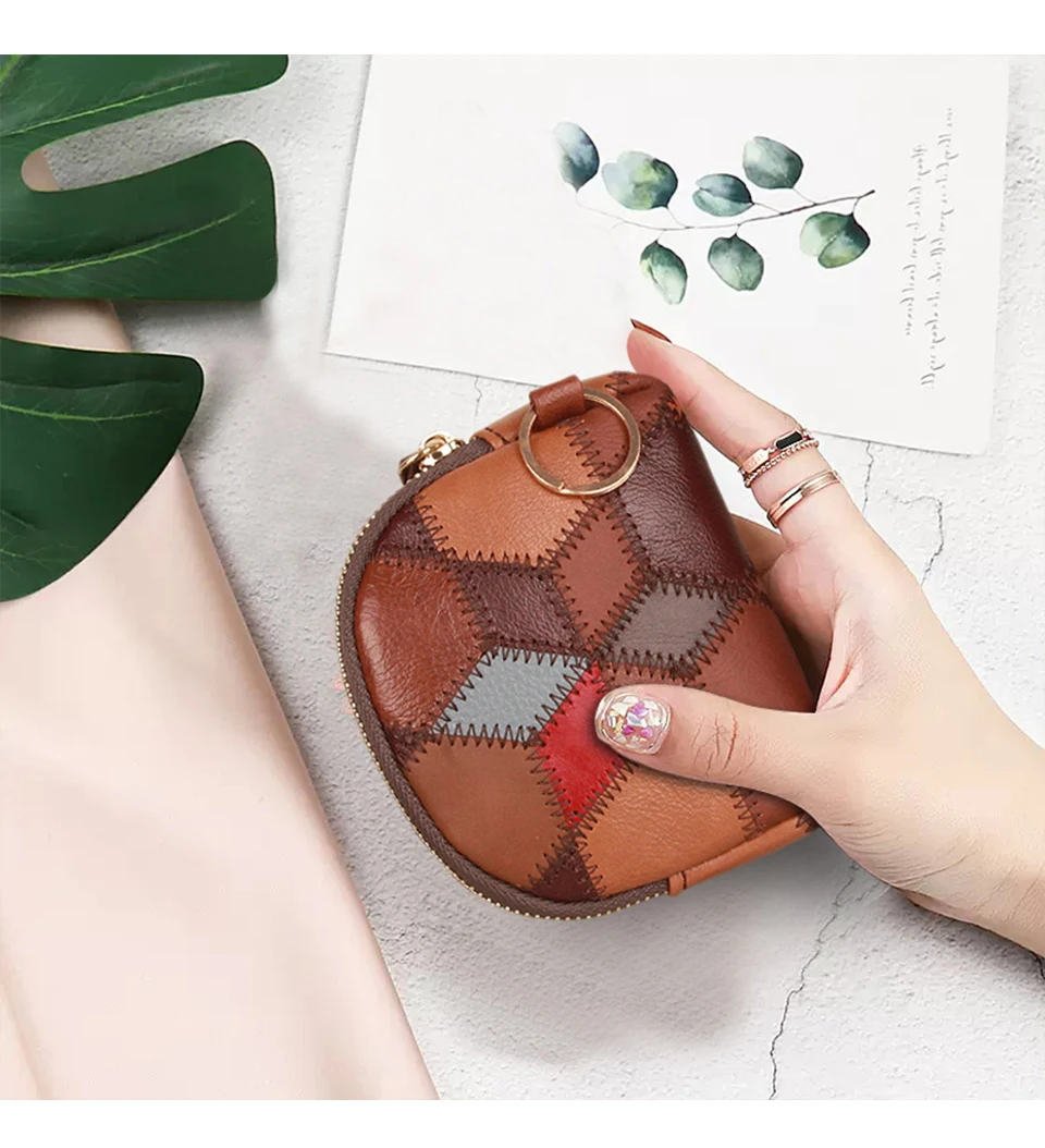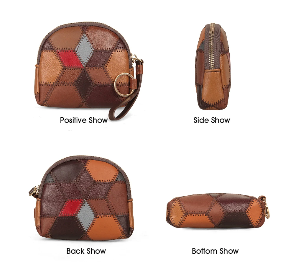 Women 100% Genuine Leather Wallets Small Coin Purse Mini Wallet With Zipper Keychain Clutch Pouch Bag Pouch Key Card Holder