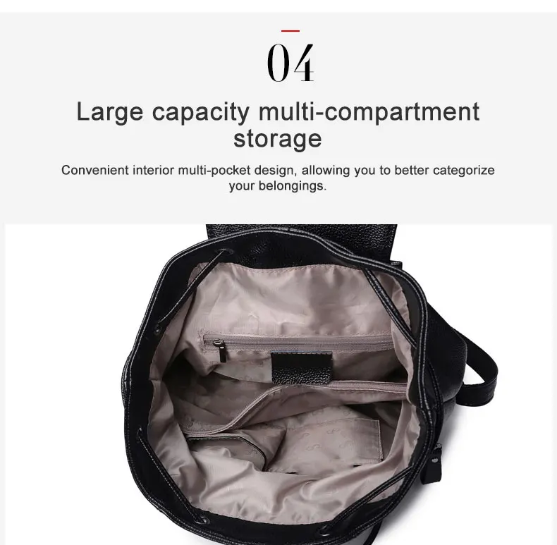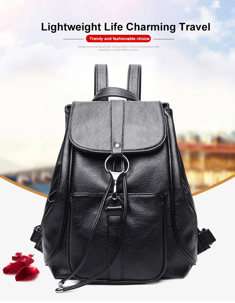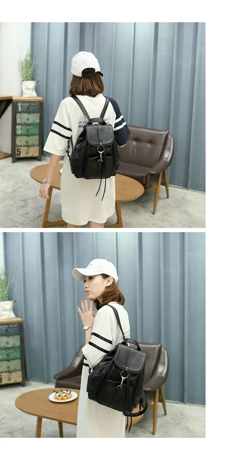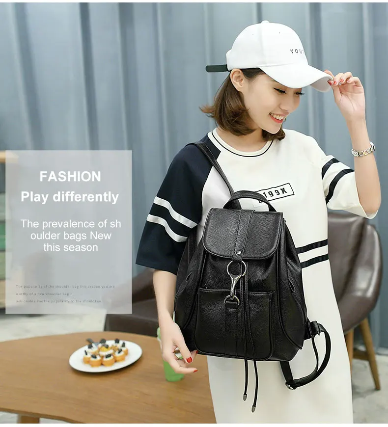 Women Backpack 2024 New PU Leather Girls School Bag Large Capacity Black High Quality Anti Theft Female Backpacks WJT043