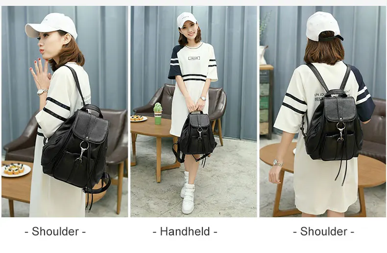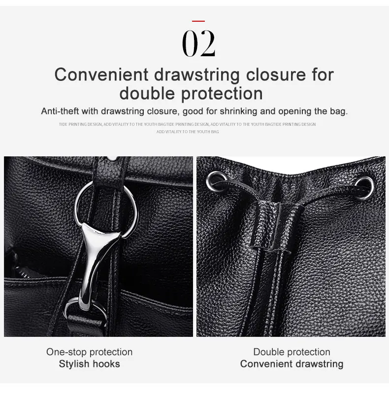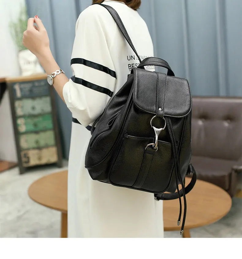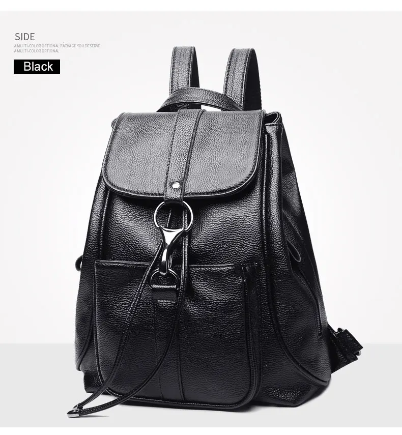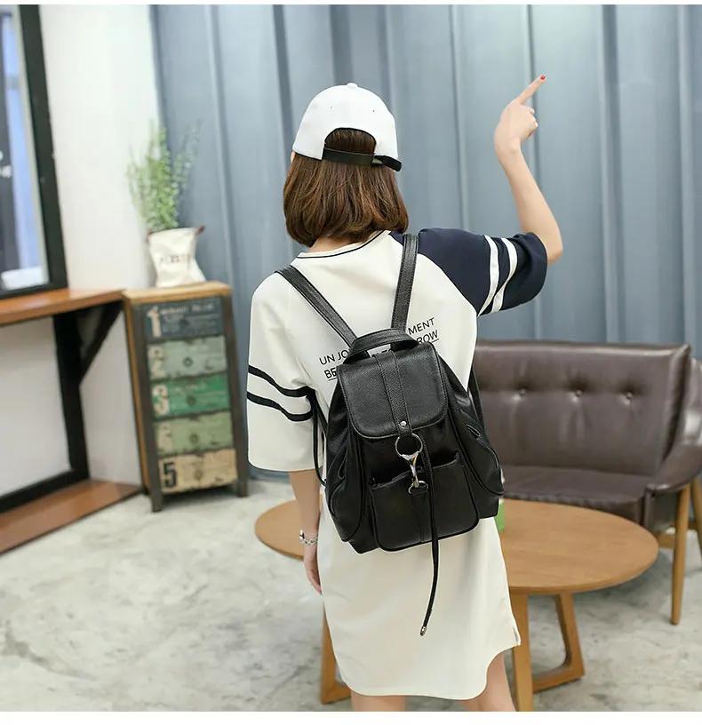 Women Backpack 2024 New PU Leather Girls School Bag Large Capacity Black High Quality Anti Theft Female Backpacks WJT043