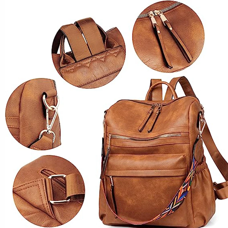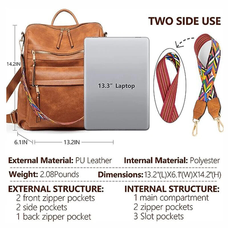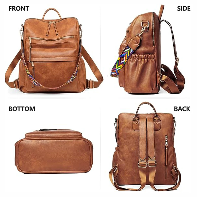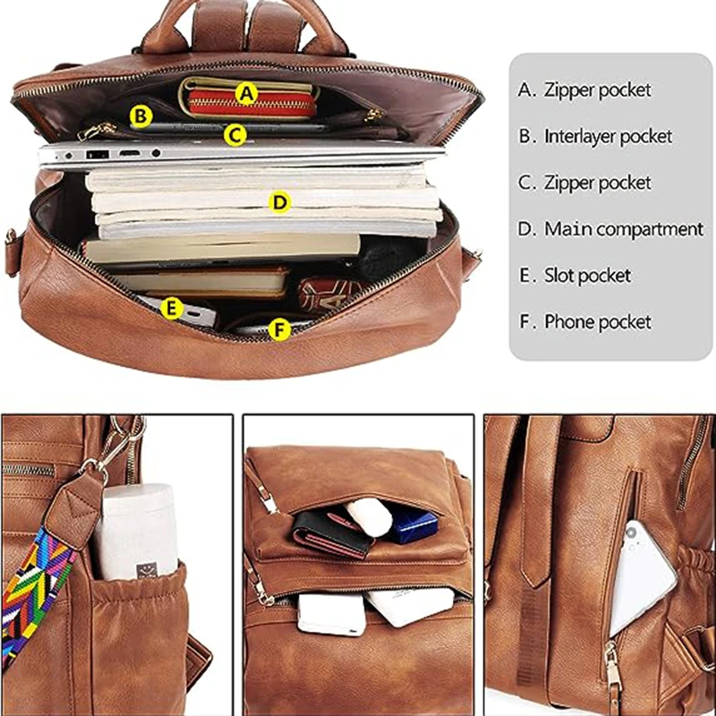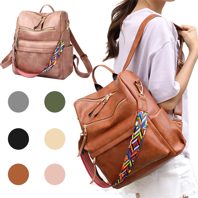 Women Backpack Purse Ladies Travel College Shoulder Bags with Colorful Strap