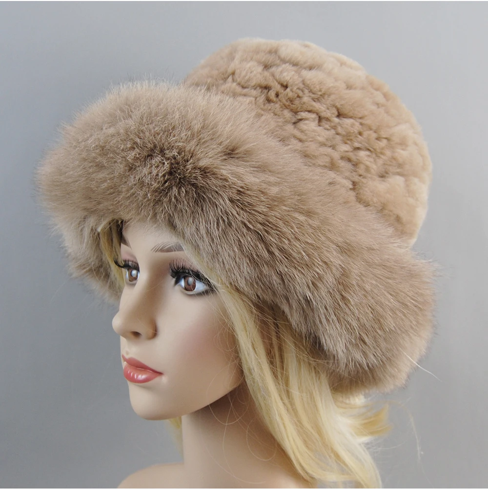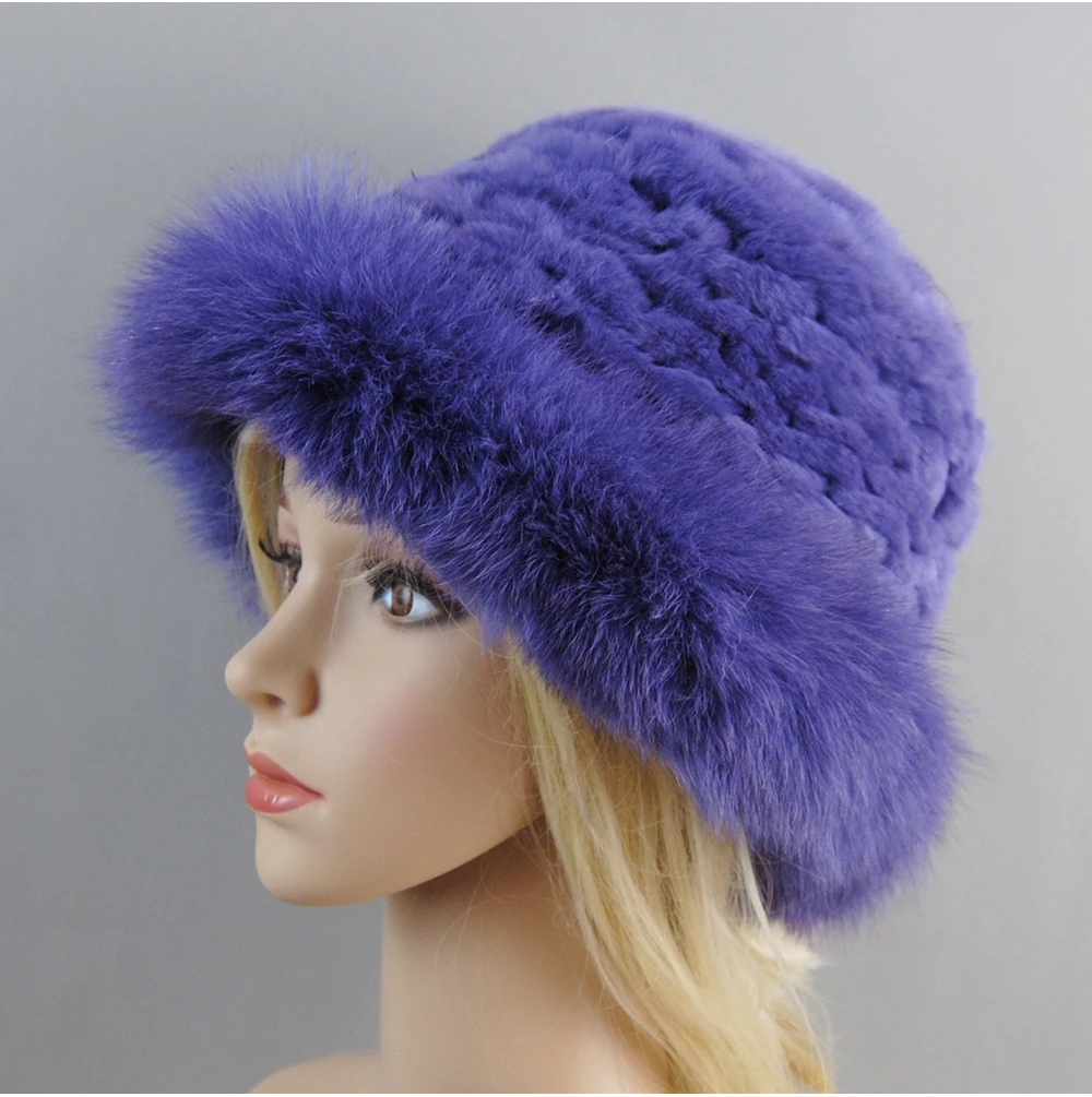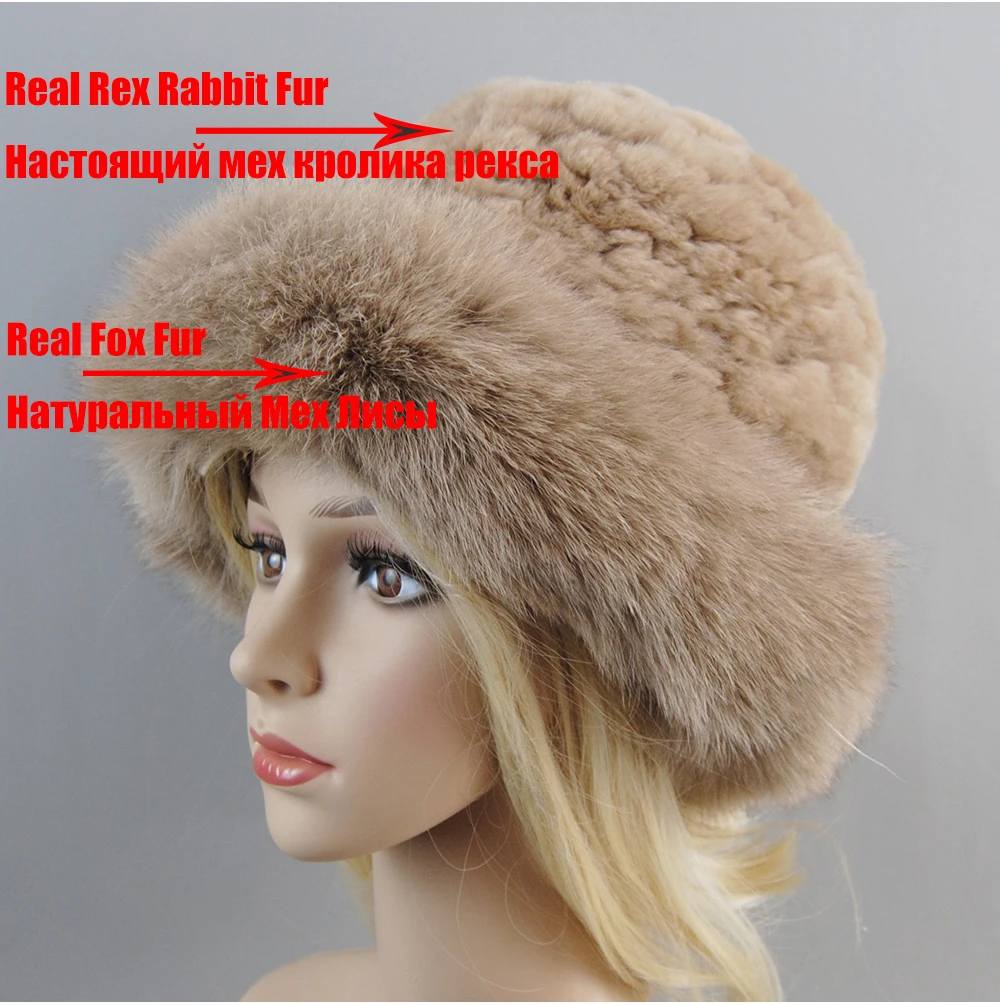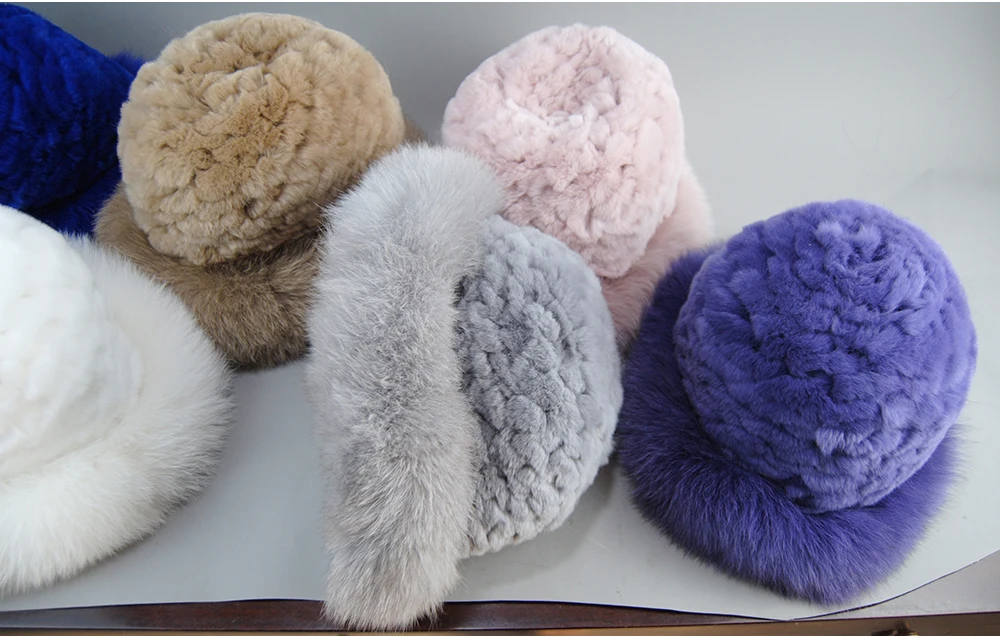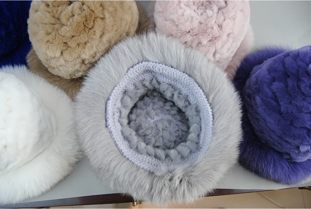 Women Beanies Solid Rabbit Fur Caps Fashion Real Fur Hat Winter Luxury Knitted