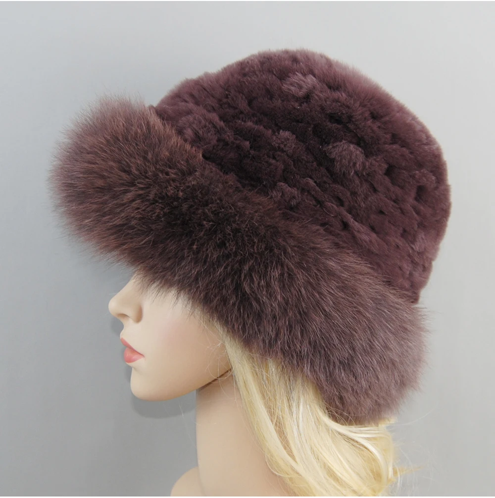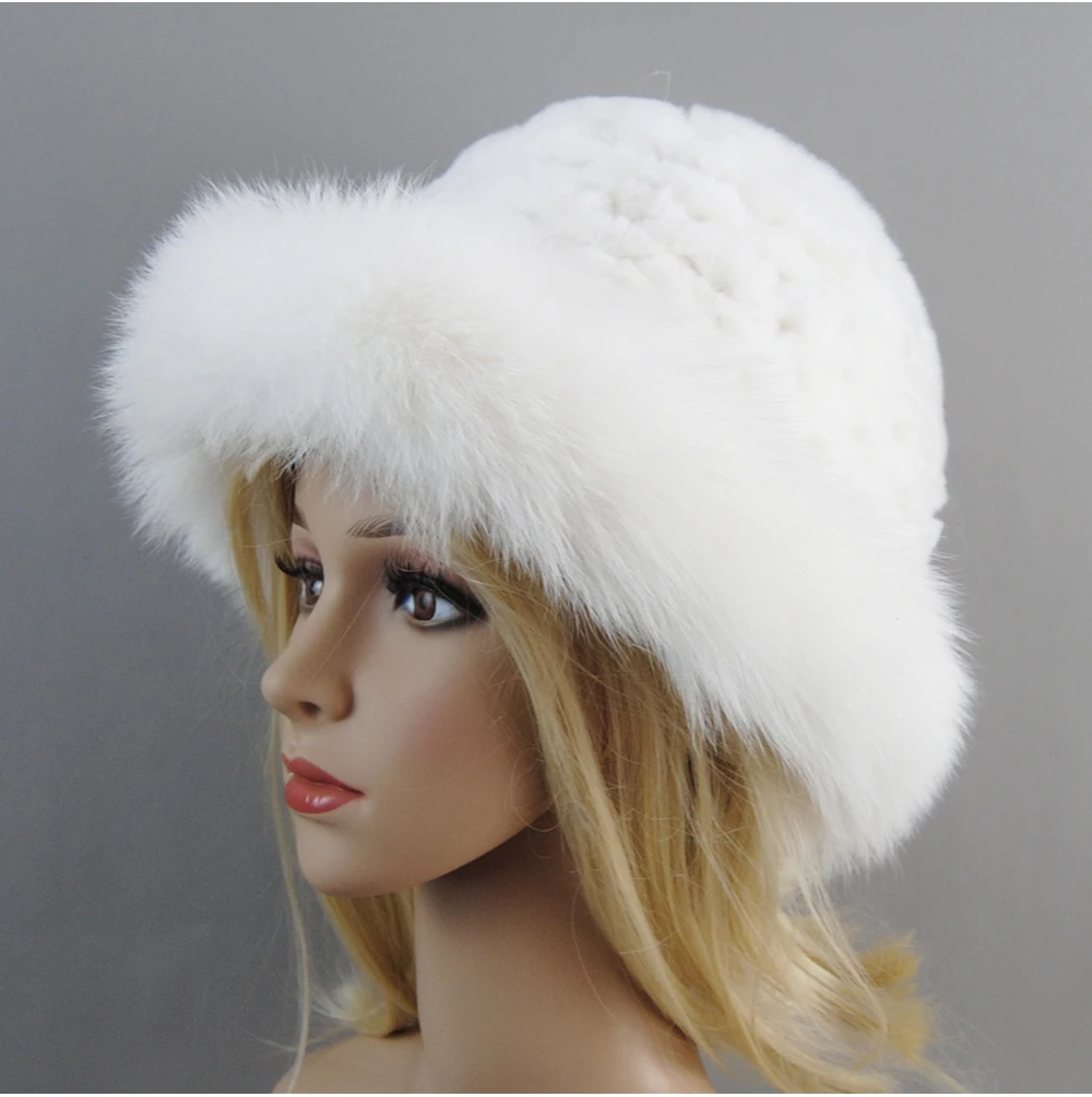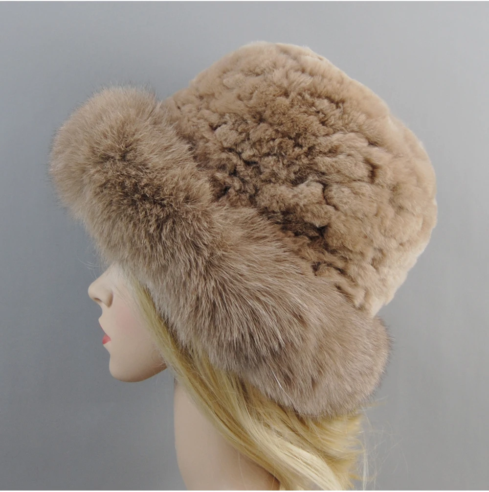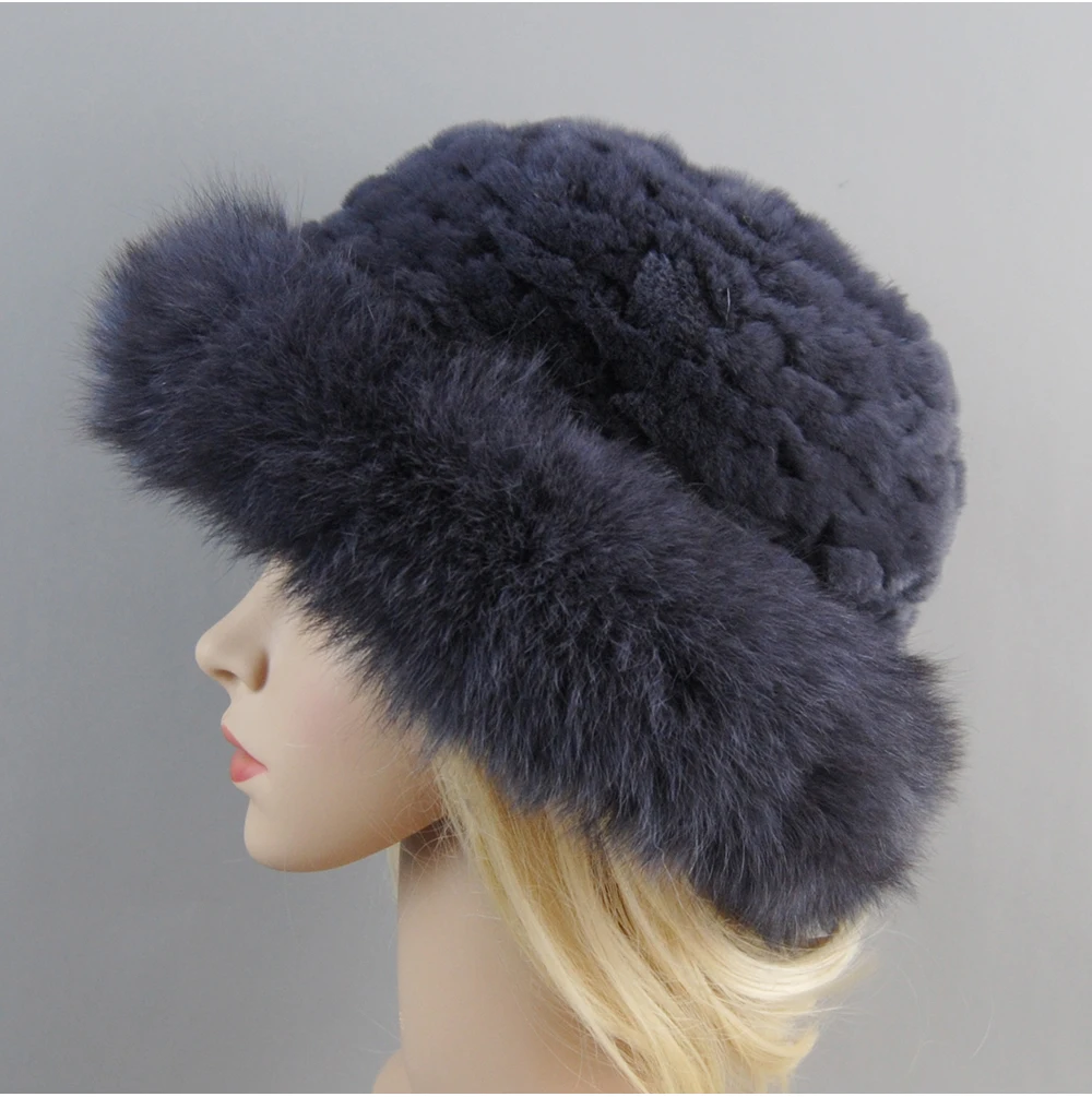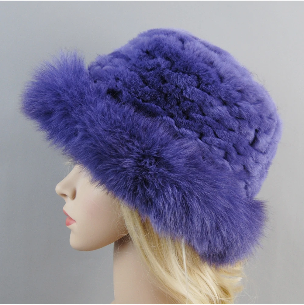 Women Beanies Solid Rabbit Fur Caps Fashion Real Fur Hat Winter Luxury Knitted