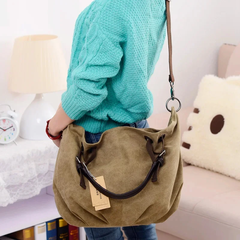 Women Canvas Messenger Female Crossbody Bags Solid Shoulder Bag Fashion Casual Designer Ladies Handbag Large Capacity Tote