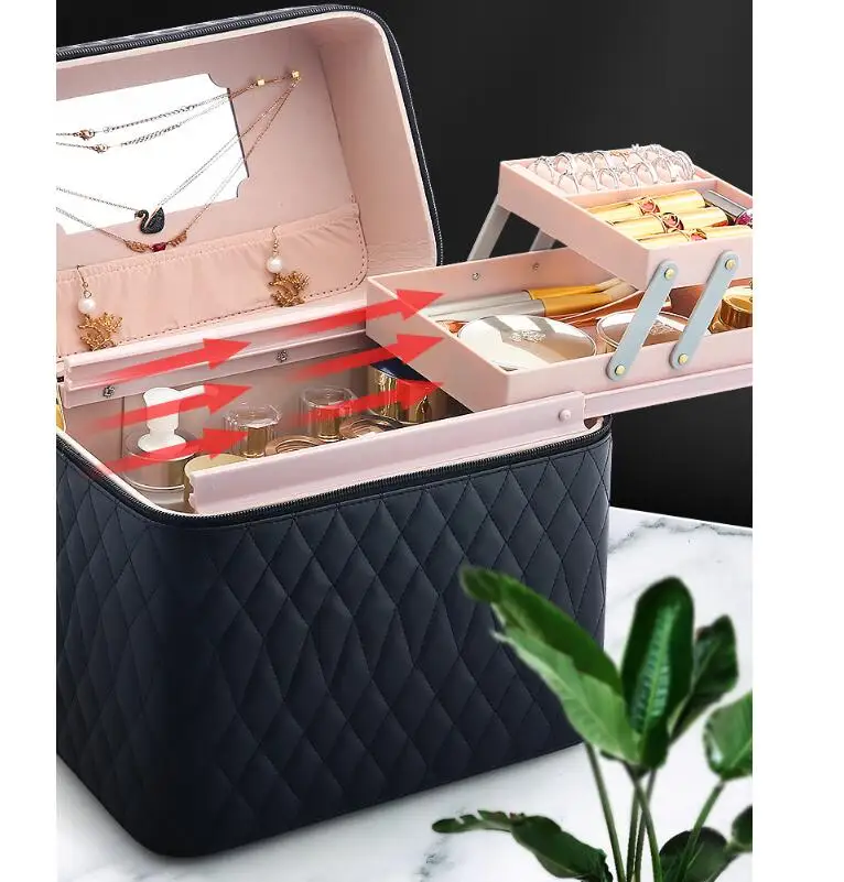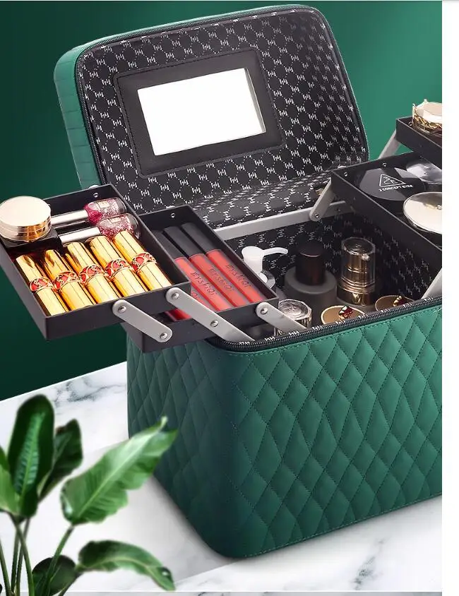 Women Cosmetic Bag Makeup Case Multilayer Clapboard Cosmetic Bag Beauty Salon Suitcase Tattoos Nail Art Tool Bin Storage Box