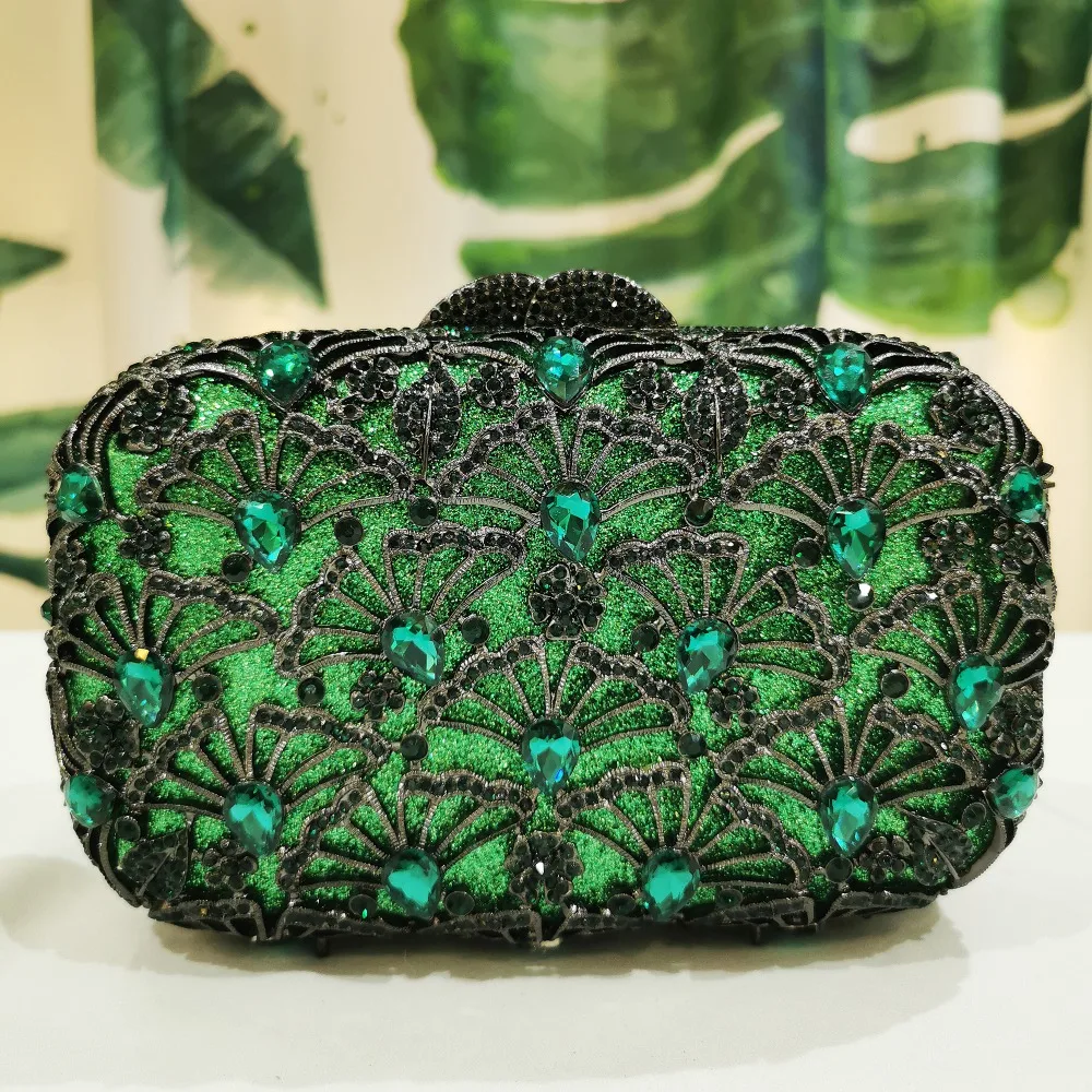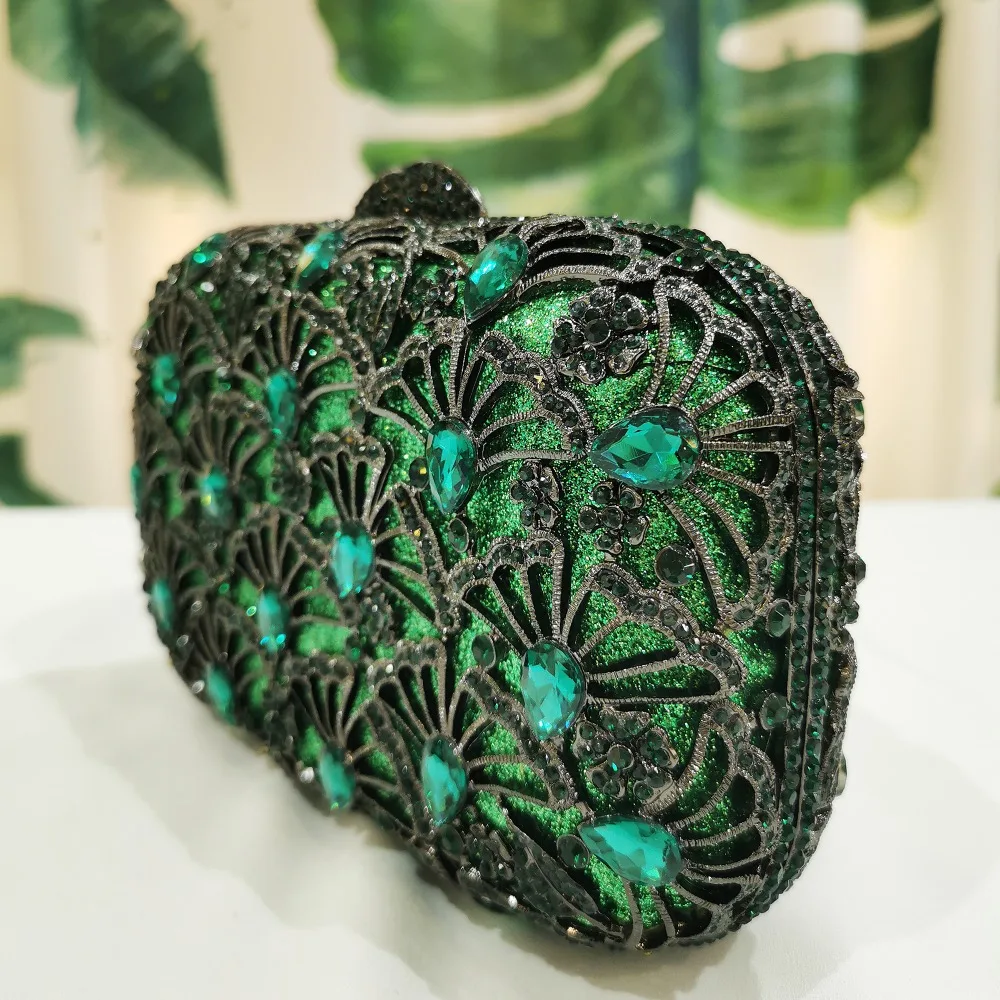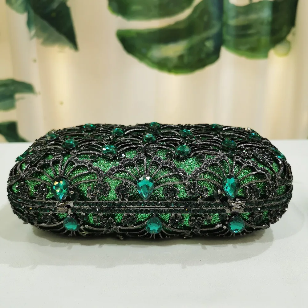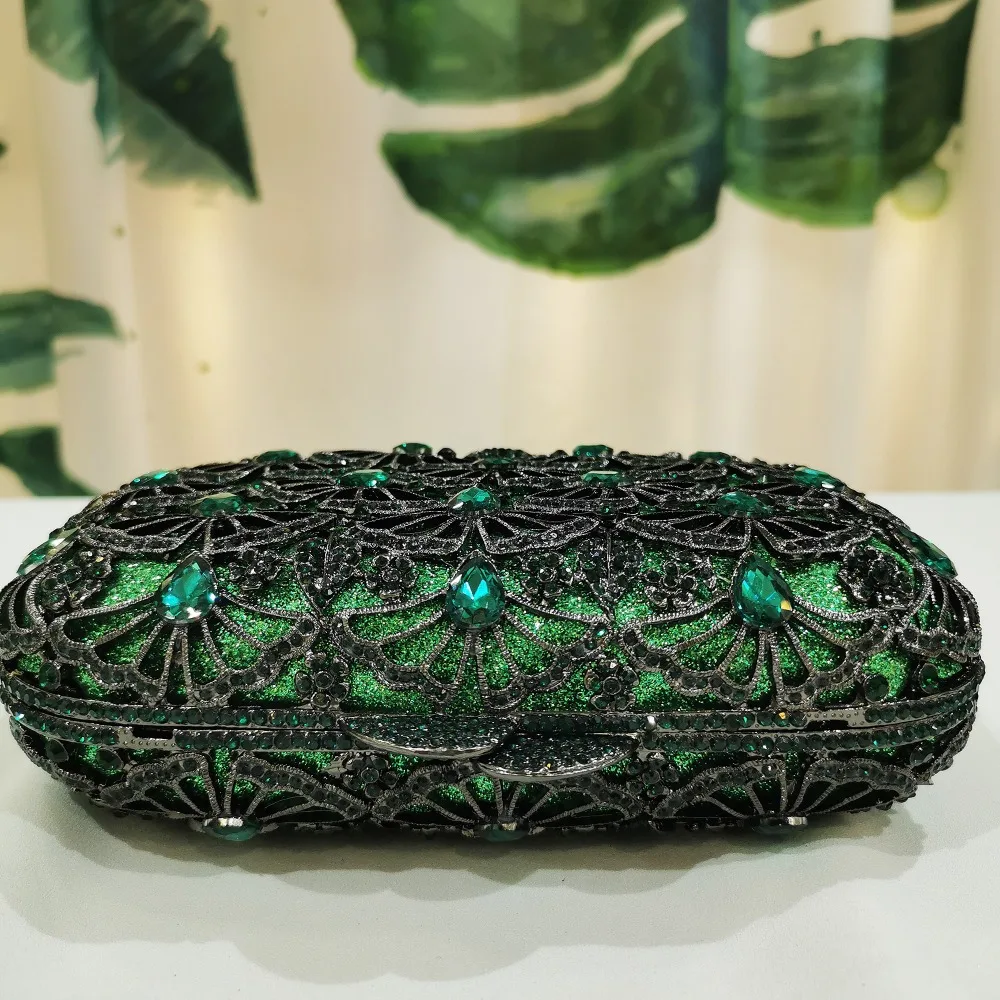 Women Crystal Diamond Green Evening Bags Purse Female Shoulder Messenger Handbags Chic Fashion Rhinestone Mini Prom Gift Bags