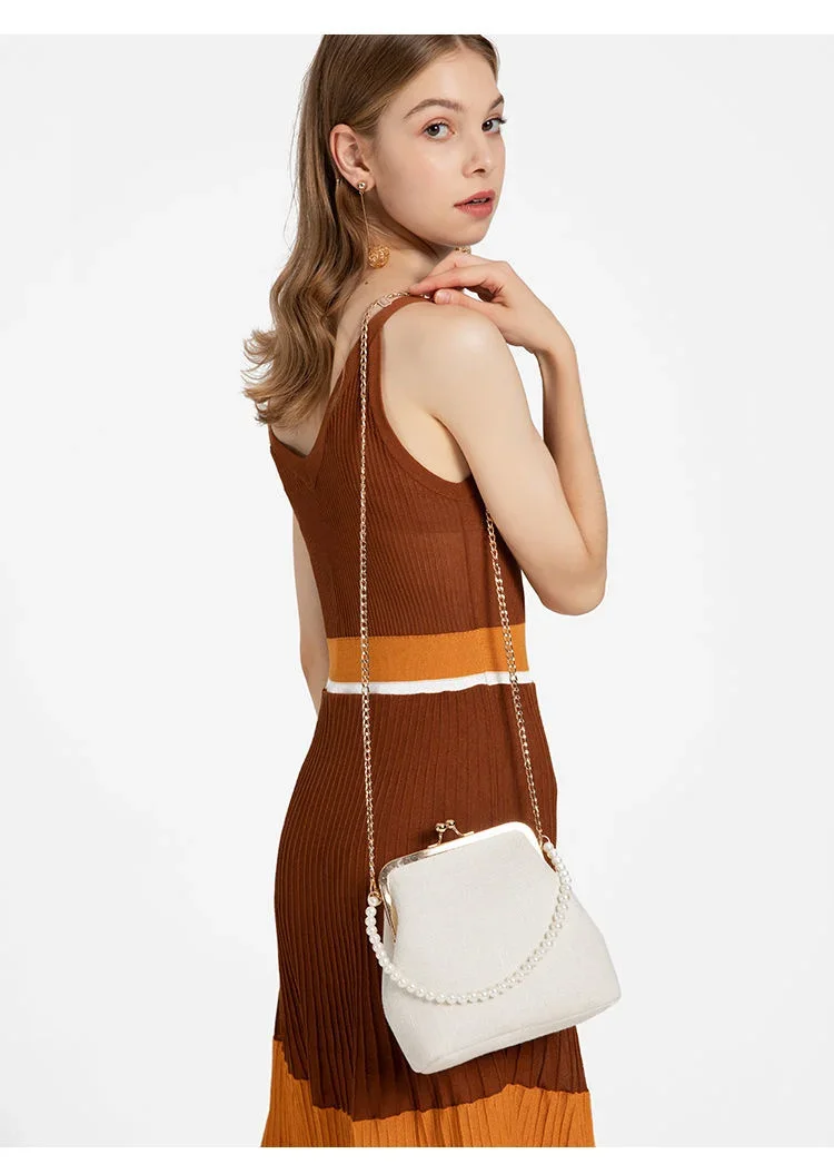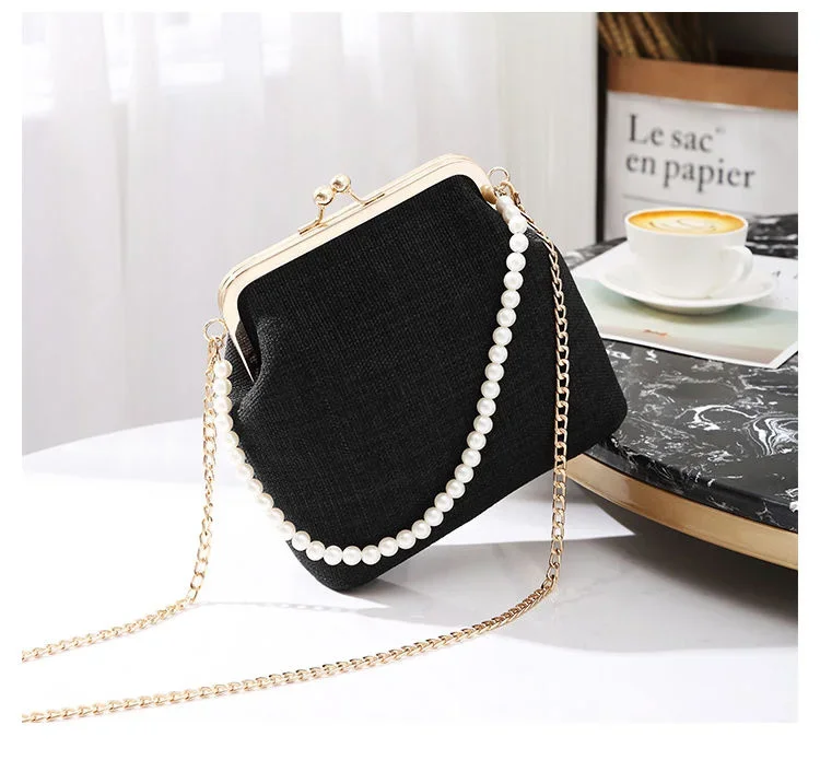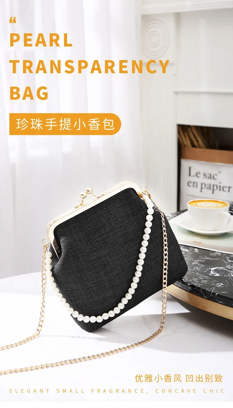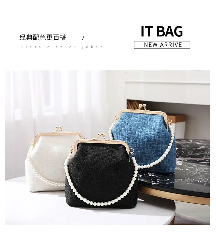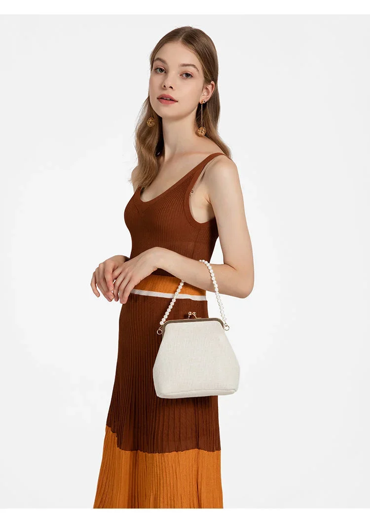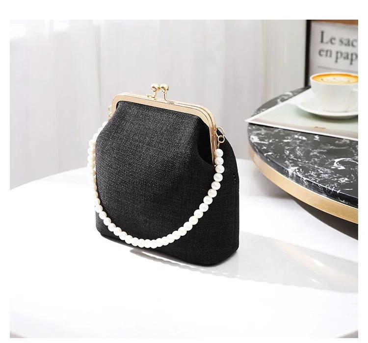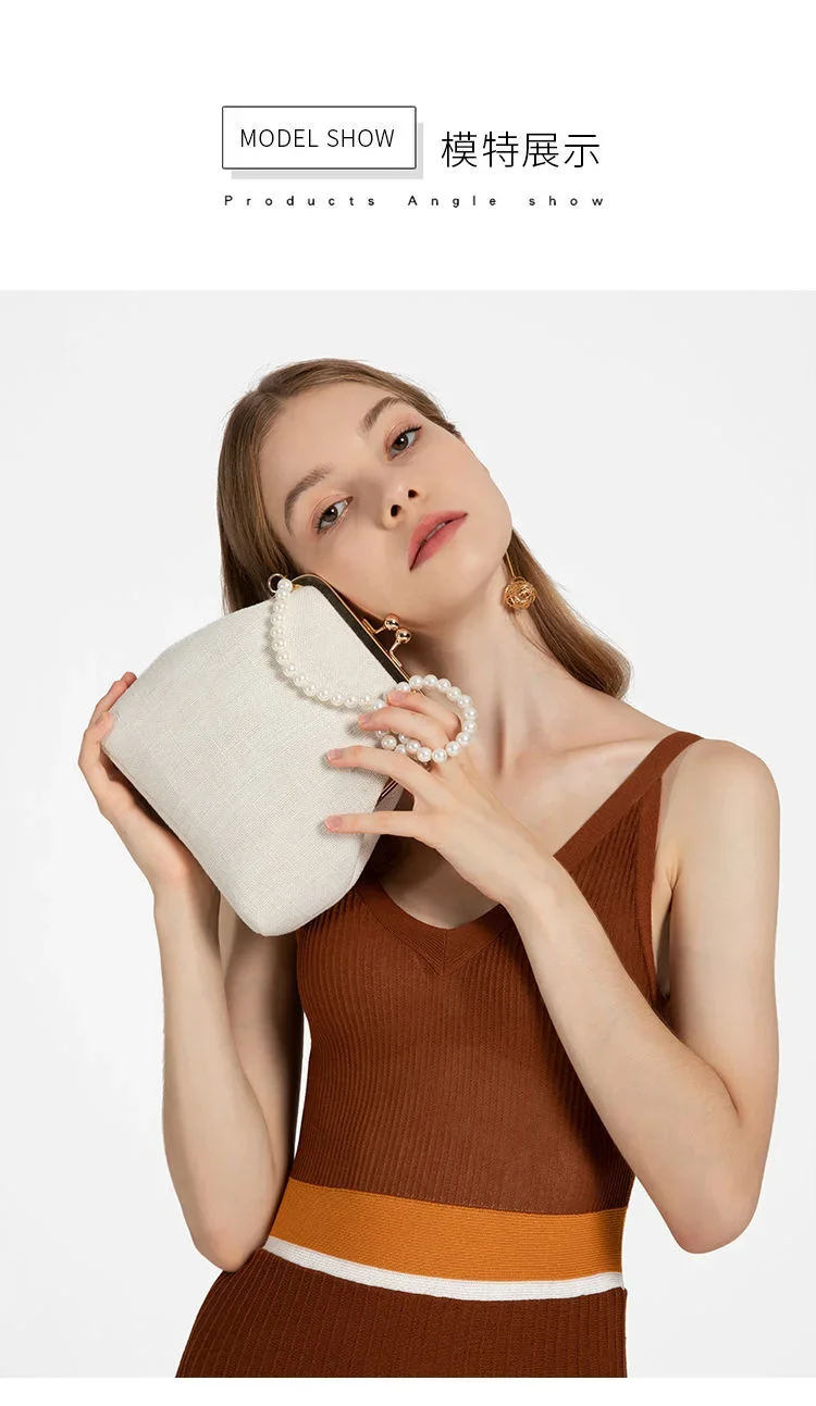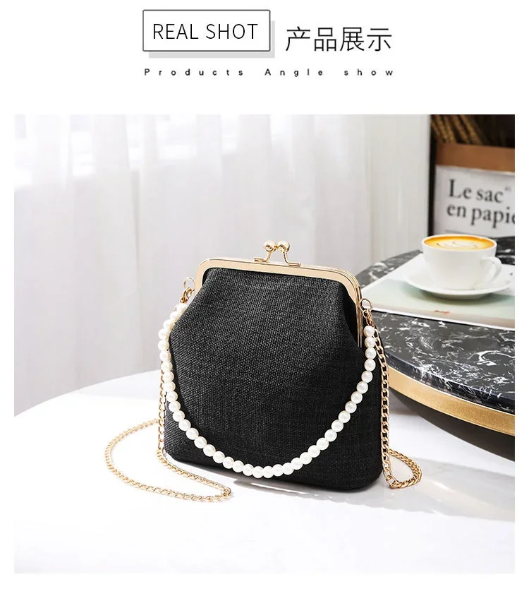 Women Evening Bags Party Luxury Designers 2024 Cotton Linen Braid New Pearl Handle Shoulder Fashion Clutch Bag Crossbody Vintage