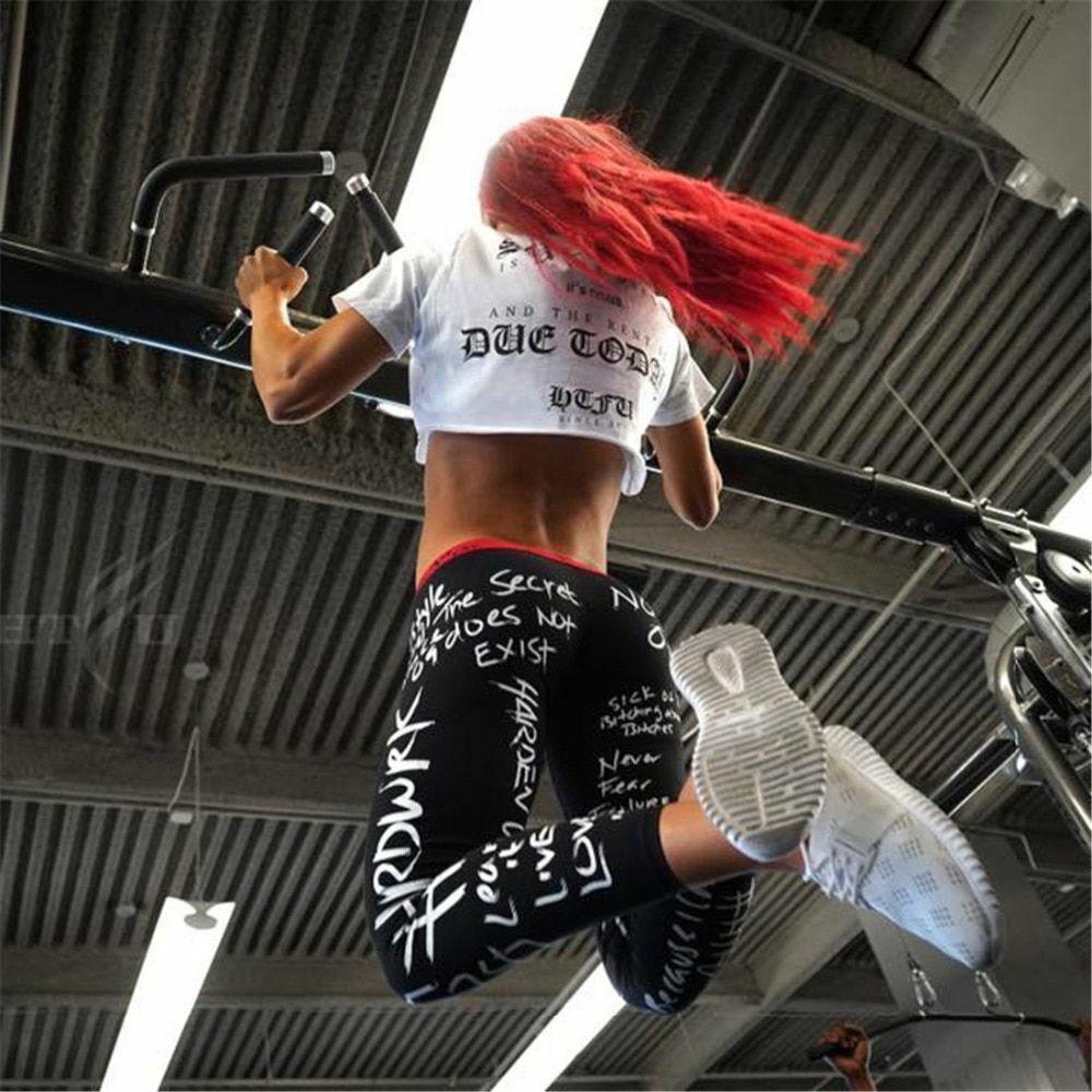 Women Fitness Leggings Letter Print Slim High Waist Elastic Workout Gym Sport EU
