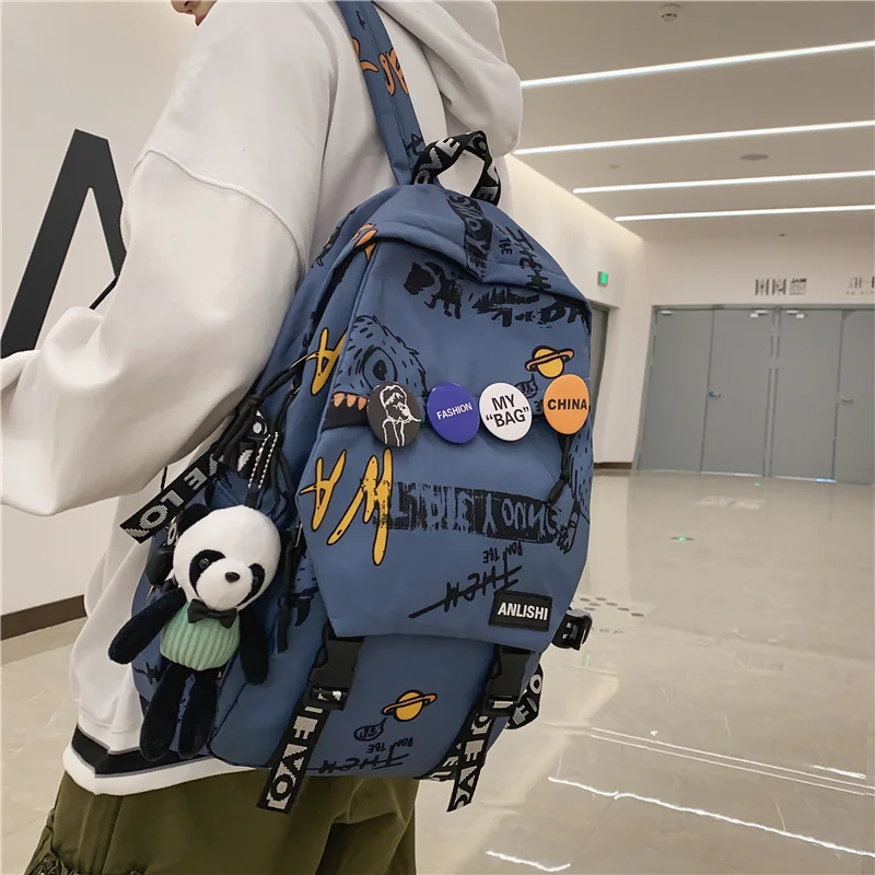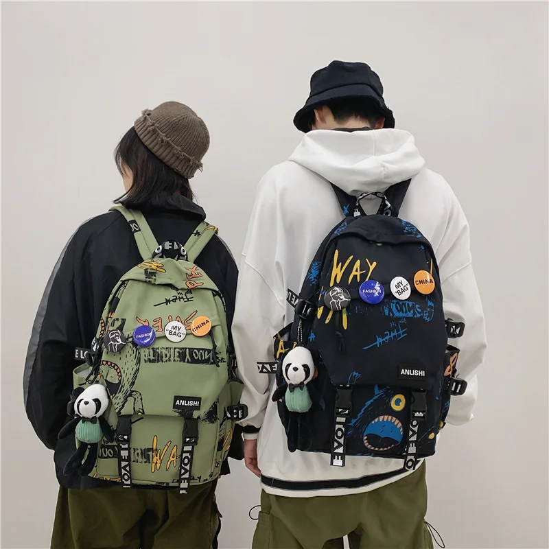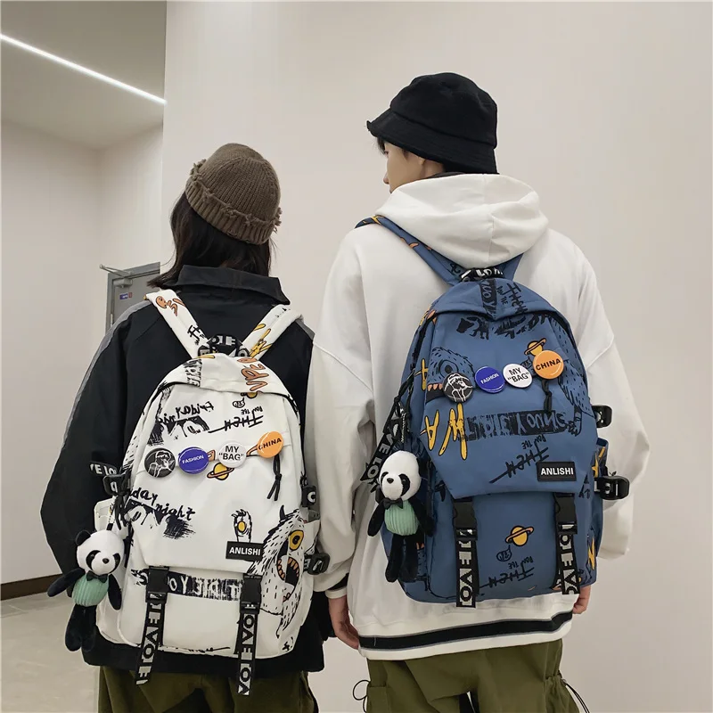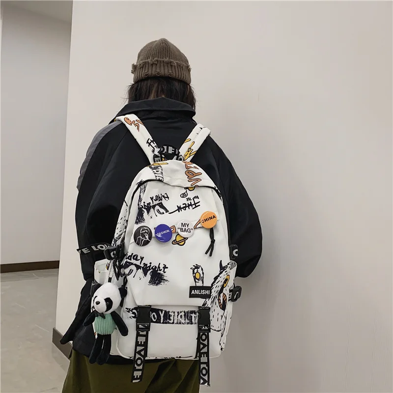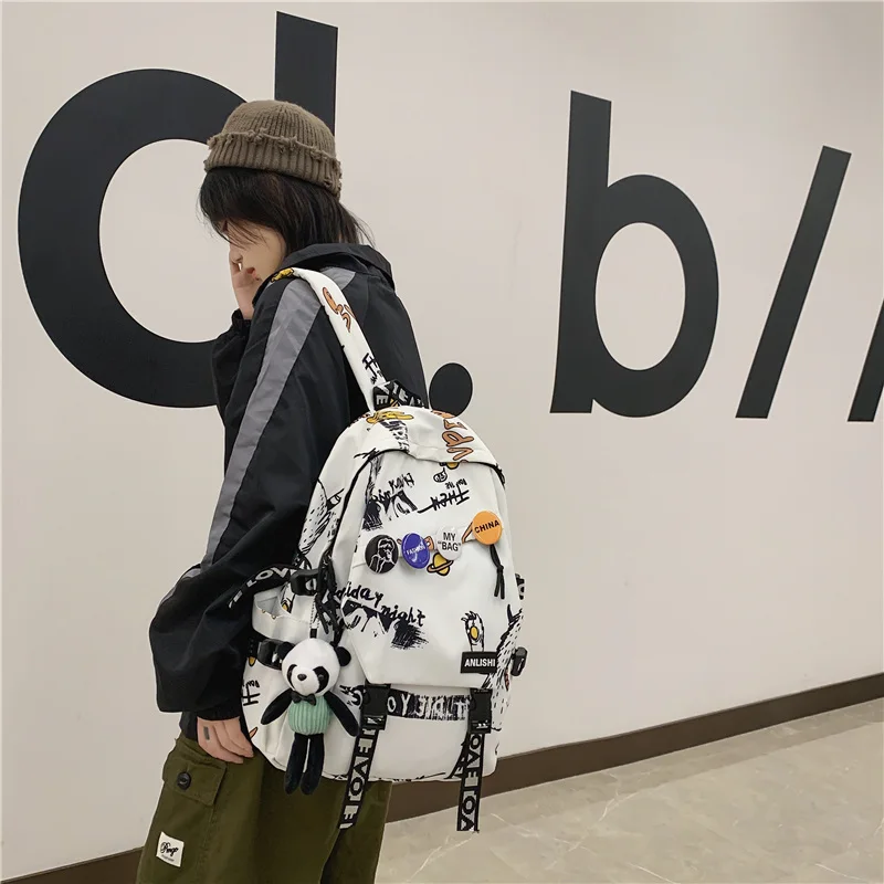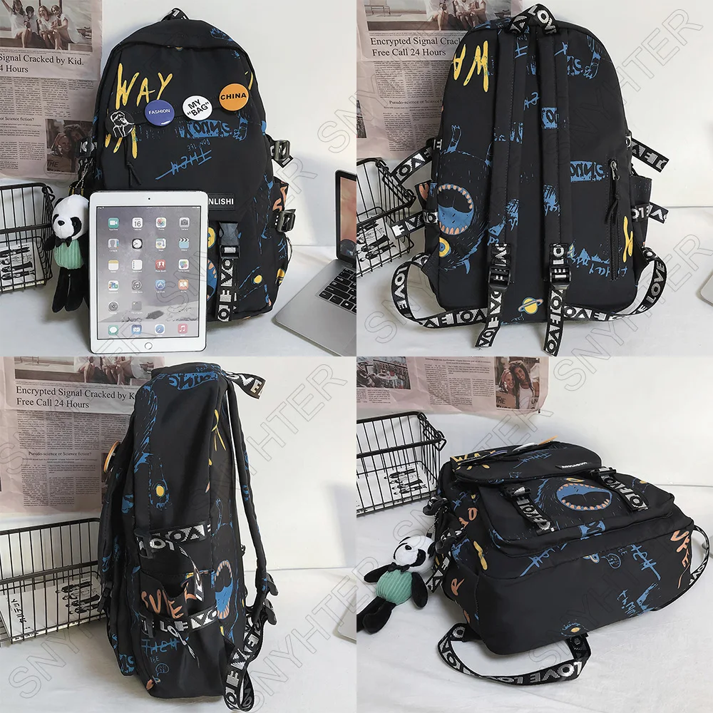 Women Men Graffiti Printing Harajuku Backpack Fashion Boy Girl College Bag Laptop Cute Female Travel Student Bag Ladies Backpack