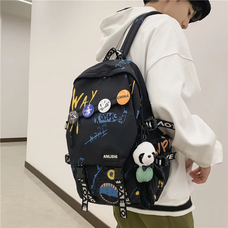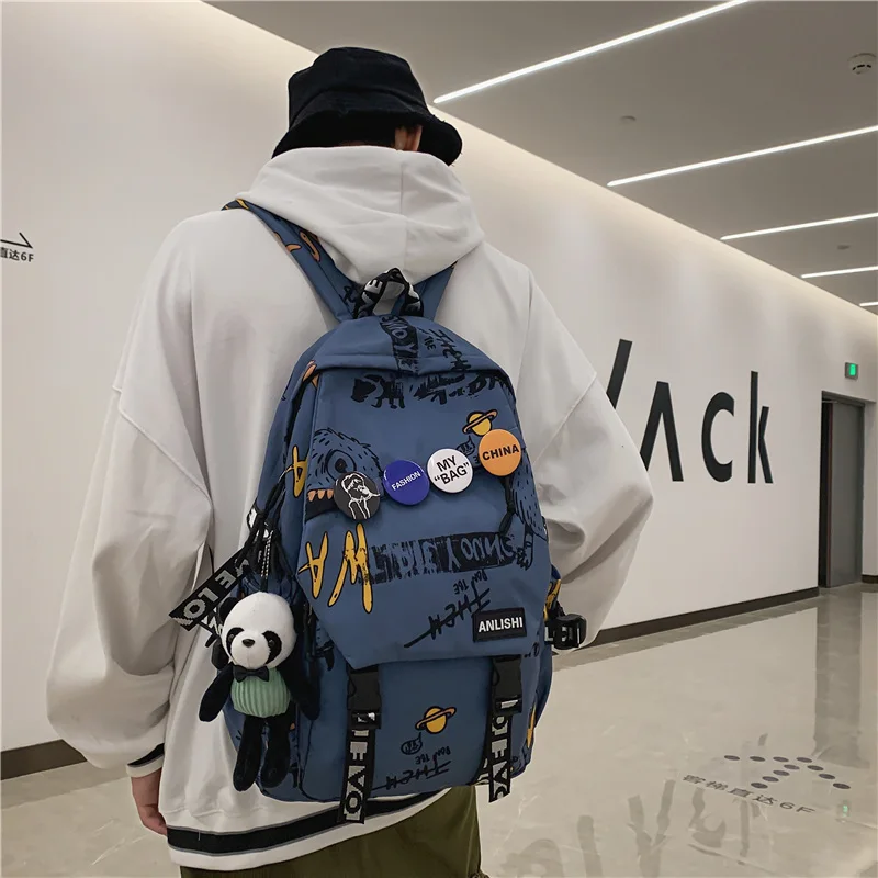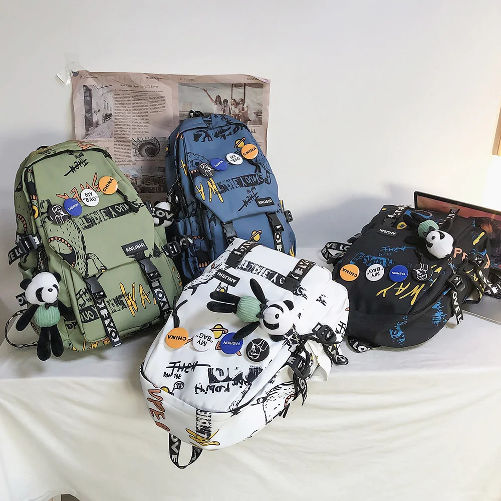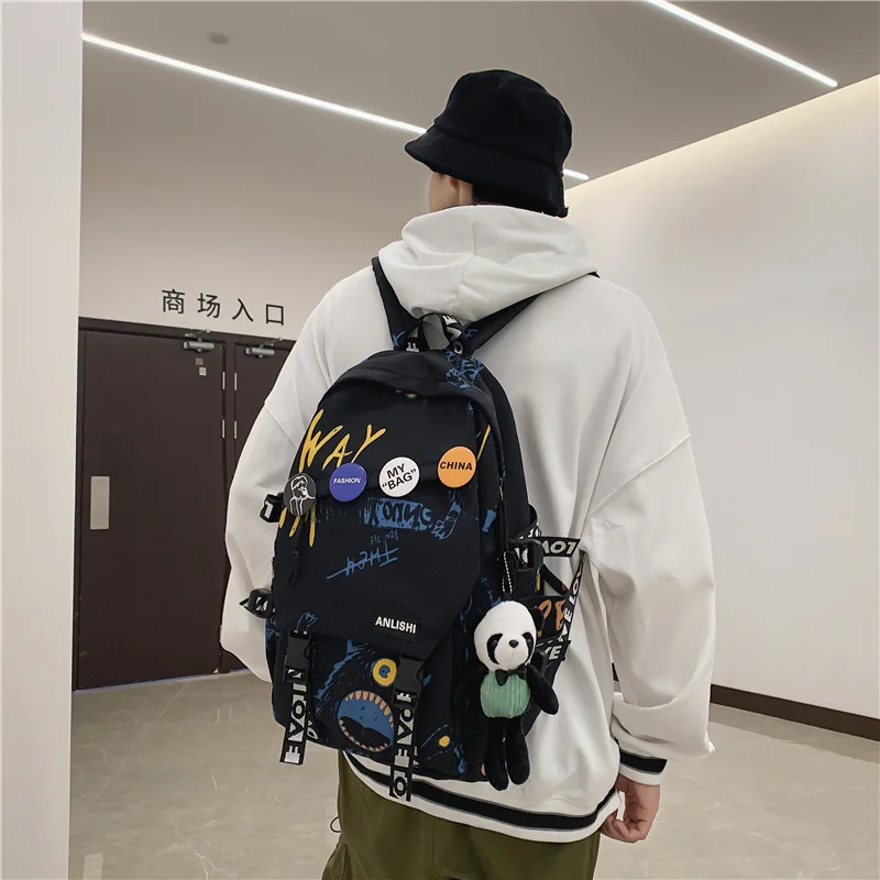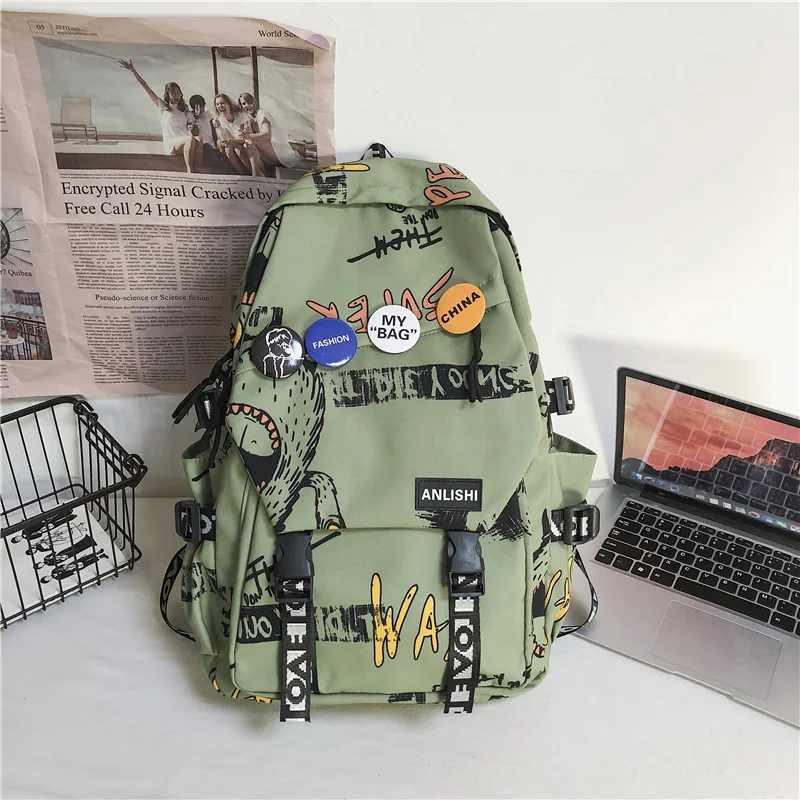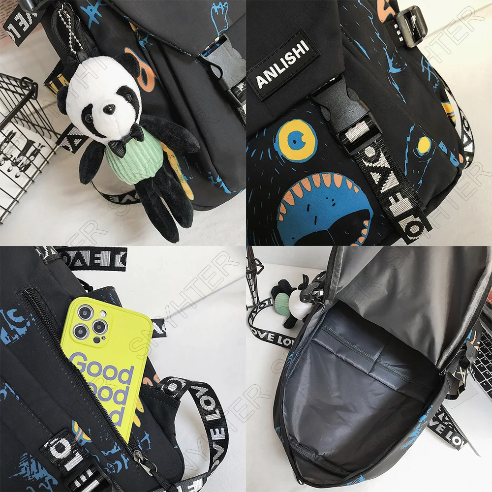 Women Men Graffiti Printing Harajuku Backpack Fashion Boy Girl College Bag Laptop Cute Female Travel Student Bag Ladies Backpack