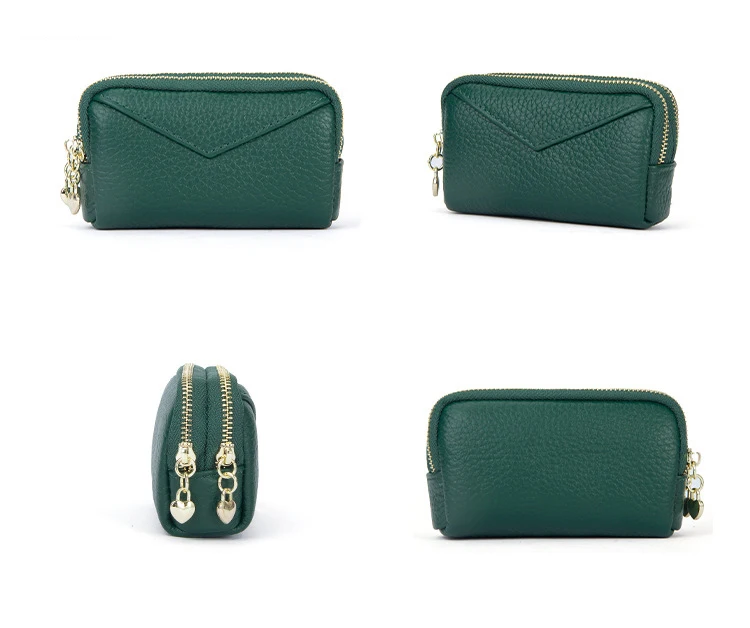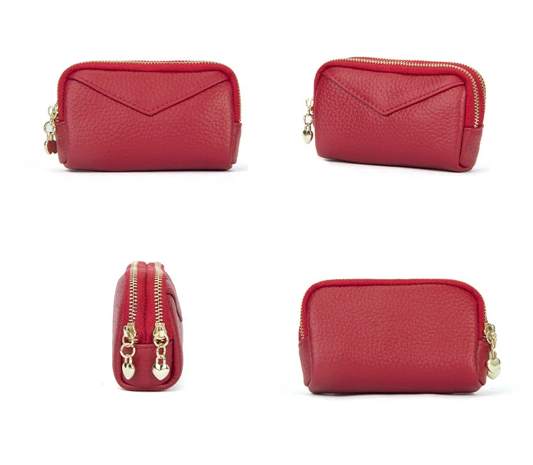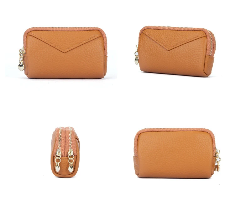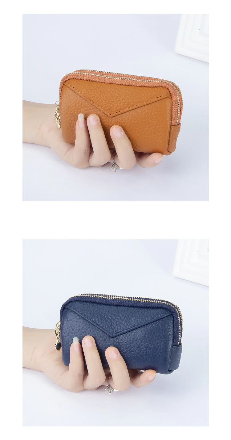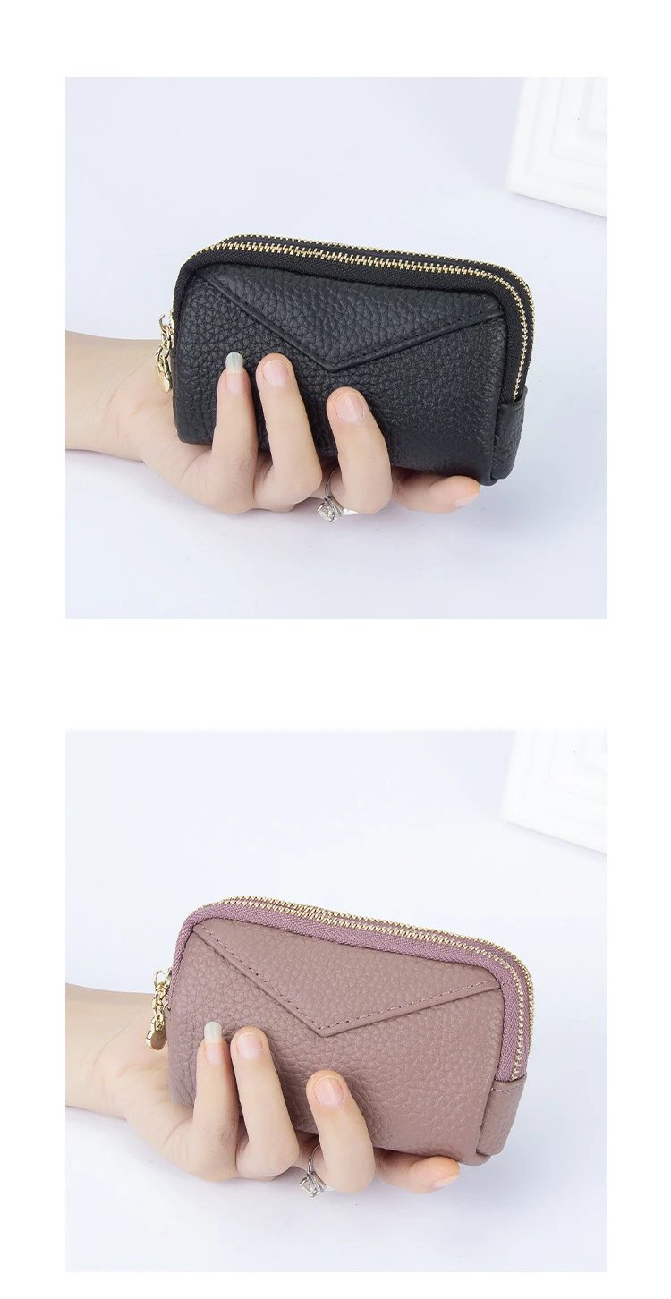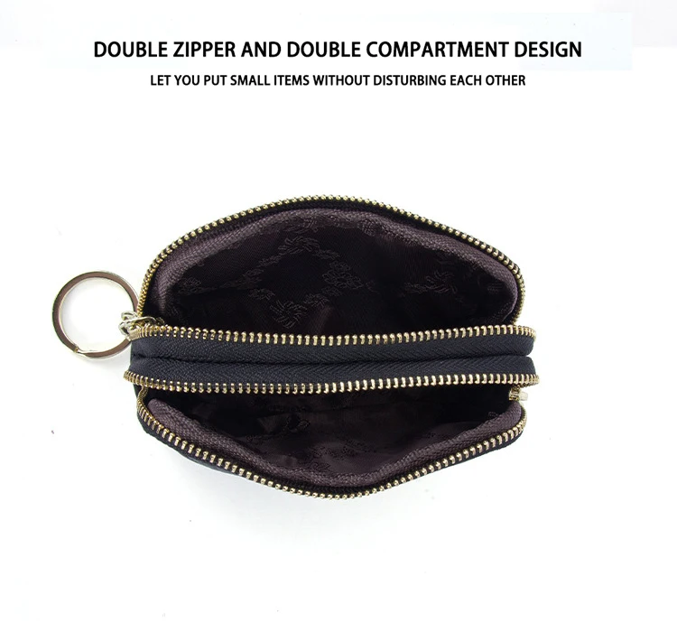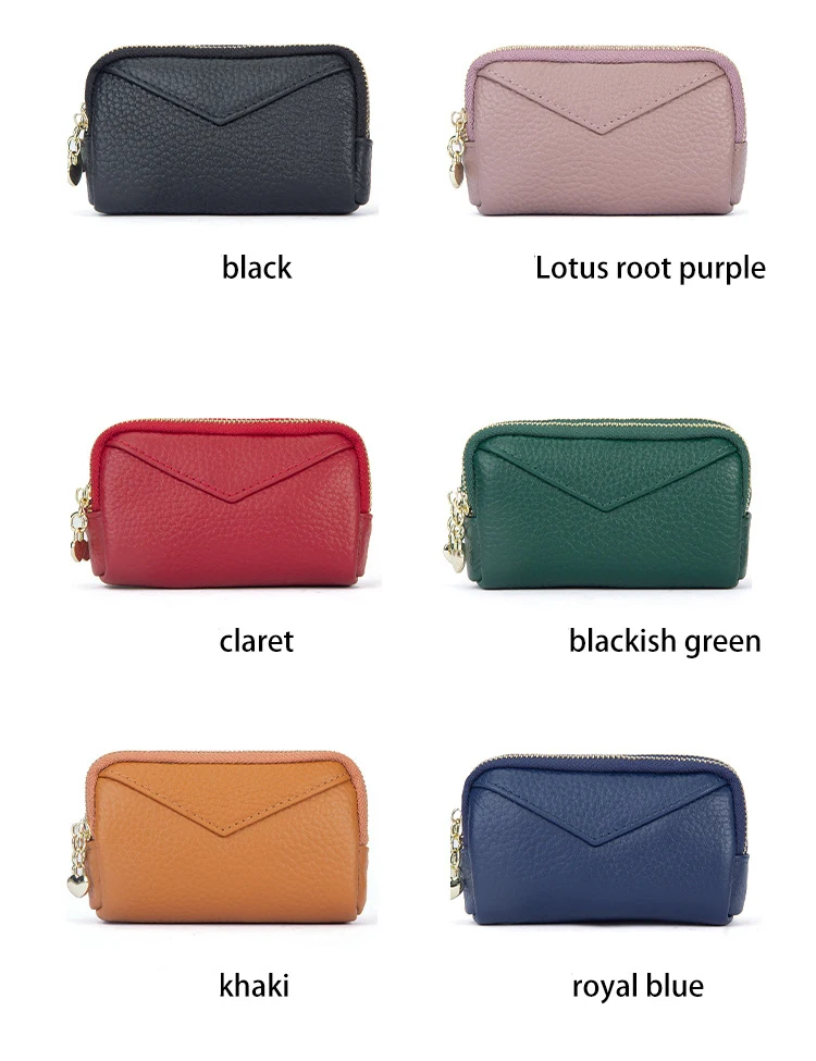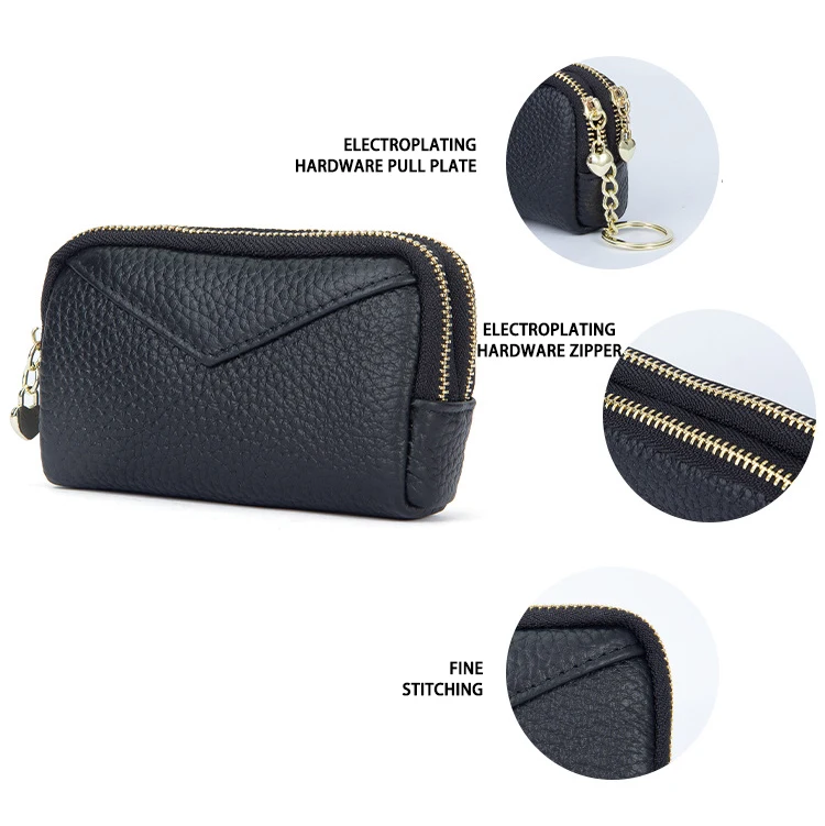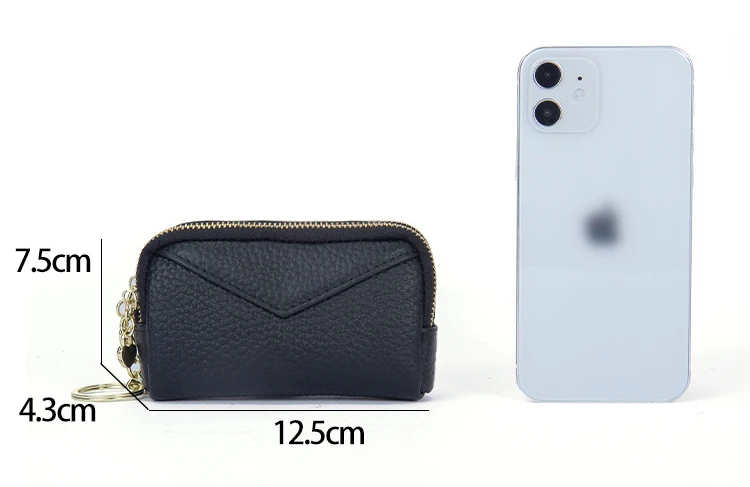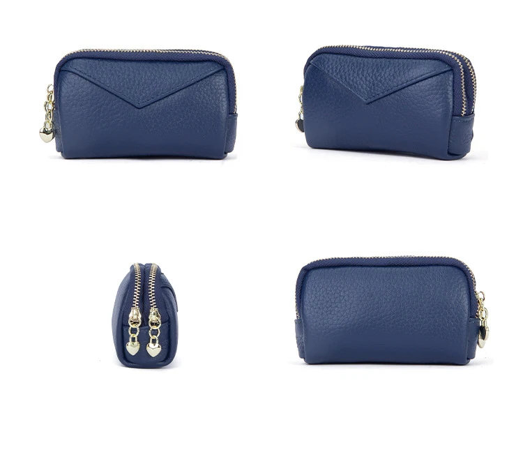 Color: black, wine red, dark green purple, treasure blue, earth yellowMaterial: First layer lychee grain cowhideDimensions: Length 12.5cm * width 4.3cm * height 7.5cmStructure: Double zipper double compartment pocketWeight: 0.07KG
